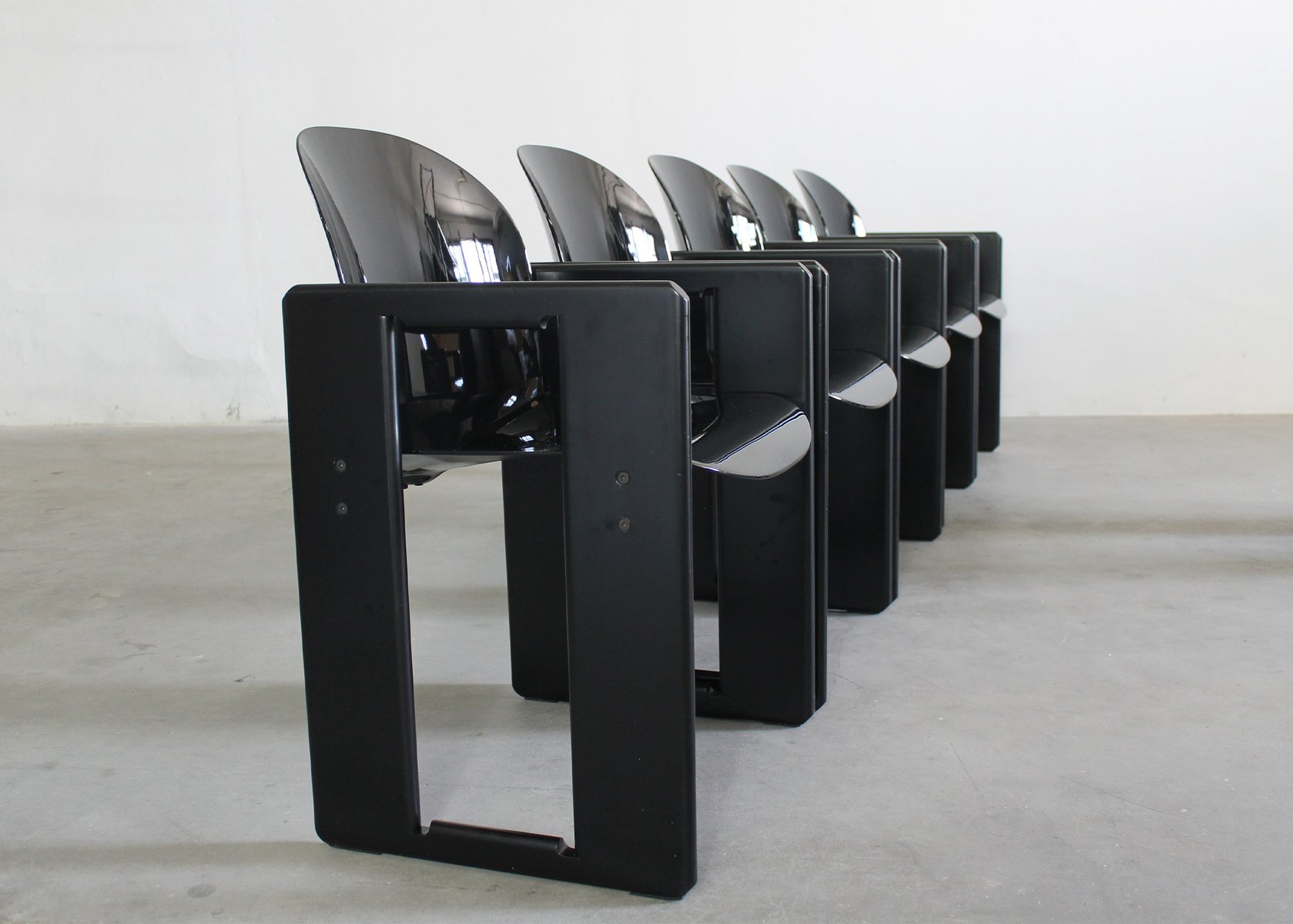 Alessia Chairs in Metal and White by Giotto Stoppino for Driade, 1970s, Set of 6
