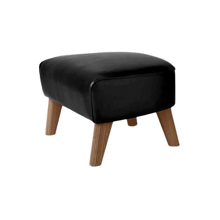 Black Leather and Smoked Oak My Own Chair Footstool by Lassen