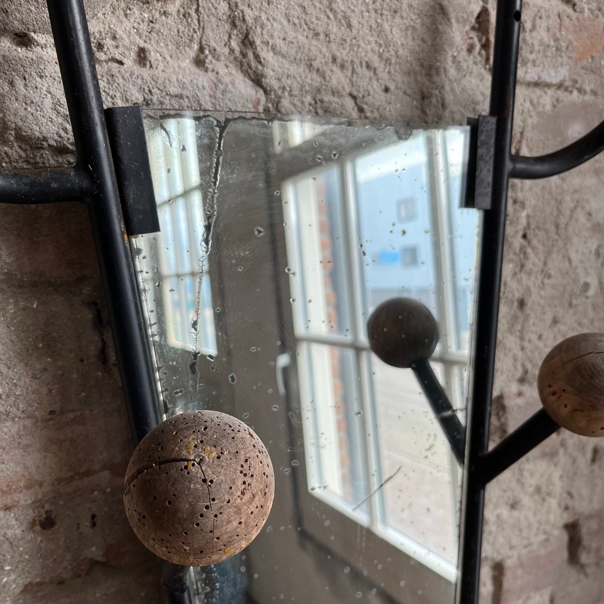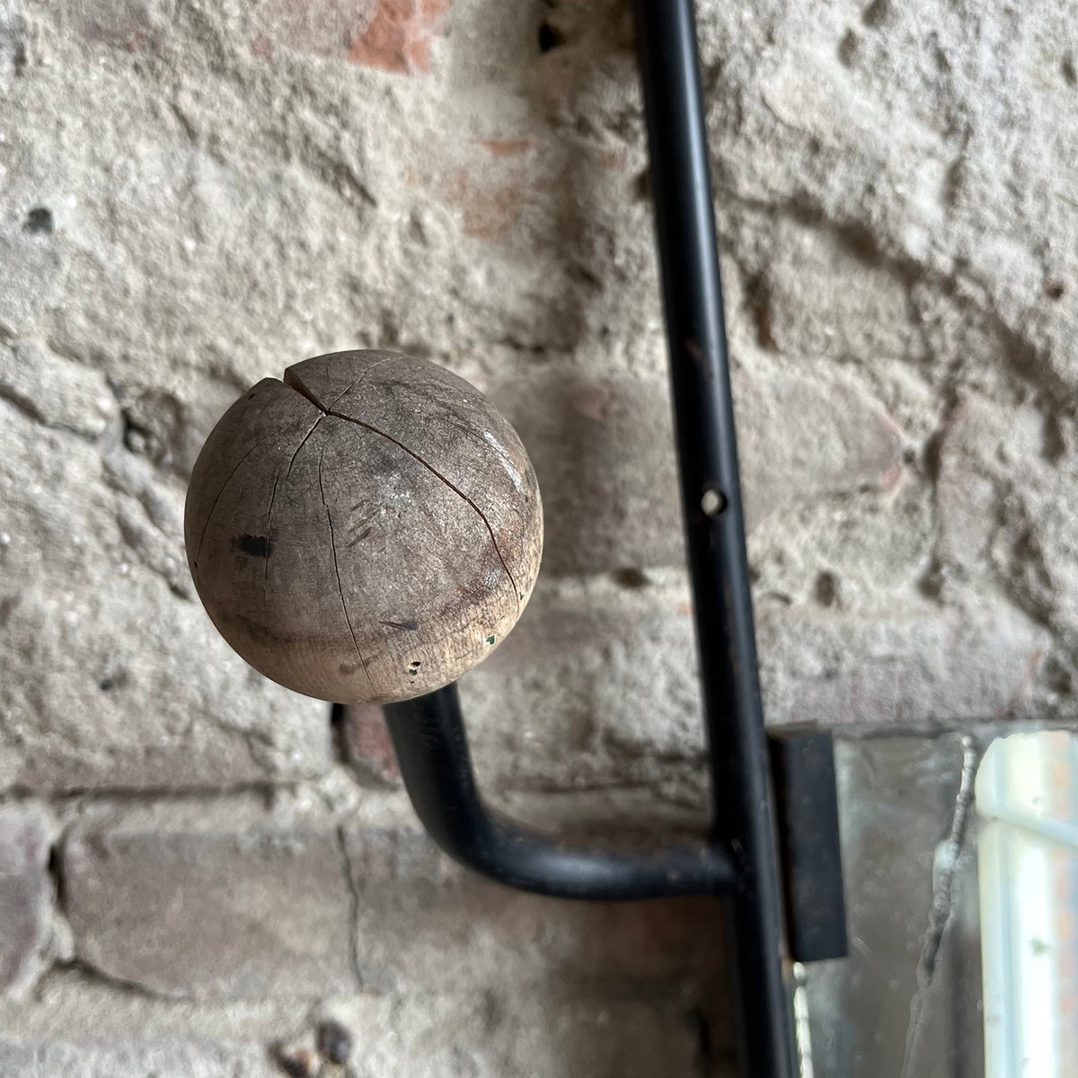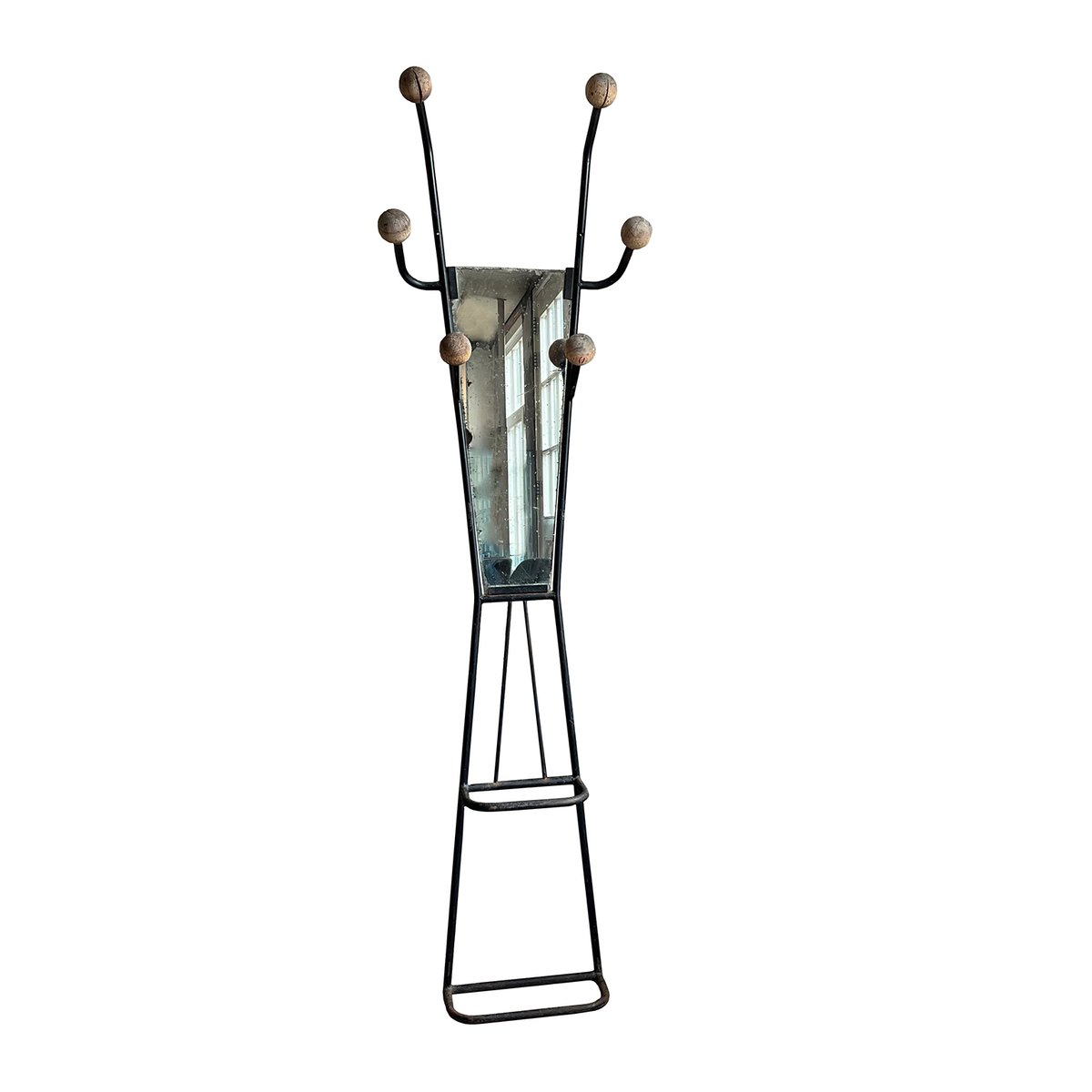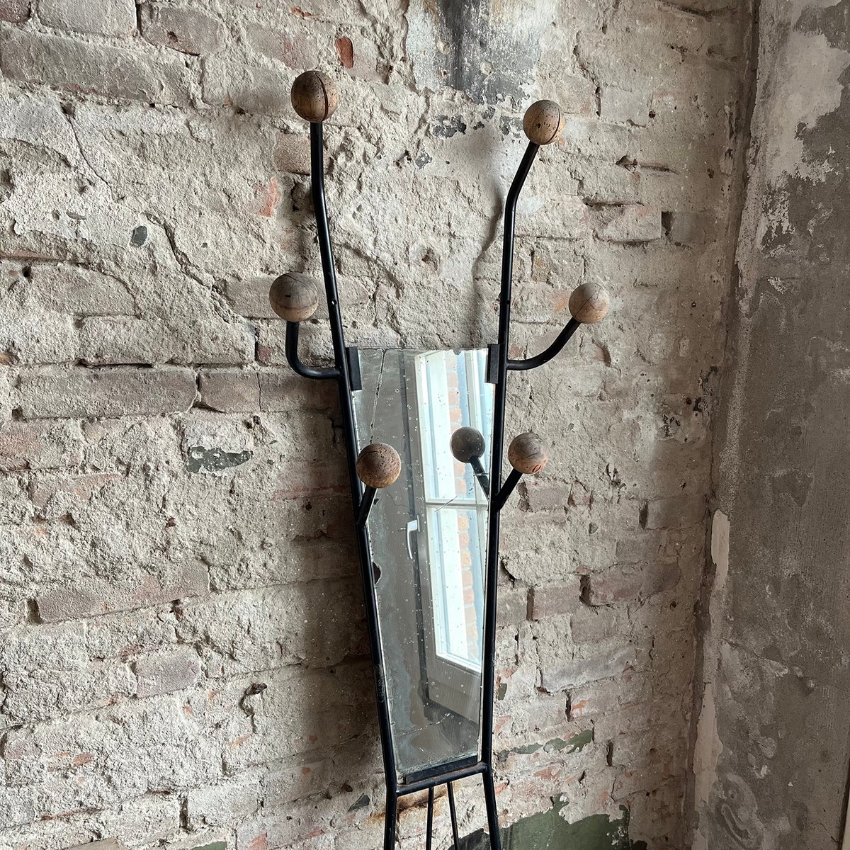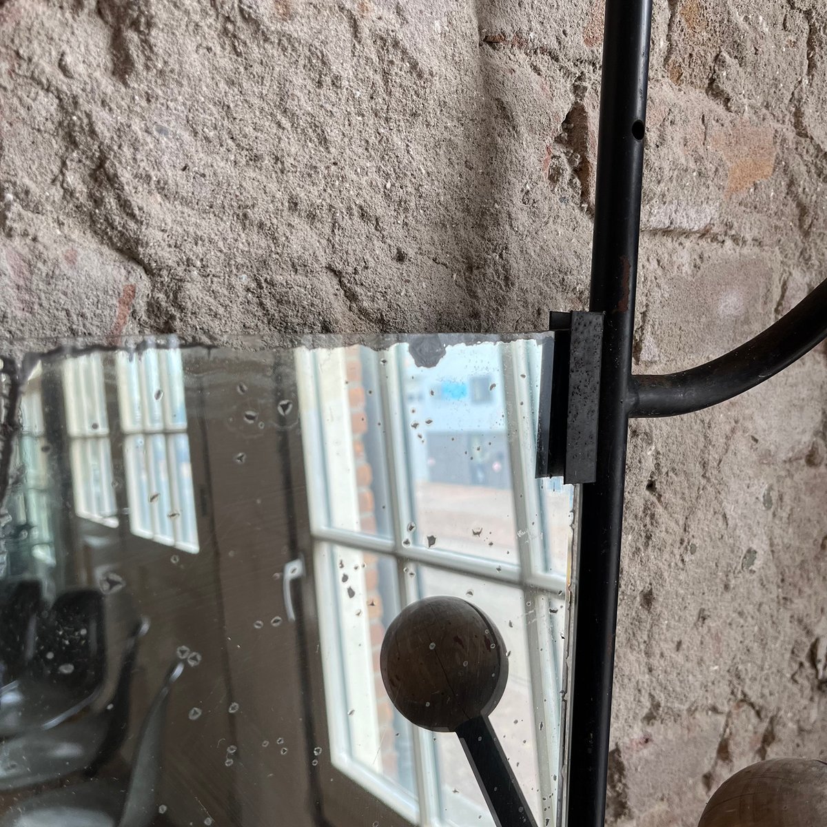 Black Metal Wall Coat Rack with Mirror, 1960s