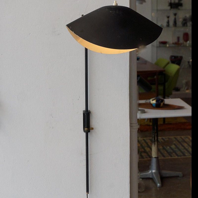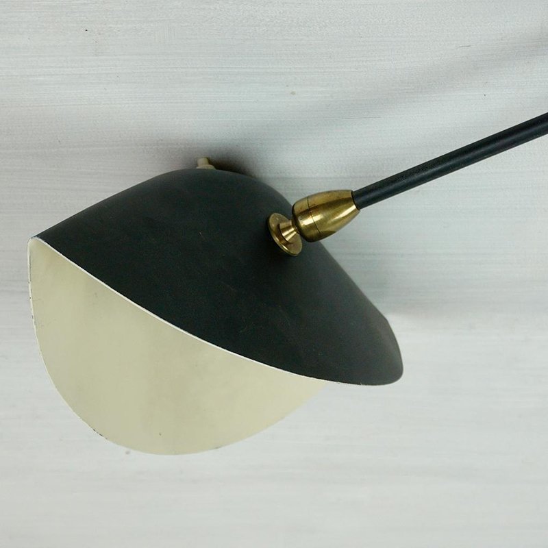 Black Single Arm Wall Lamp attributed to Serge Mouille, 1950s