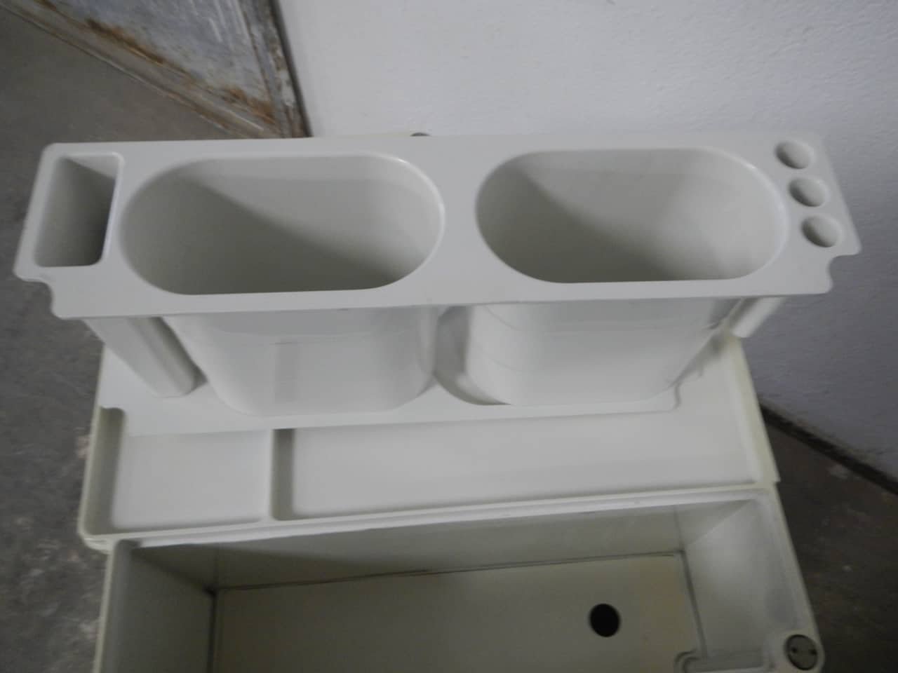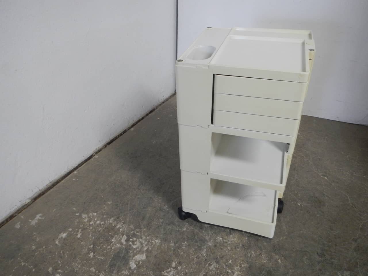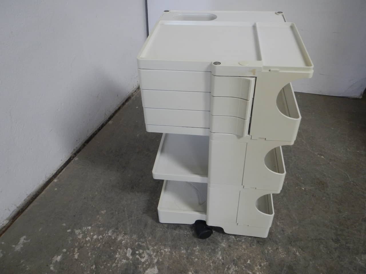 Colombo’s design career was cut tragically short in 1971 when he died of heart failure at age 41. However, he was remarkably prolific during his near decade as a designer. Notable projects include some of the most iconic designs of the 1960s, such as his 1963 Elda Armchair, made completely of fiberglass; the 1964 Ragno outdoor light, which doubled as a seat; the stackable Universale chair (1965/67), which came in varying heights and was created completely from polypropylene; his 1967 modular furniture series known as the Additional Living System, which was composed of different-size curved pieces that could be pinned together in various configurations to form chairs, sofas, or entire living areas, and which ultimately included the famous 1969 Tubo lounge chair; and the Optic alarm clock and Bobby trolley (both 1970).