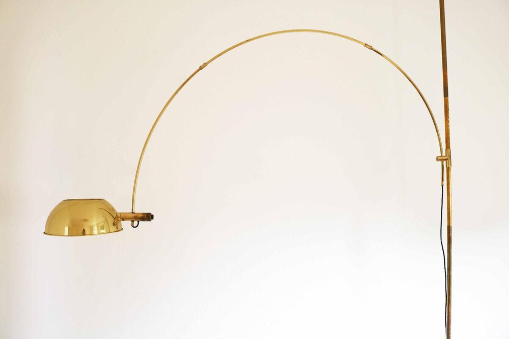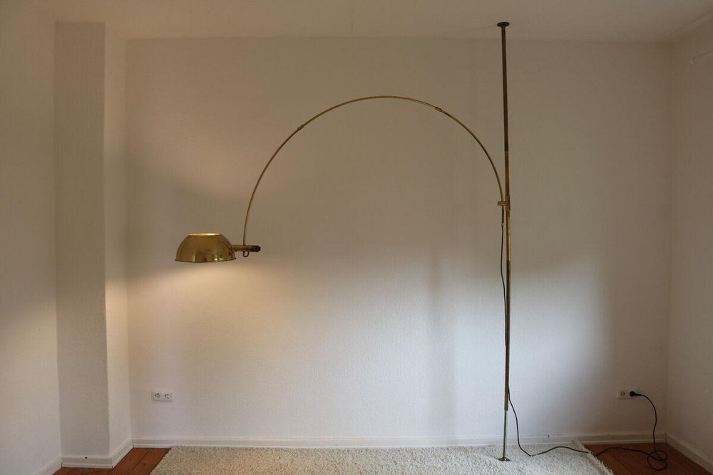 Boca Arc Floor Lamp in Polished Brass by Florian Schulz, 1970s