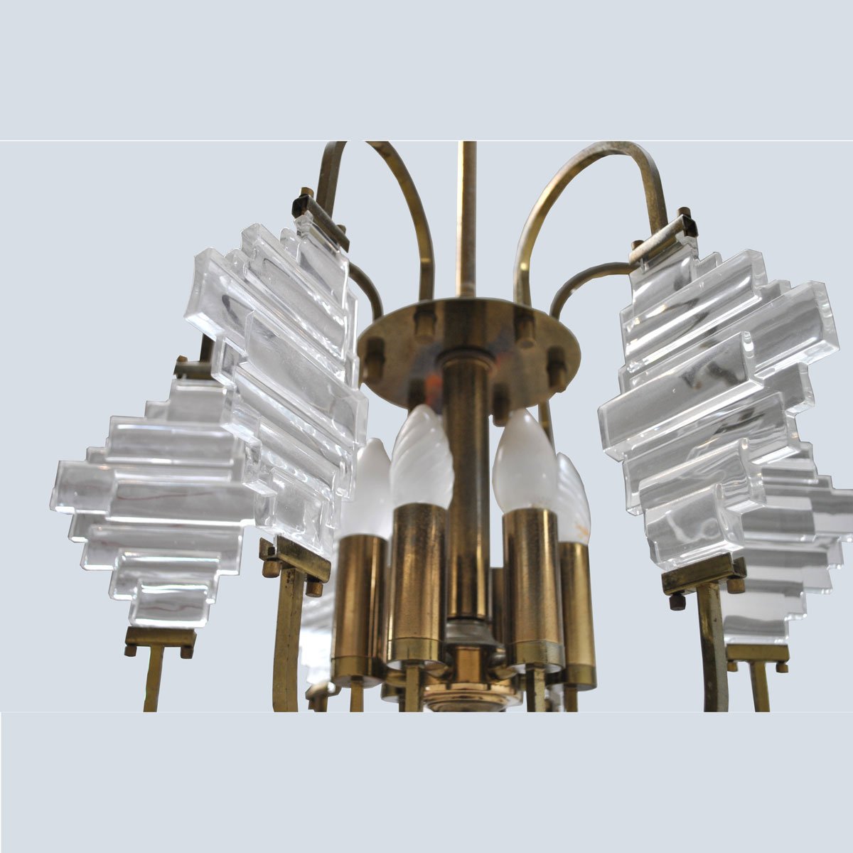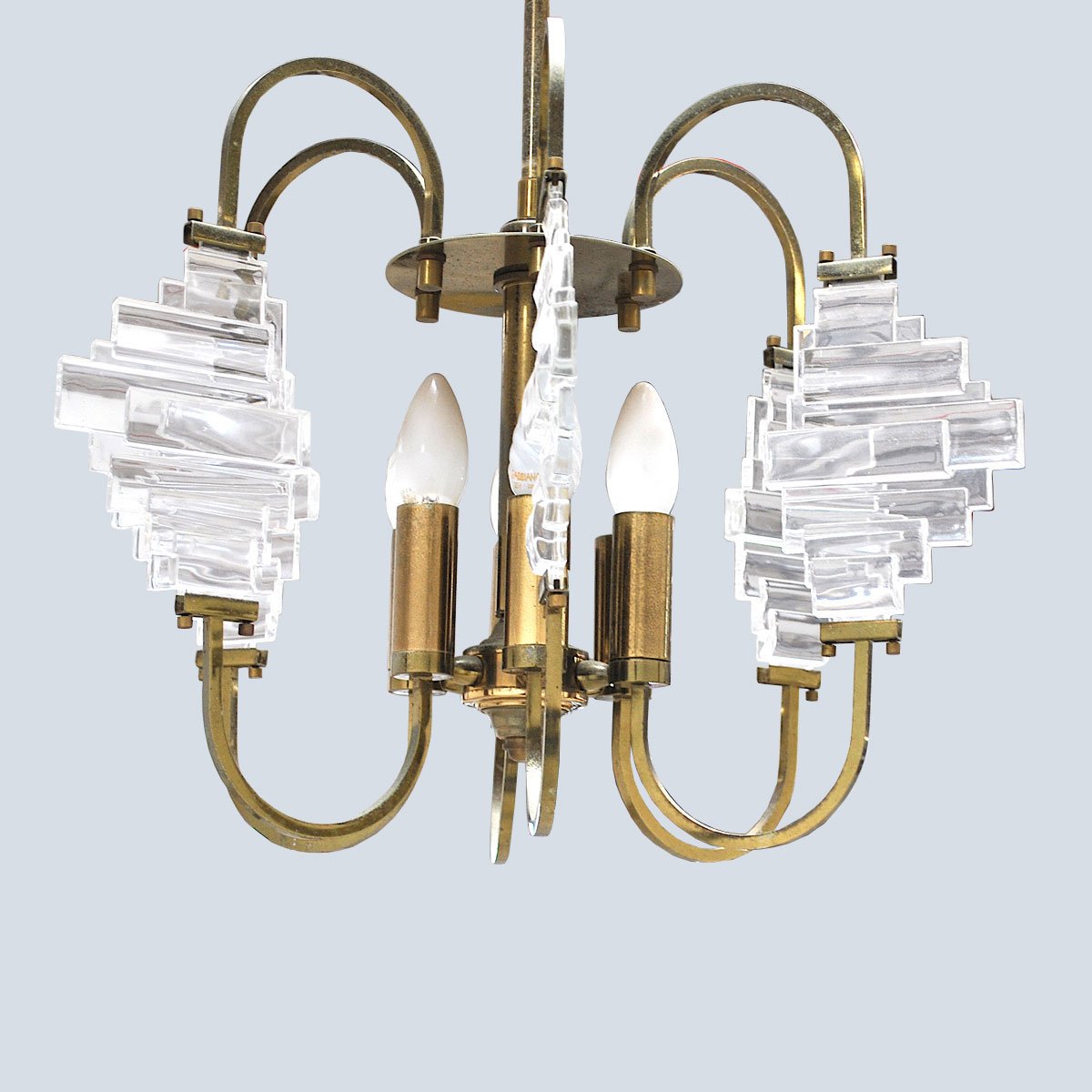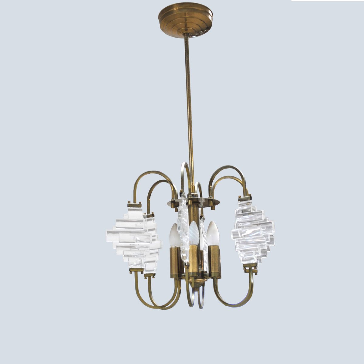 Brass and Glass Ceiling Lamp in the Style of Angelo Brotto, 1950s