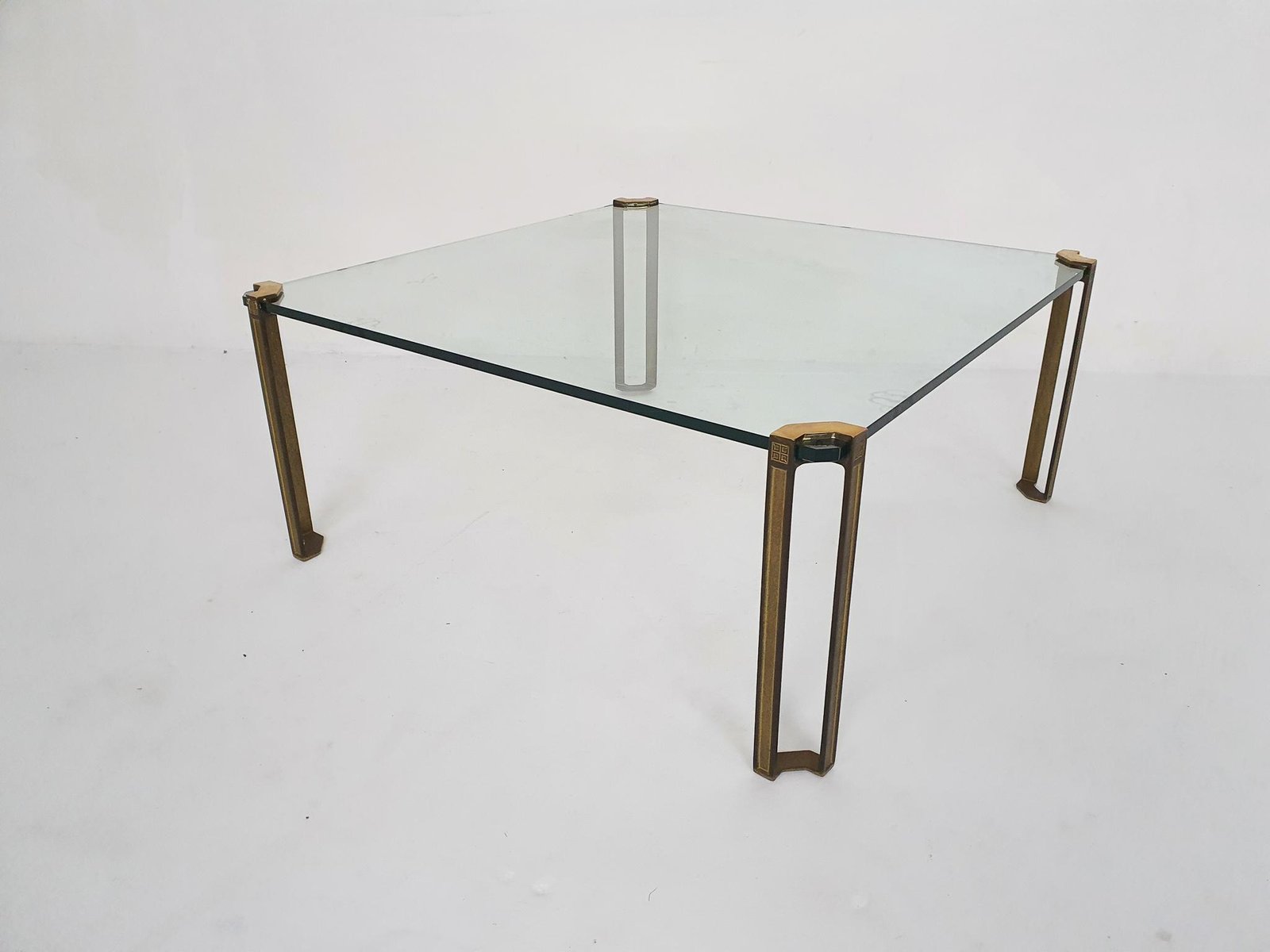 Brass and Glass Square Coffee Table by Peter Ghyczy for Ghyczy, 1970s