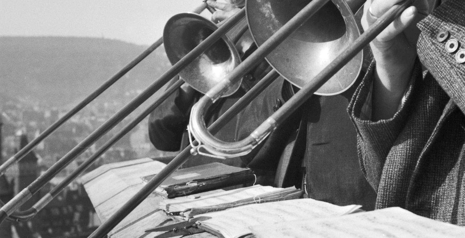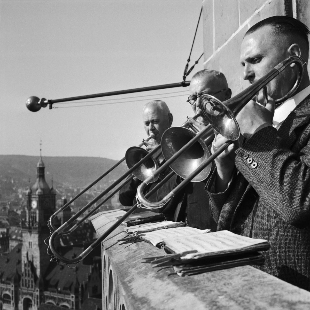 Brass Ensemble at the Belfry of a Church, Stuttgart Germany, 1935