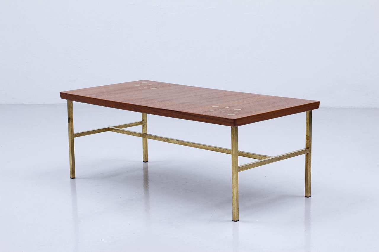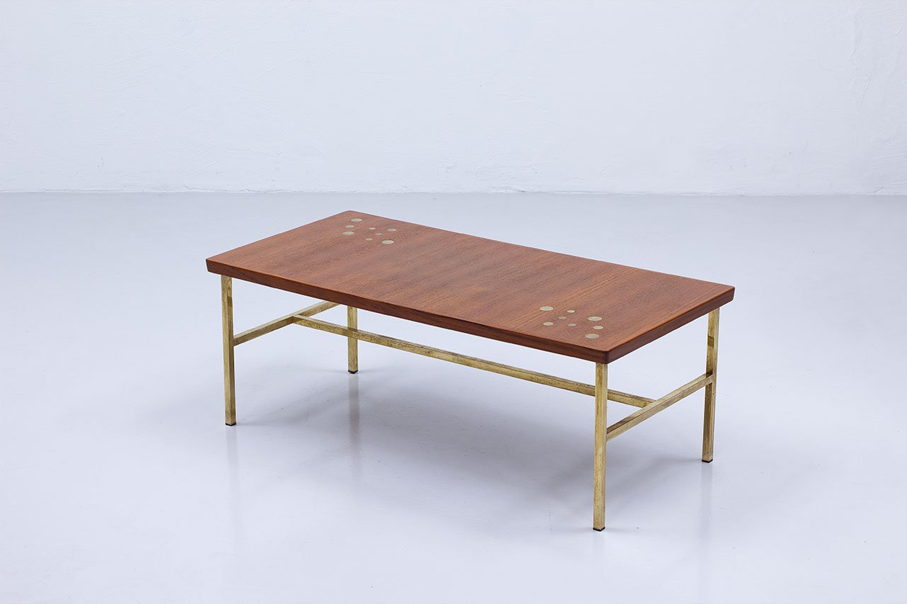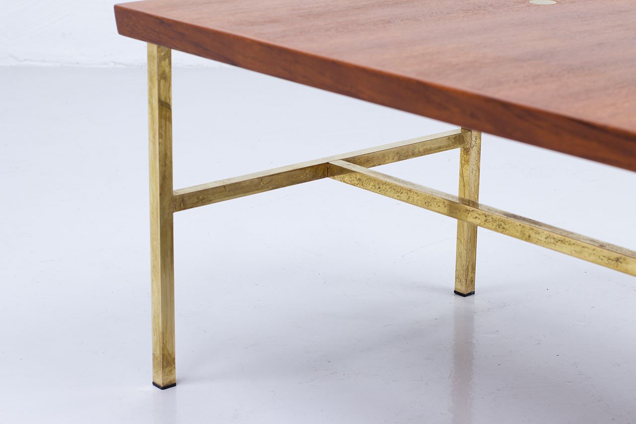 Brass & Teak Coffee Table, Sweden, 1960s
