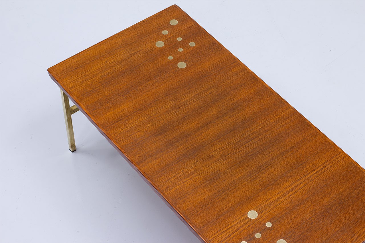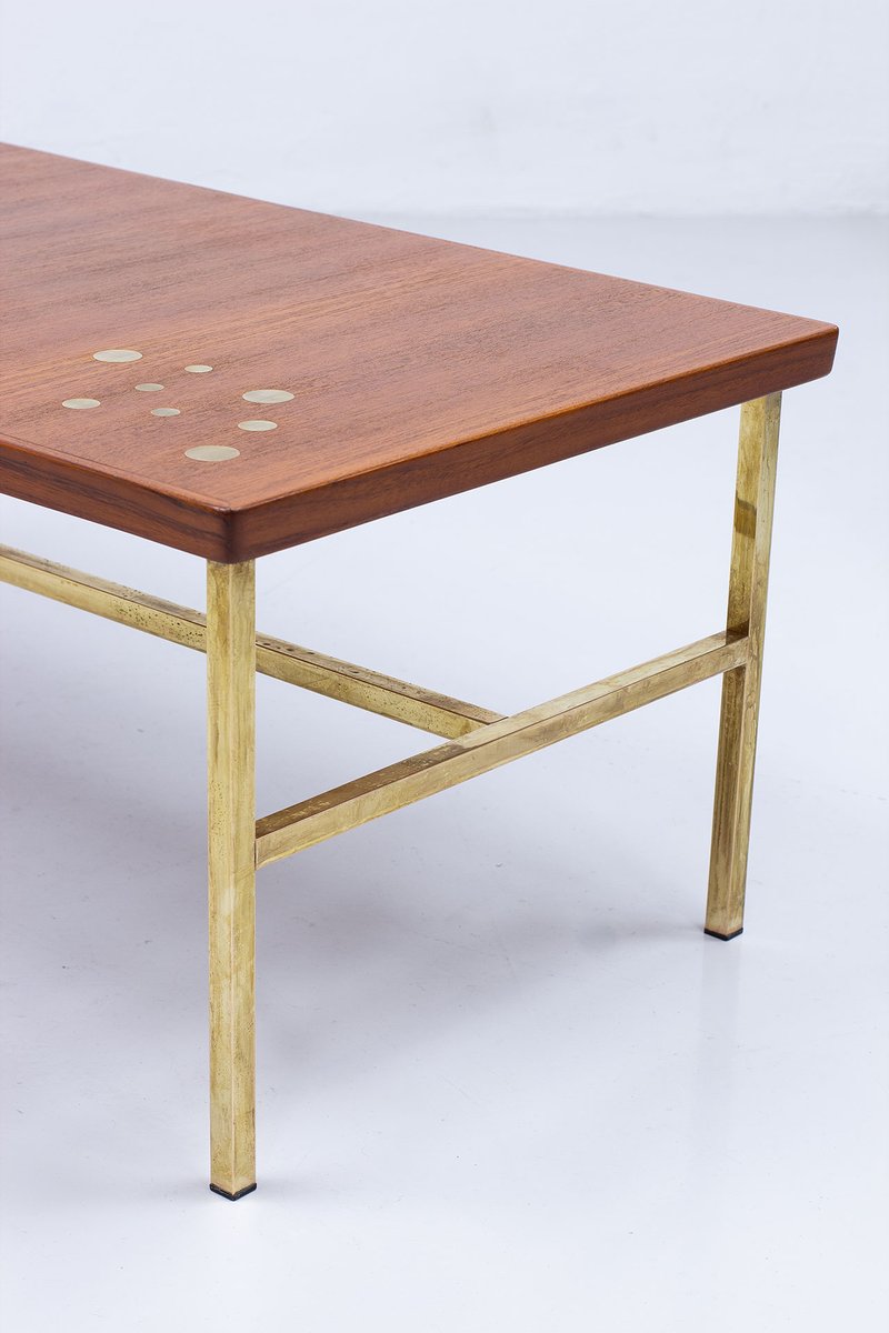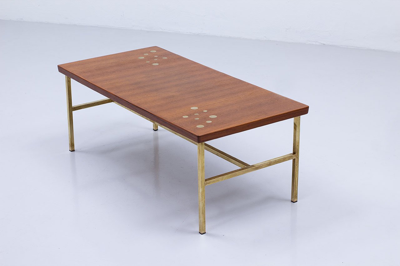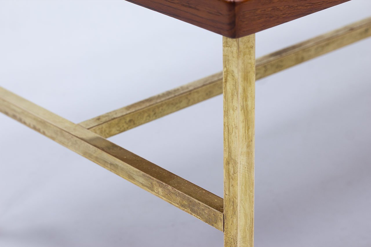 Brass & Teak Coffee Table, Sweden, 1960s