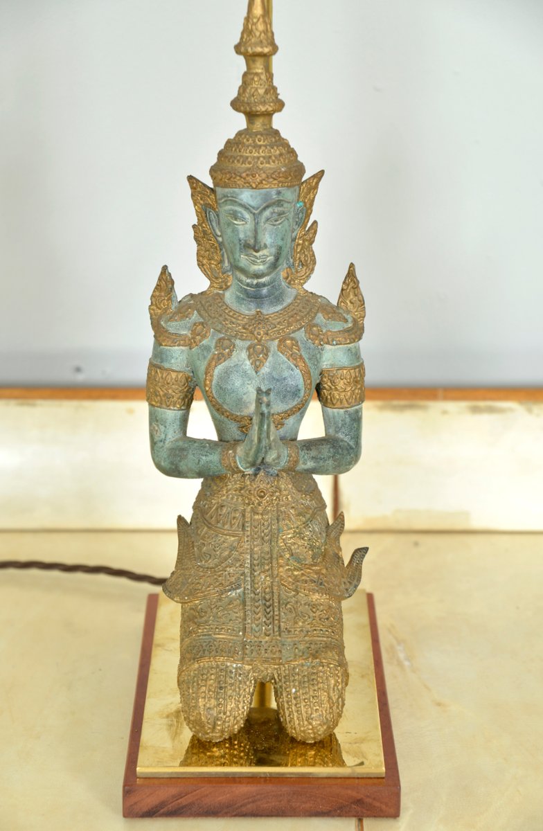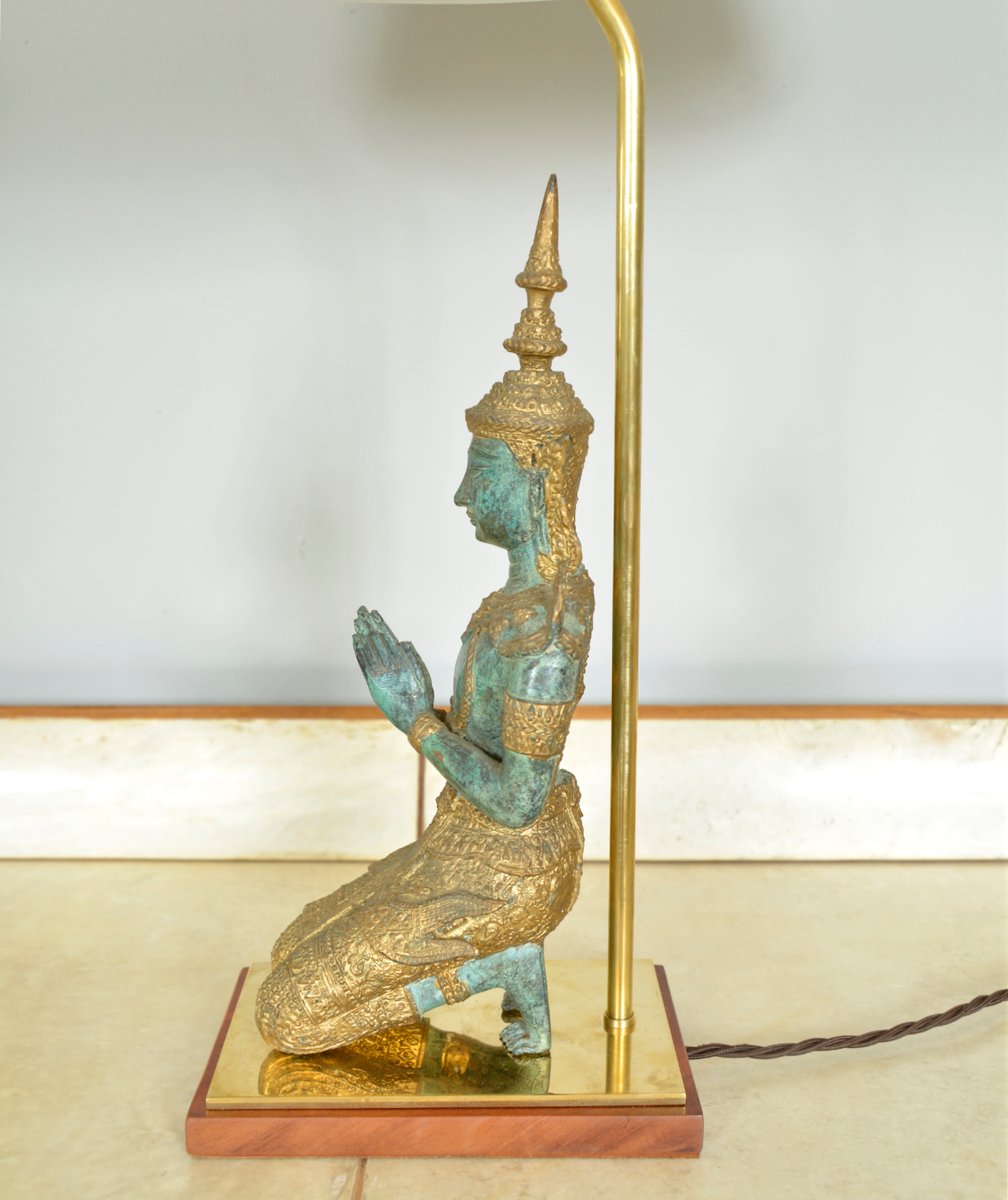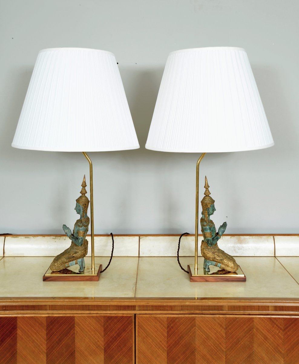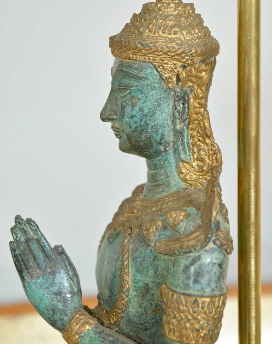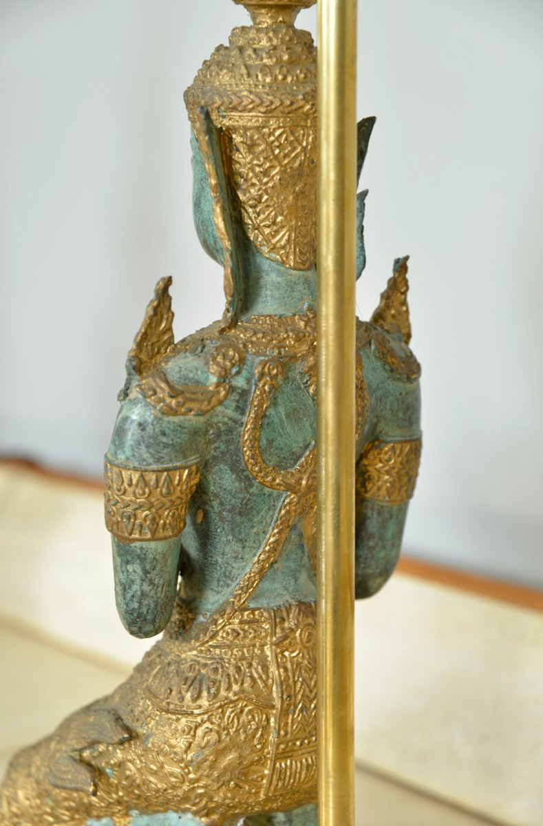 Bronze Brass Gilt Thai Teppanom Buddha Table Lamps in the style of Mont, Belgium, Set of 2