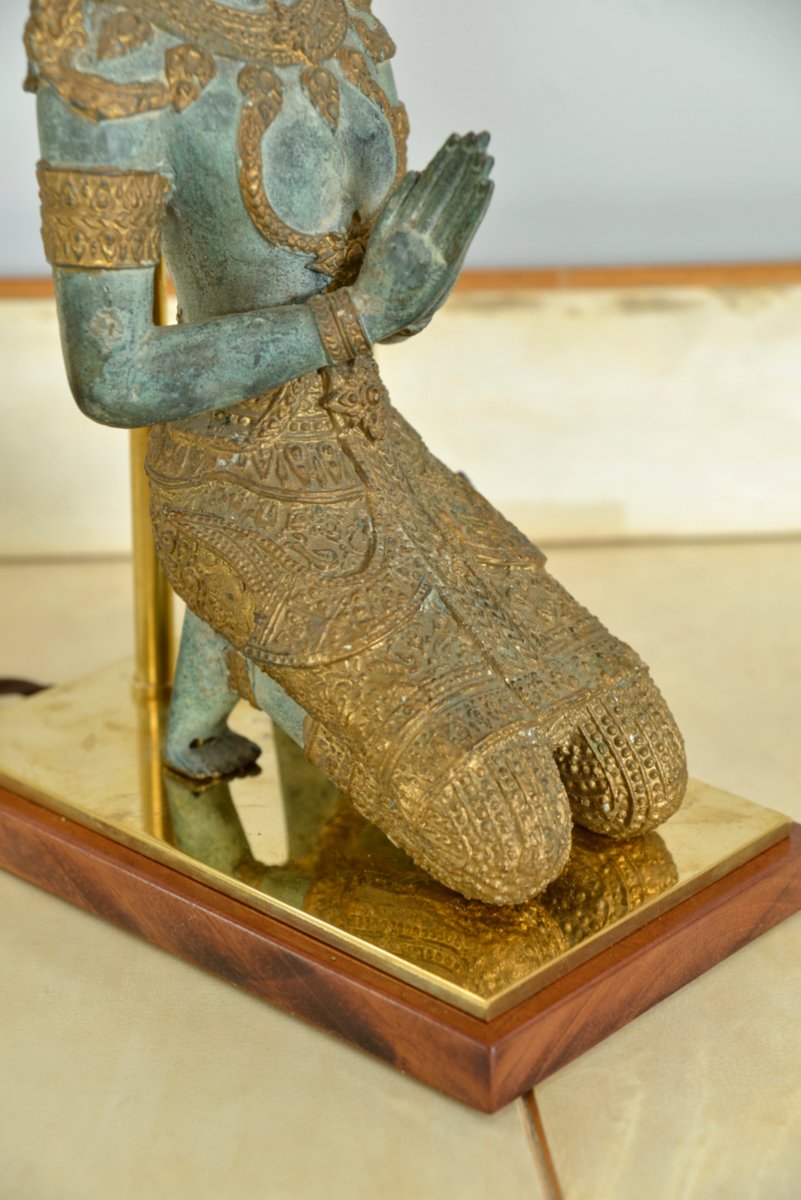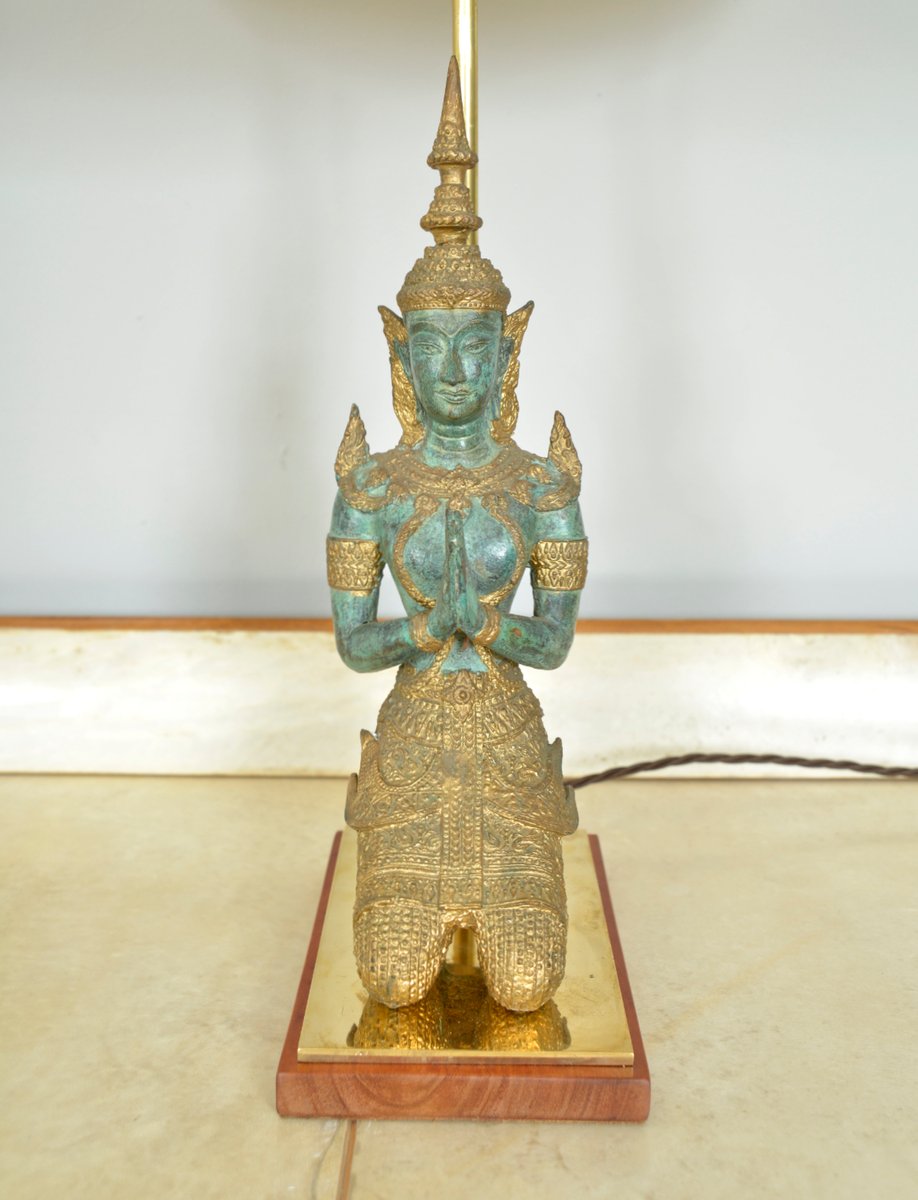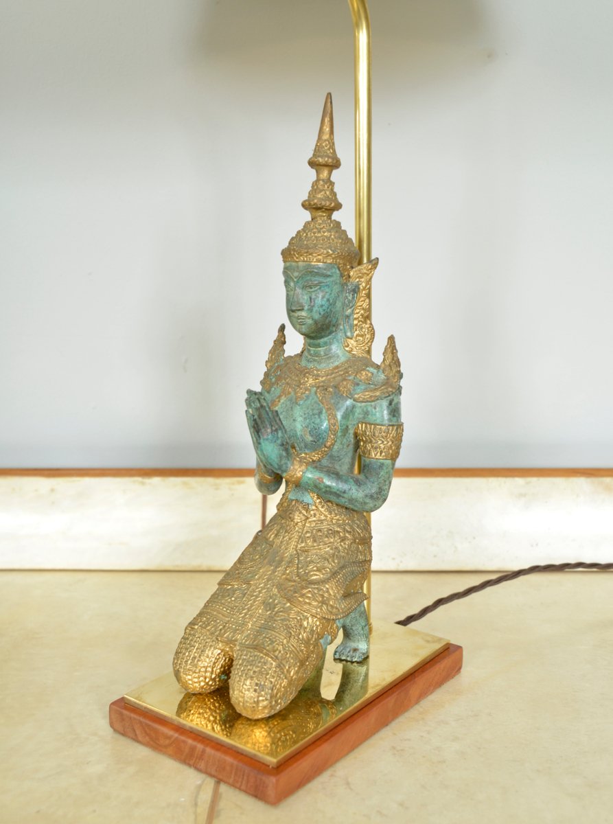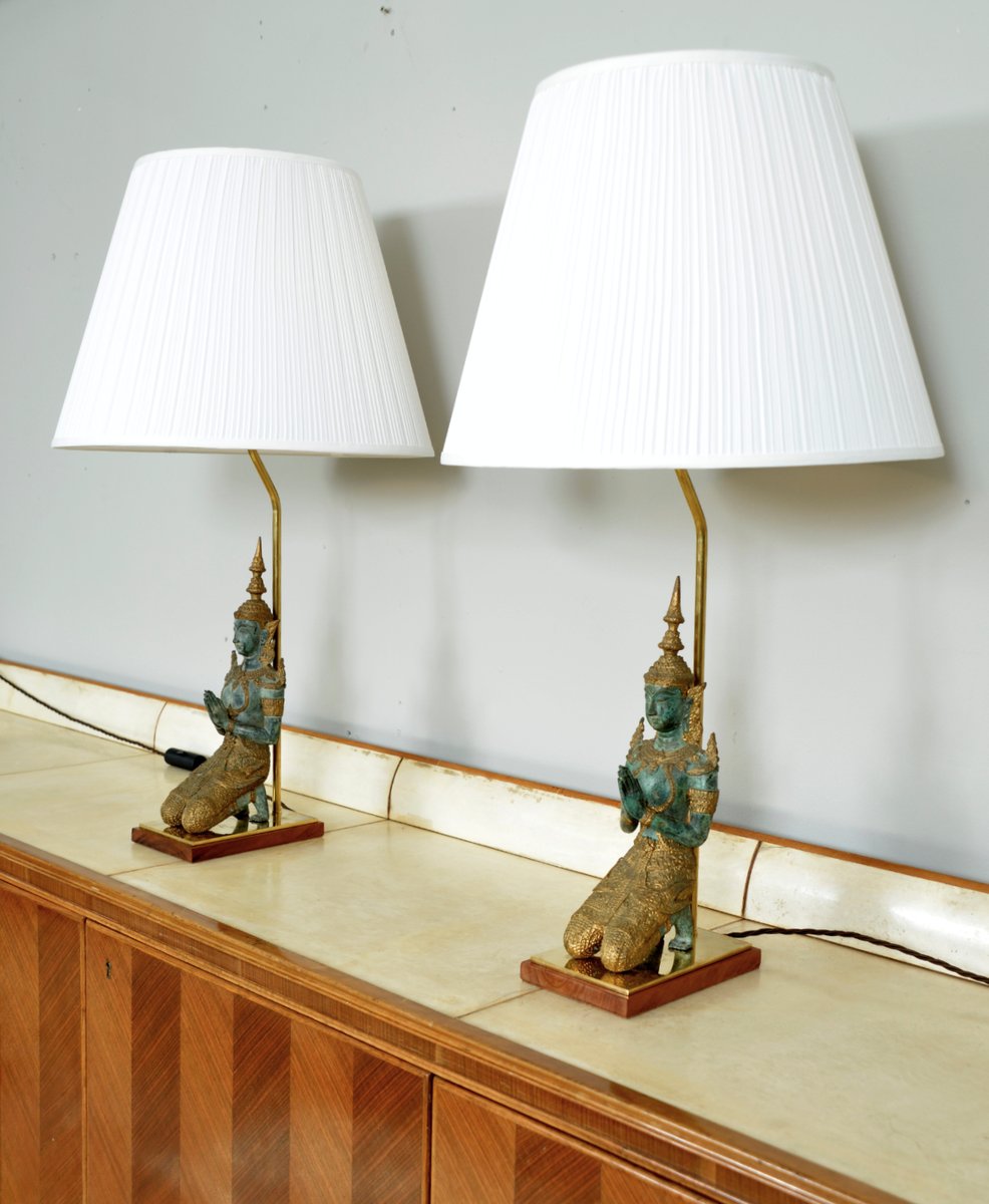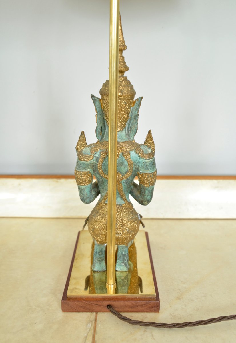 Bronze Brass Gilt Thai Teppanom Buddha Table Lamps in the style of Mont, Belgium, Set of 2