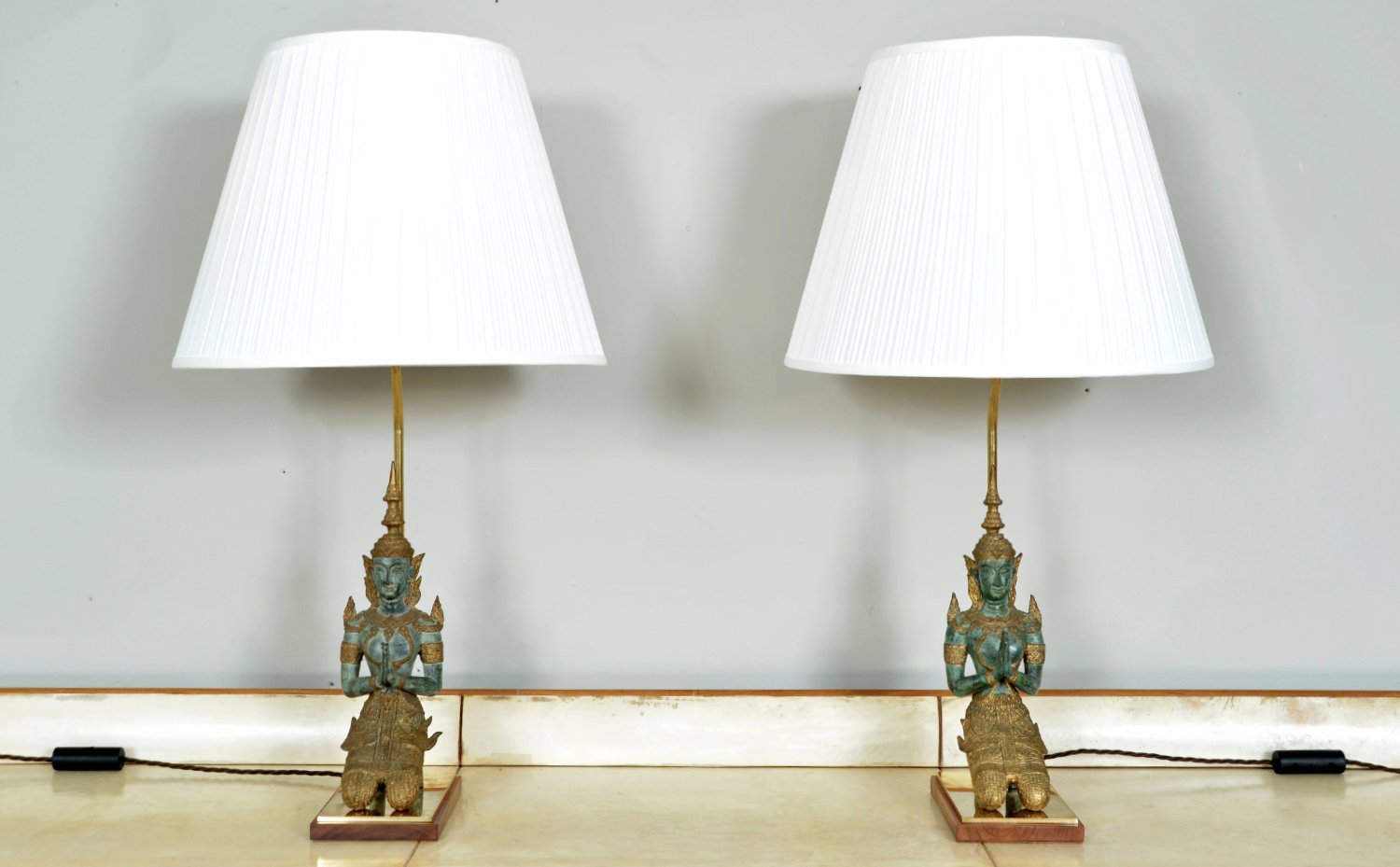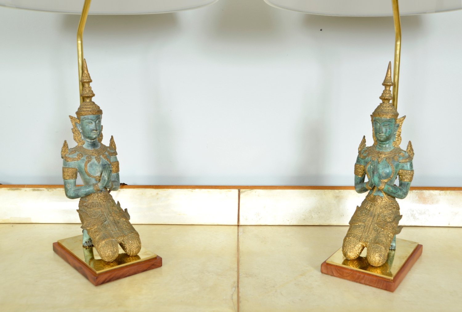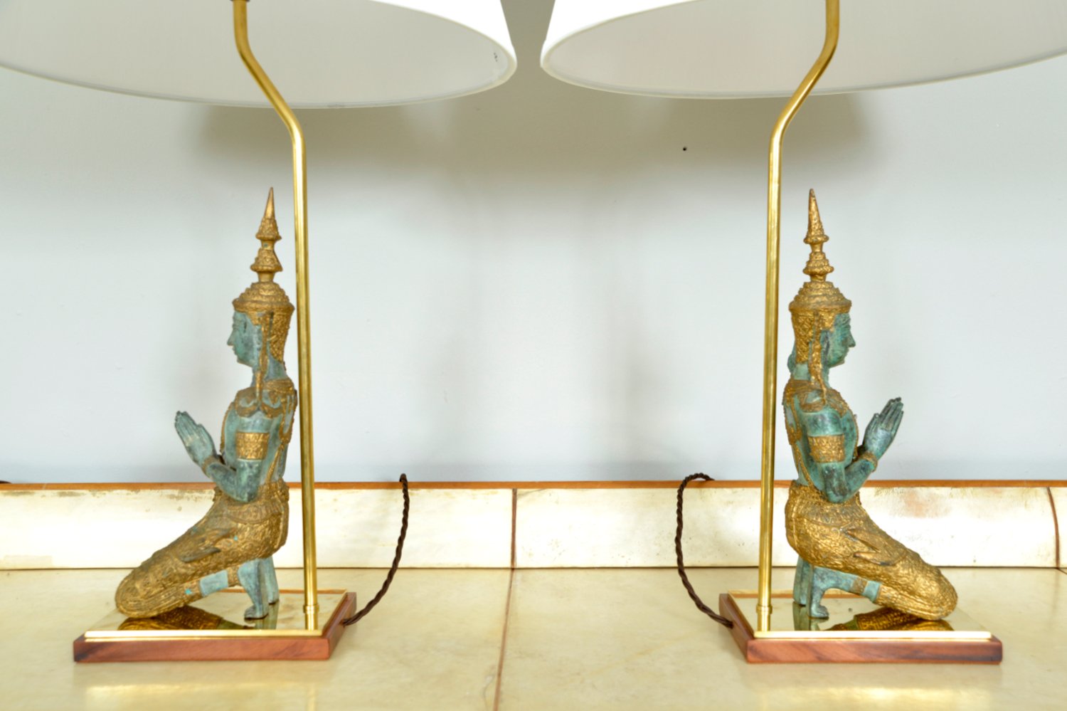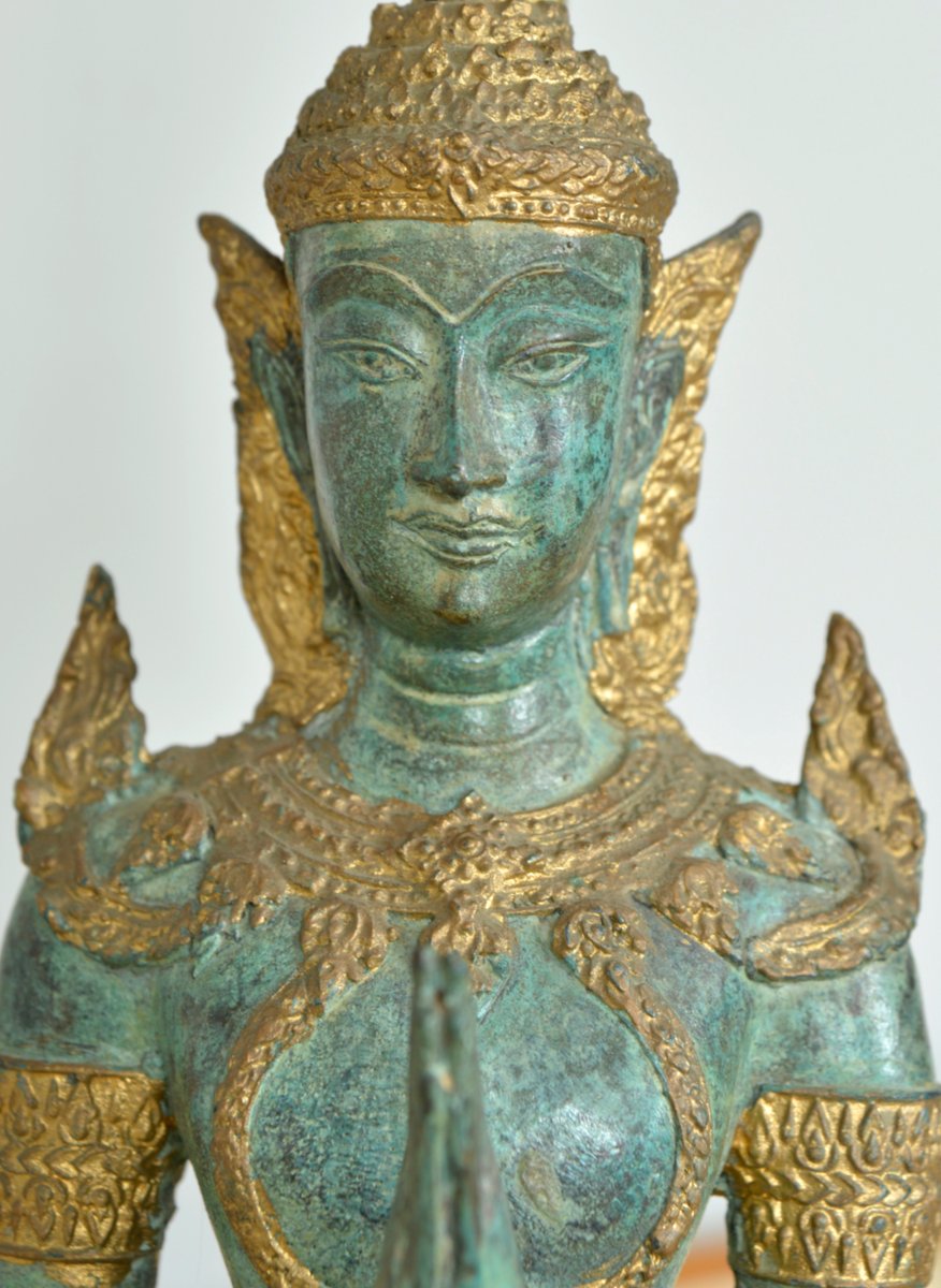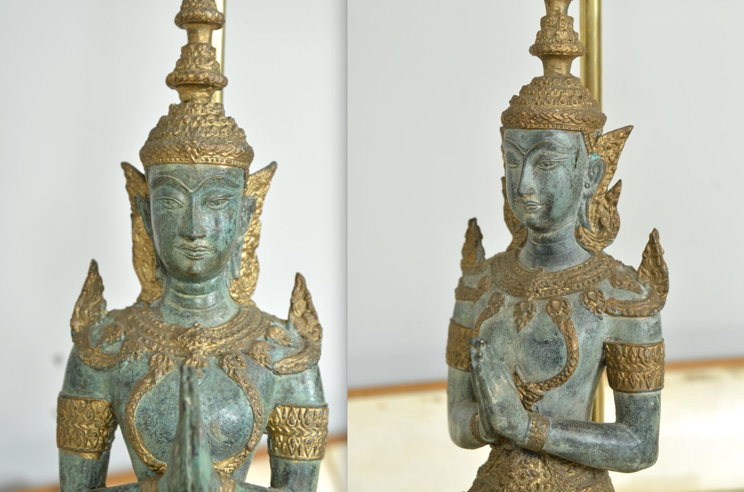 Bronze Brass Gilt Thai Teppanom Buddha Table Lamps in the style of Mont, Belgium, Set of 2