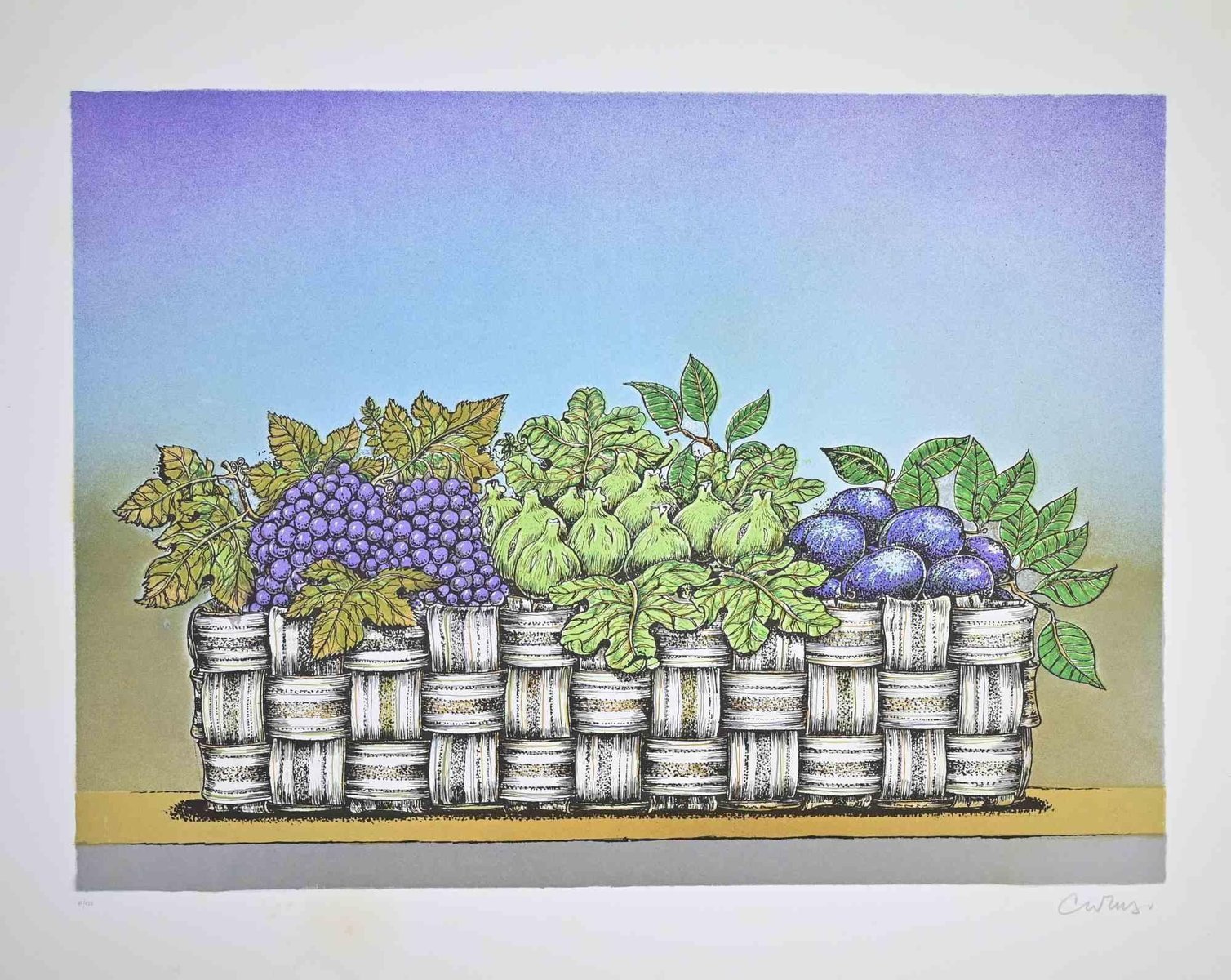 Bruno Caruso, Still Life with Basket of Fruit, Lithograph, 1980s