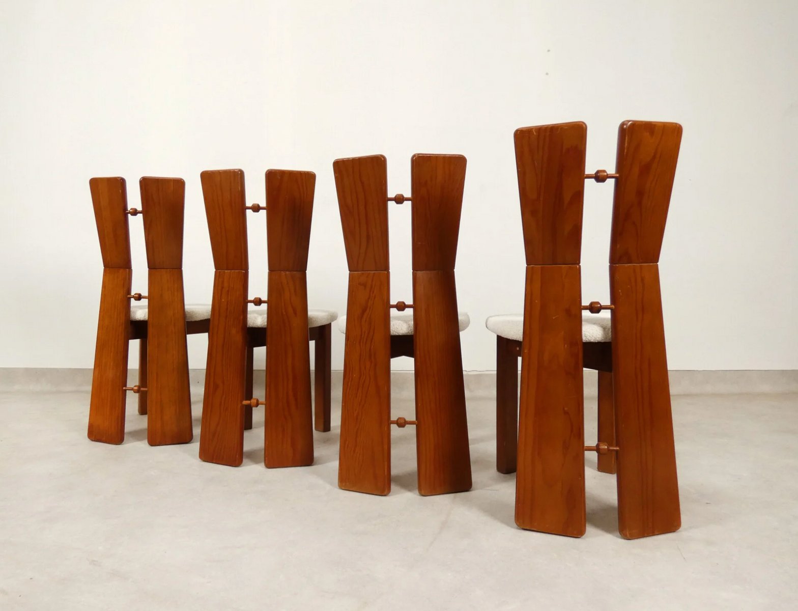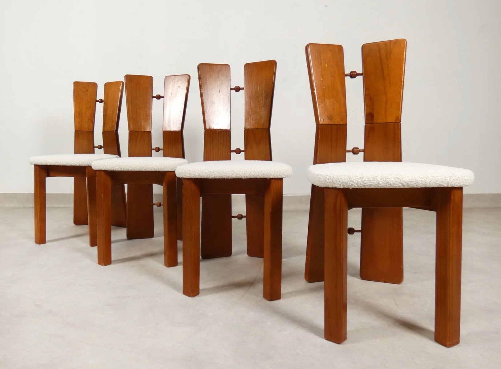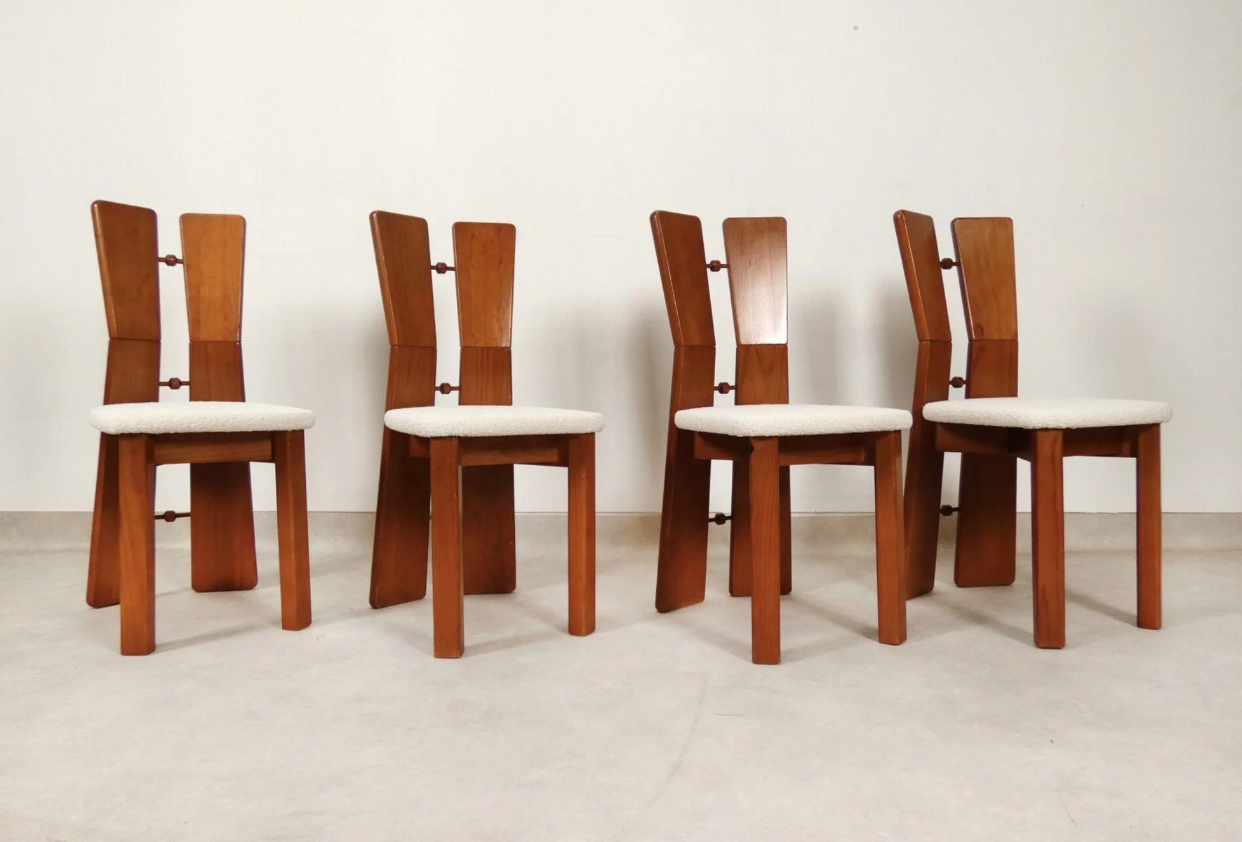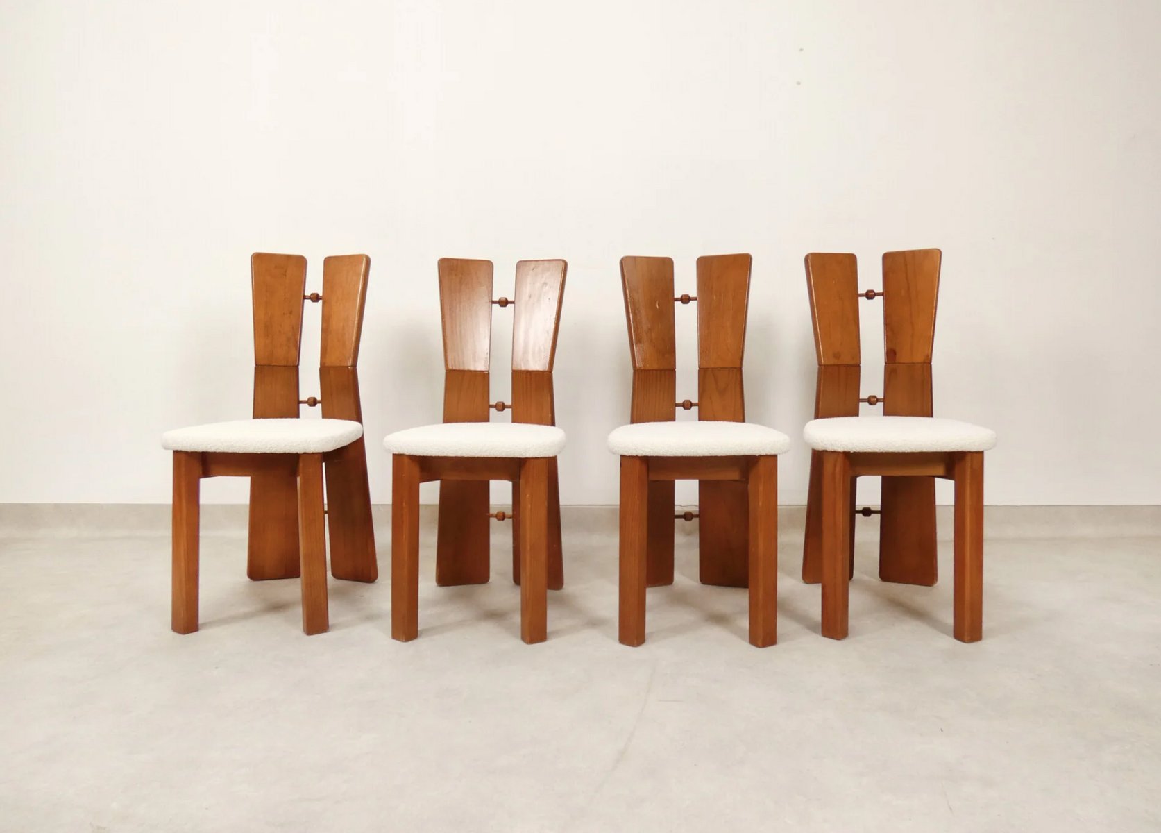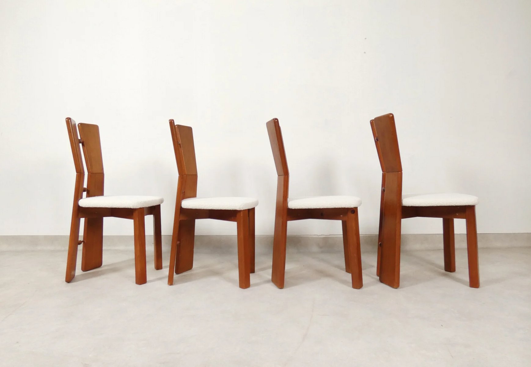 Brutalist Dining Chairs in Bouclé Fabric, 19th Century, Set of 4