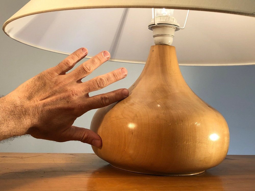 Brutalist French Sculpted Wood Table Lamp from Maison Regain, 1970s