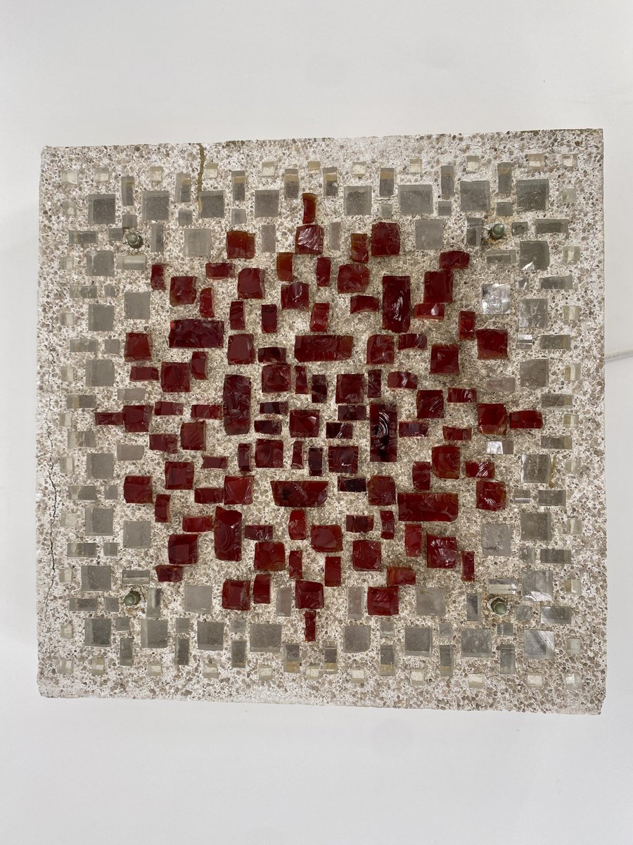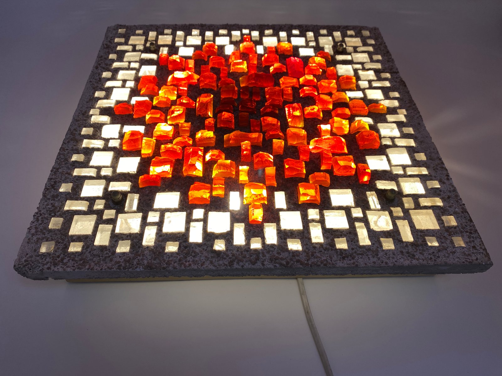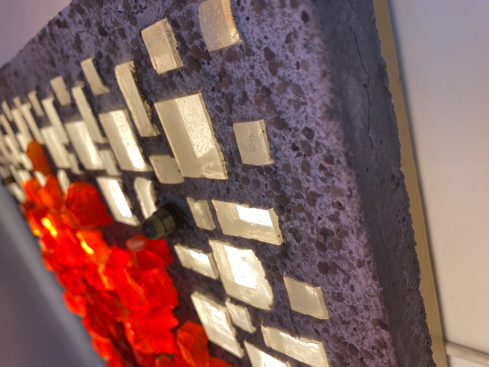 Brutalist Style Glass Object/Wall Lamp in Exposed Concrete attributed to Christof Krüger for Franz Lehmann Berlin Weißensee Glass Workshops, 1970s
