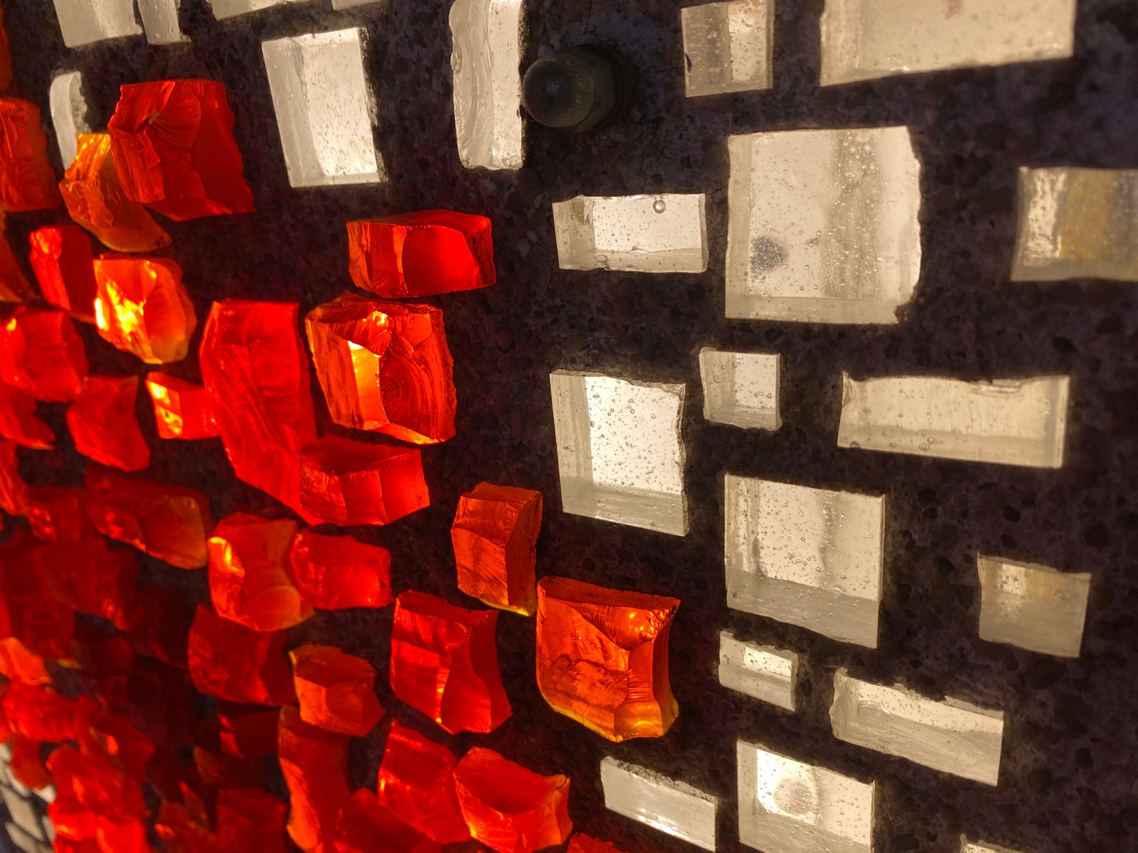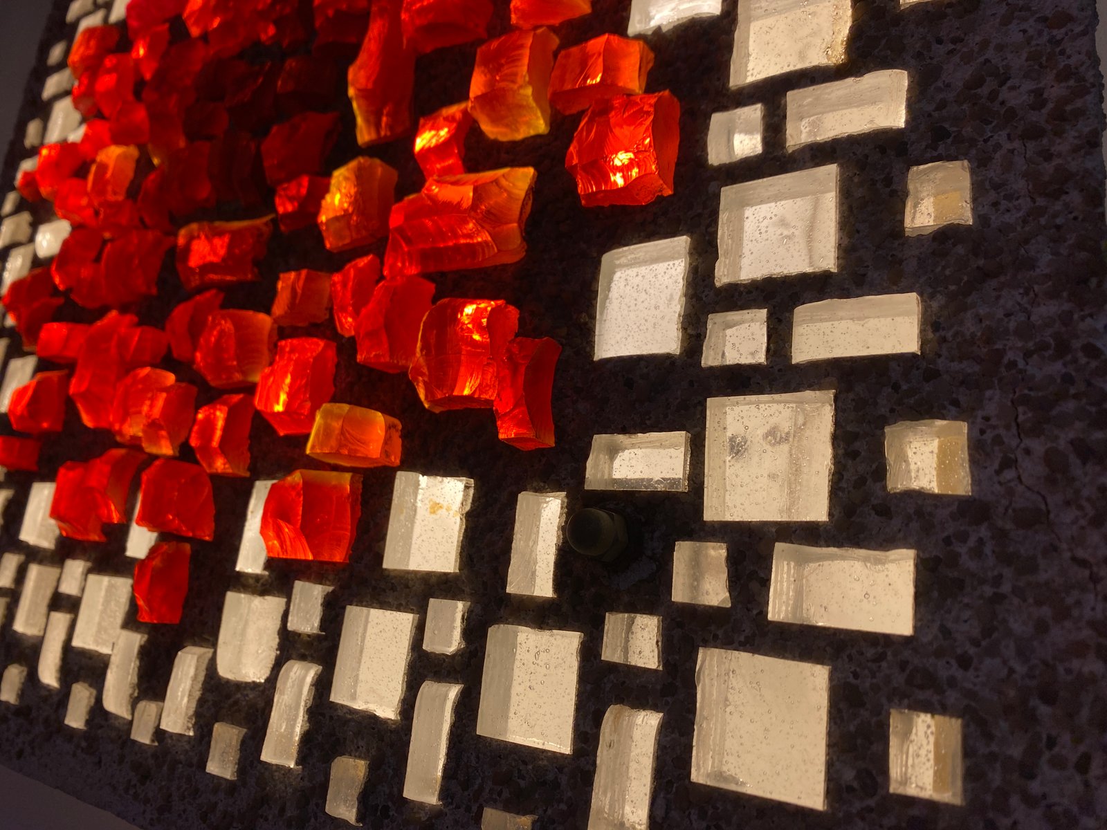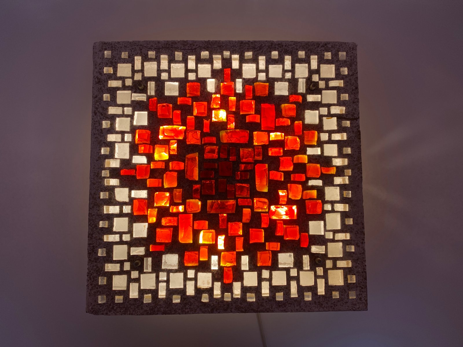 Brutalist Style Glass Object/Wall Lamp in Exposed Concrete attributed to Christof Krüger for Franz Lehmann Berlin Weißensee Glass Workshops, 1970s