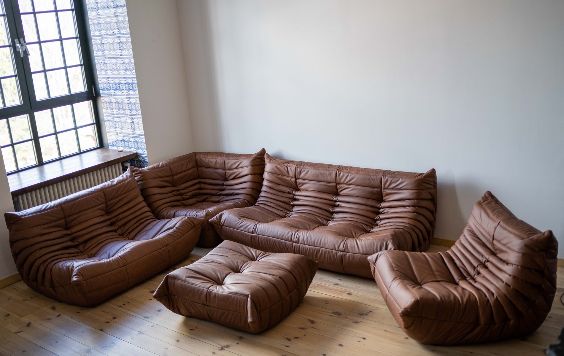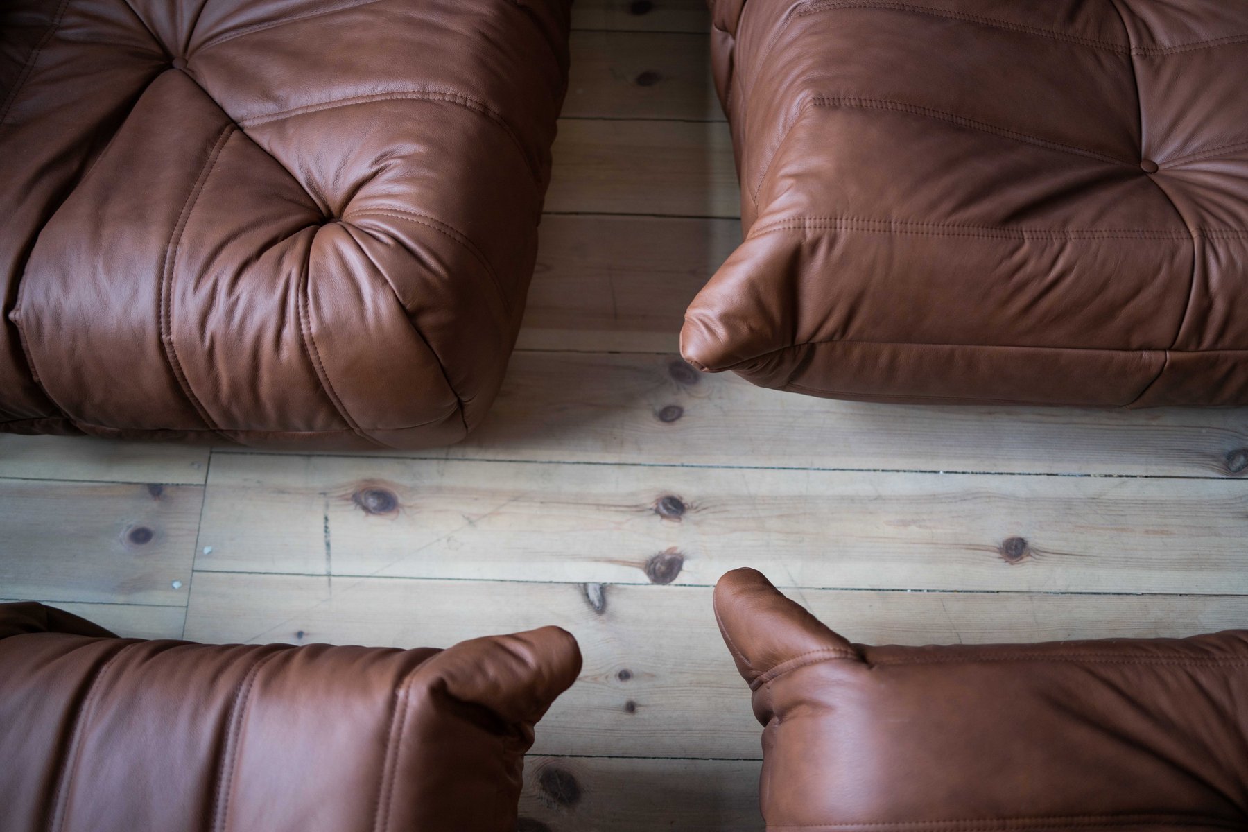 Whiskey Leather Togo Living Room Set by Michel Ducaroy for Ligne Roset, Set of 5