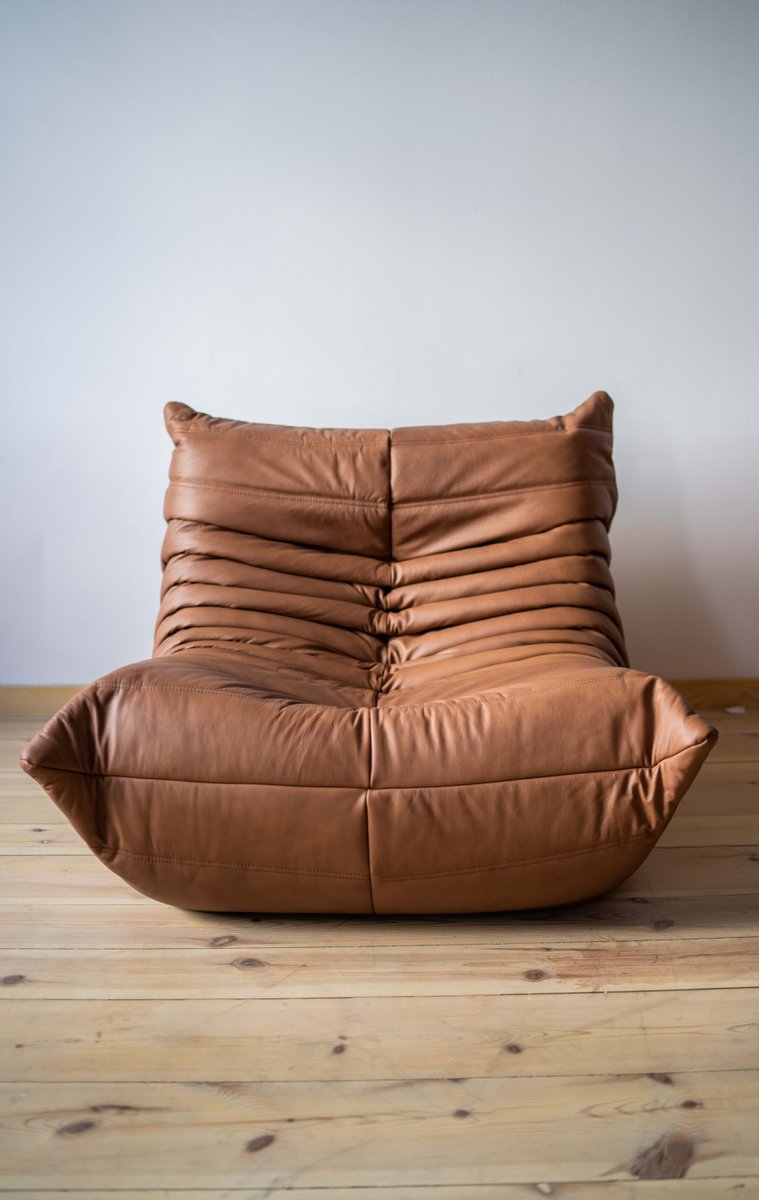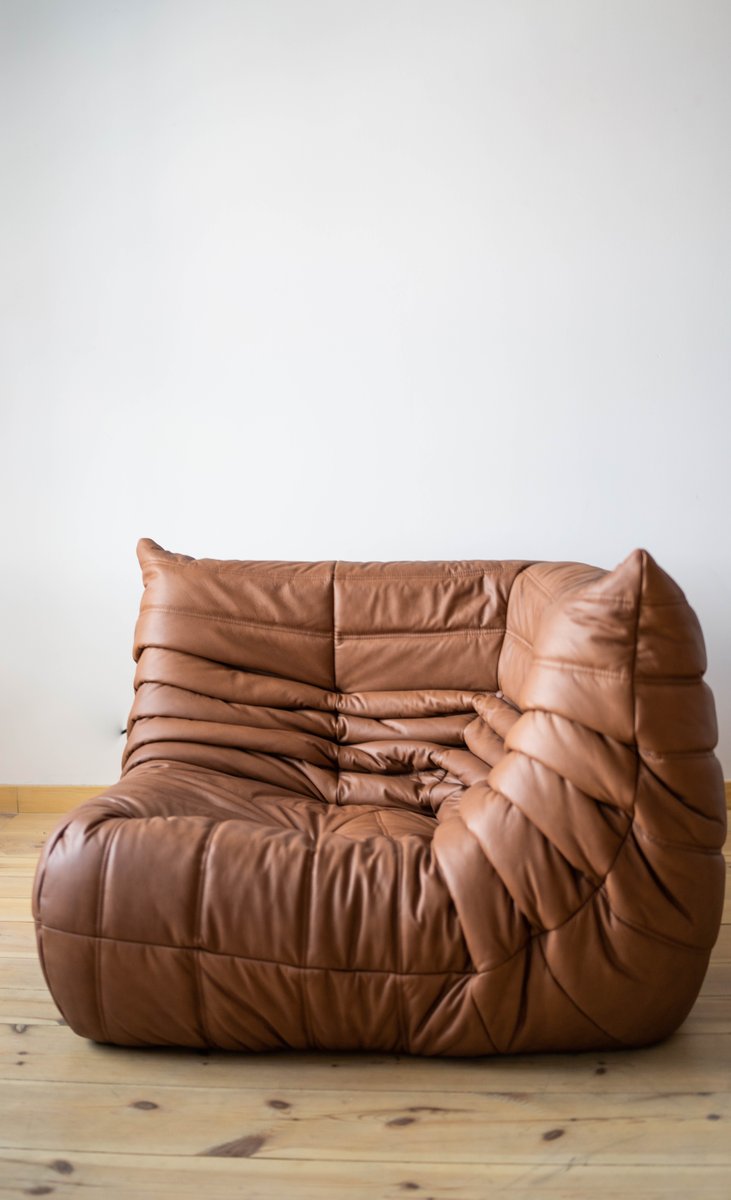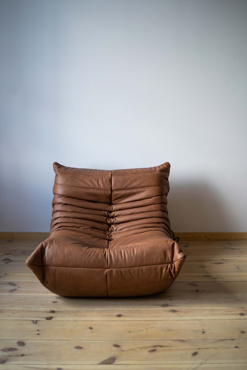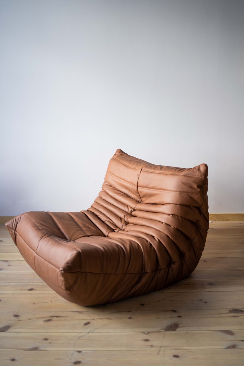 Togo Chaise Lounge in Brown Leather attributed to Michel Ducaroy for Ligne Roset, 1974