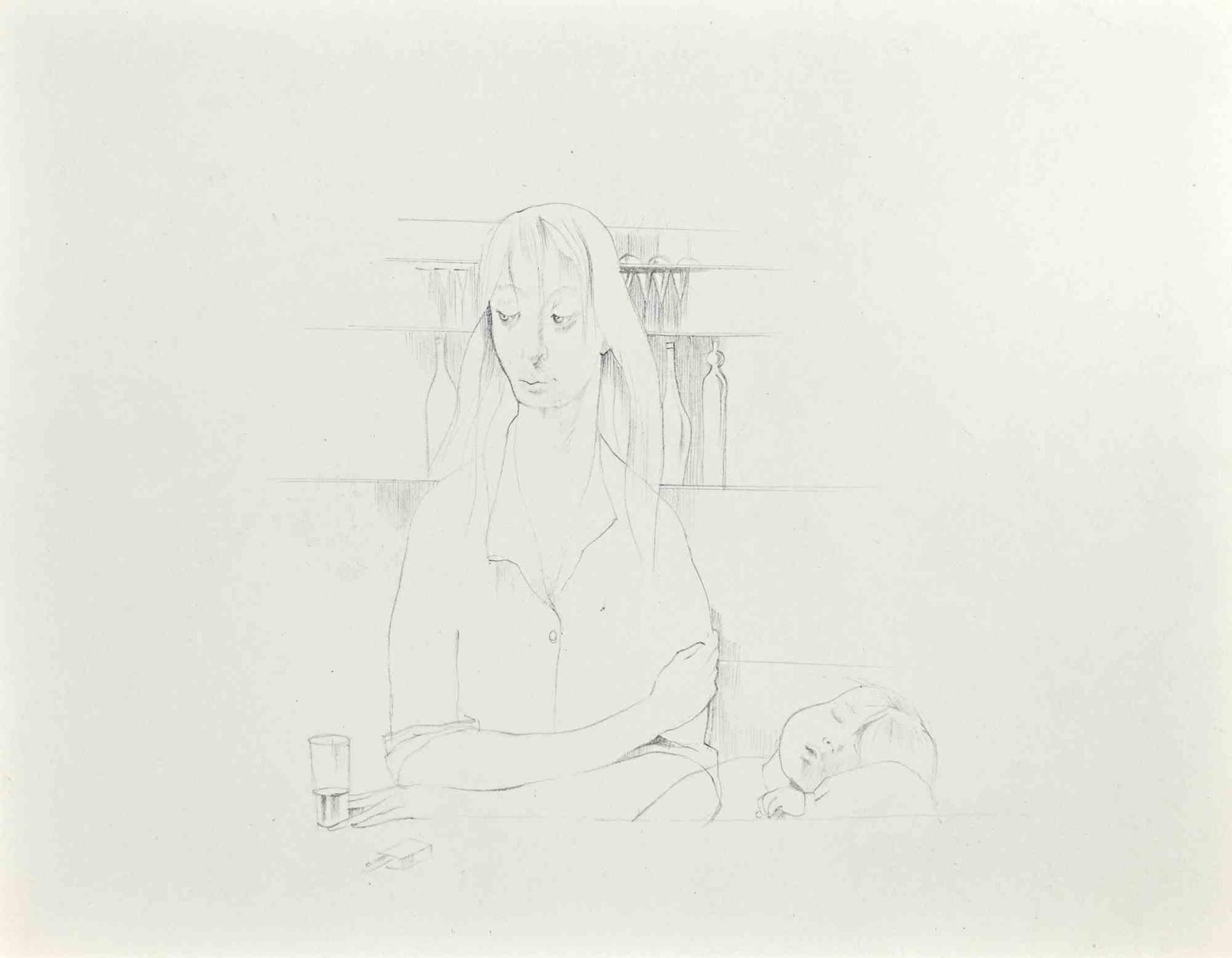 Buscot, Portrait of Mother and Child, Drawing on Paper, 1950s
