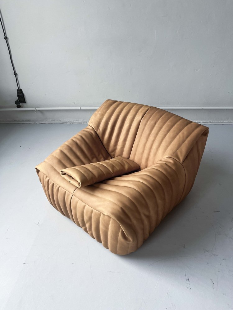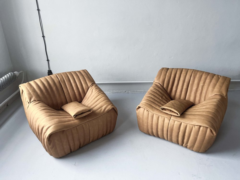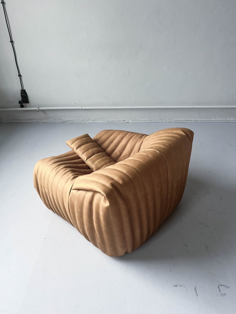 Pine Leather Togo Corner Lounge Chair, Corner Seat & 2-Seat Sofa by Michel Ducaroy for Ligne Roset, Set of 3