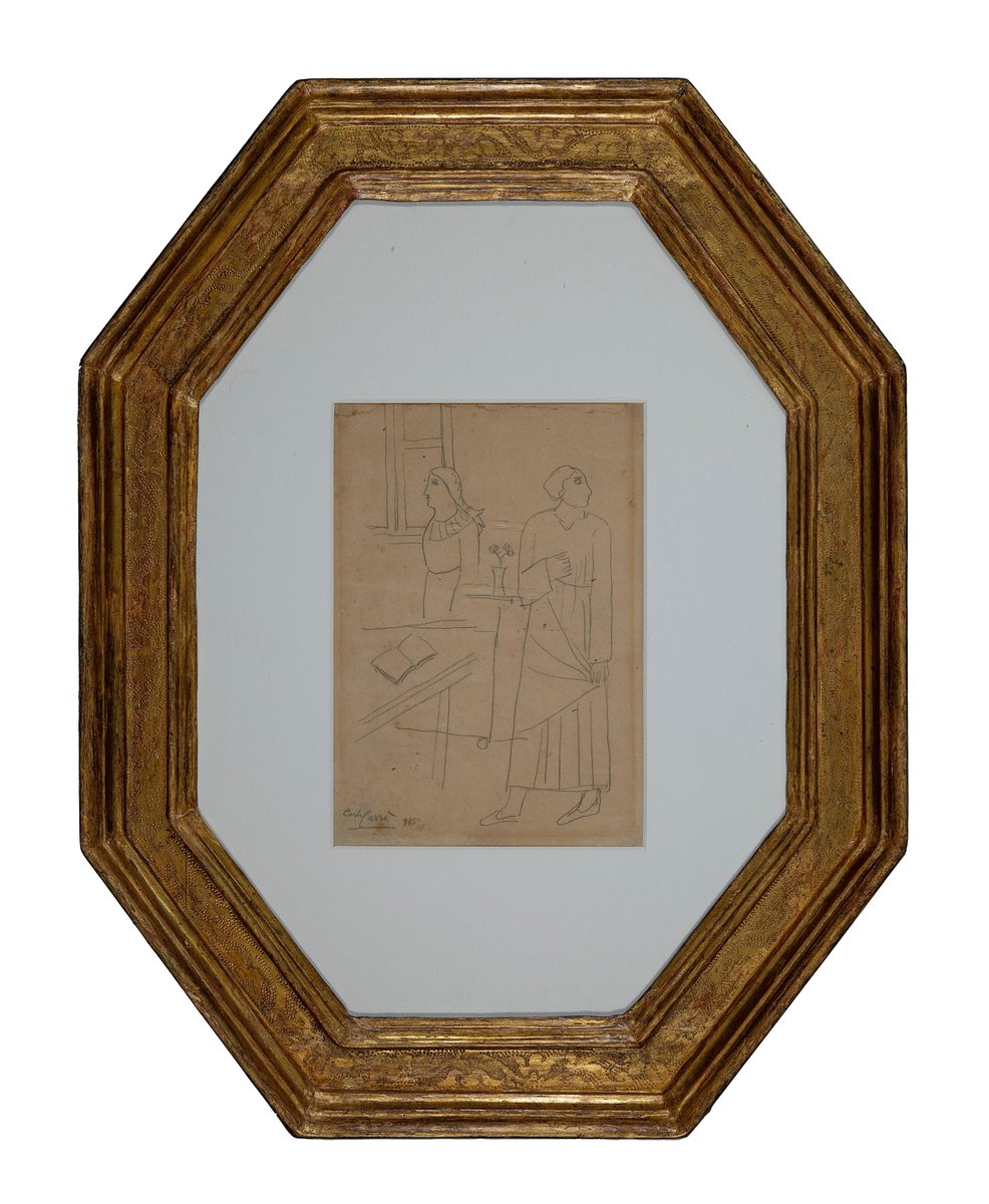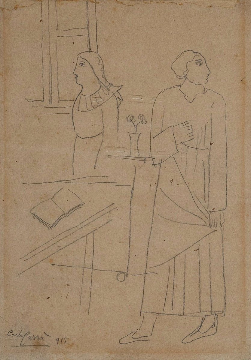 Carlo Carrà, Figures in an Interior, Original Drawing, 1915