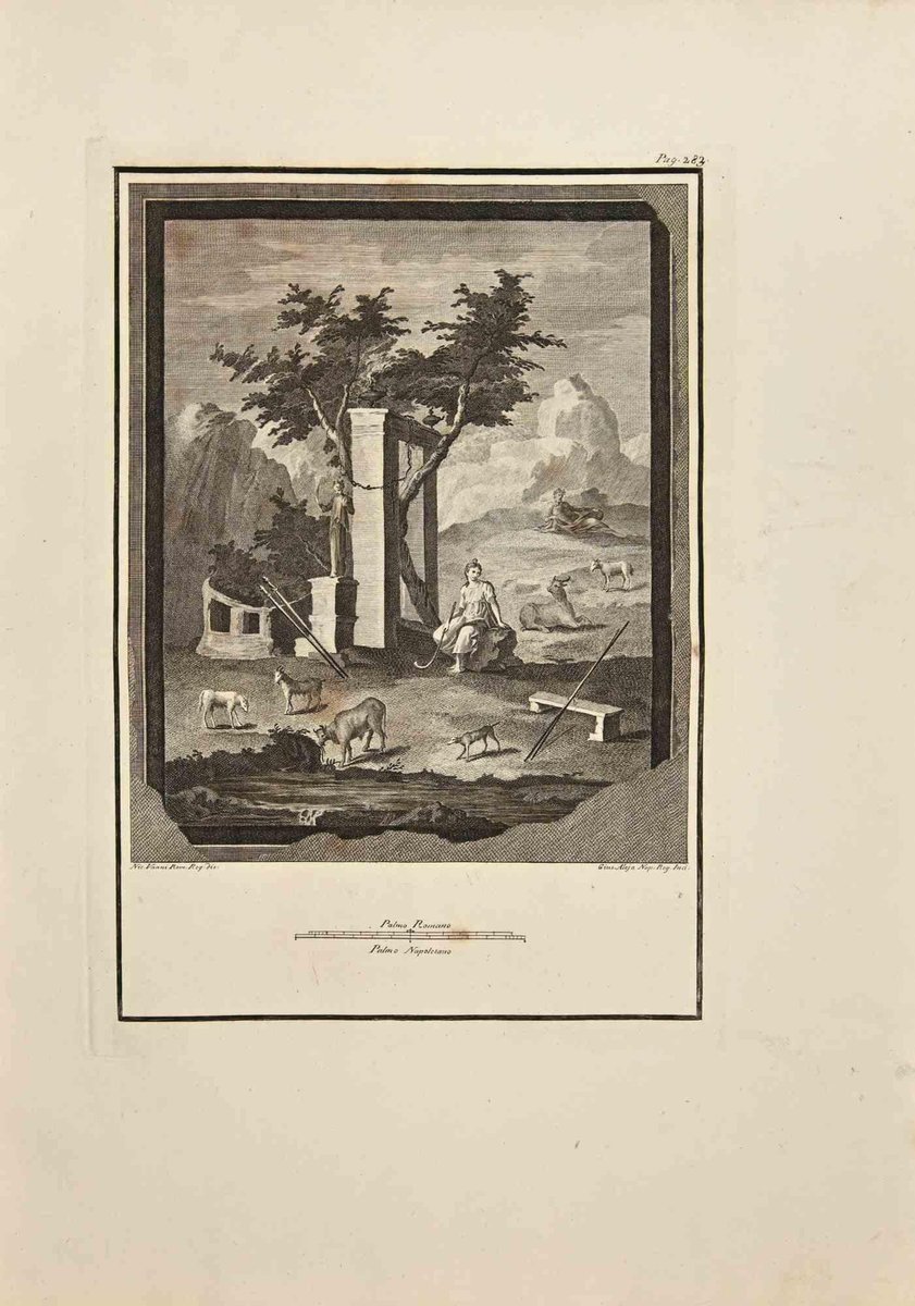 Carlo Oraty, Roman Temple with Shepherd, Etching by Giussepe Aloja, 18th Century