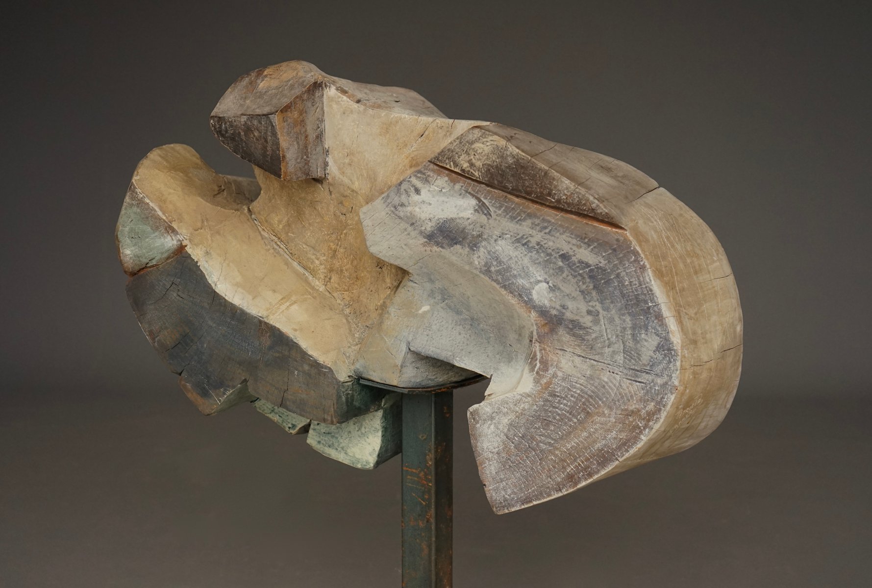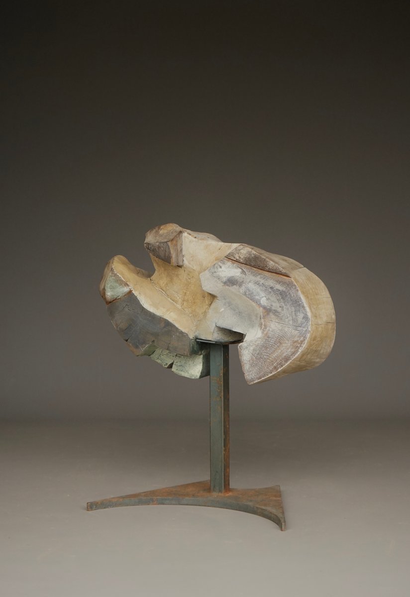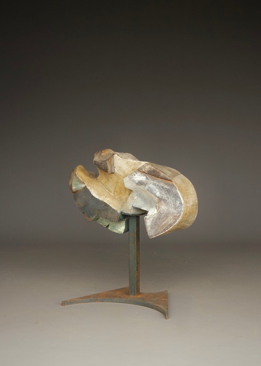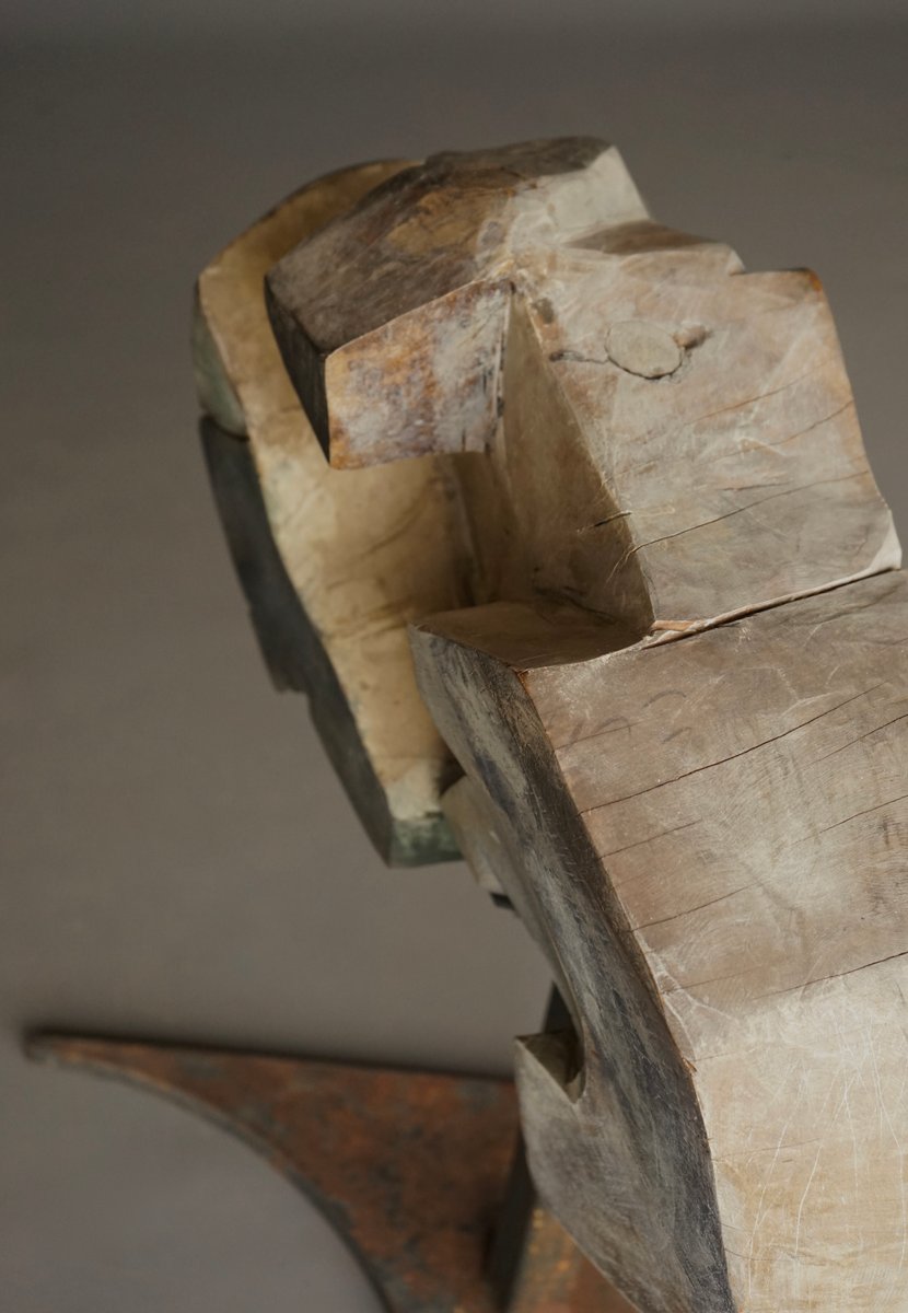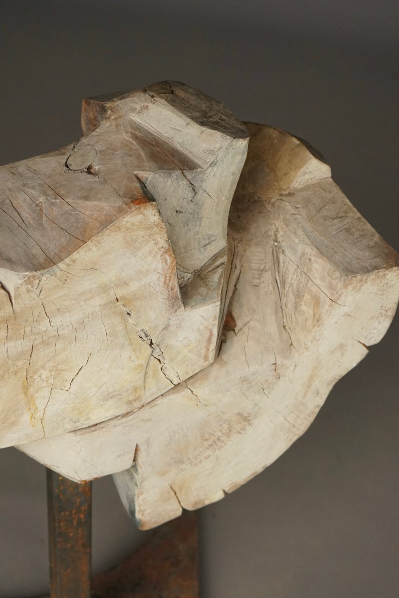 Carved Brutalist Abstract Sculpture, 1970s, Wood and Metal