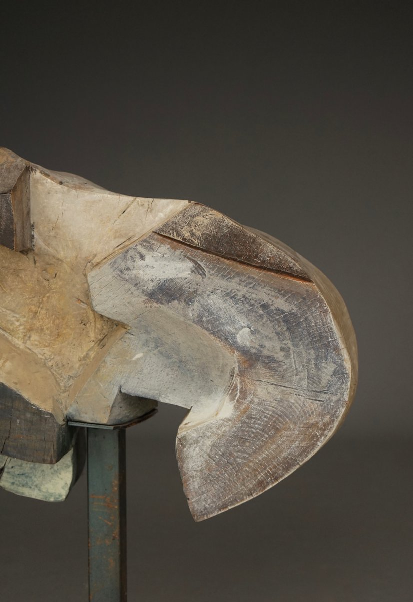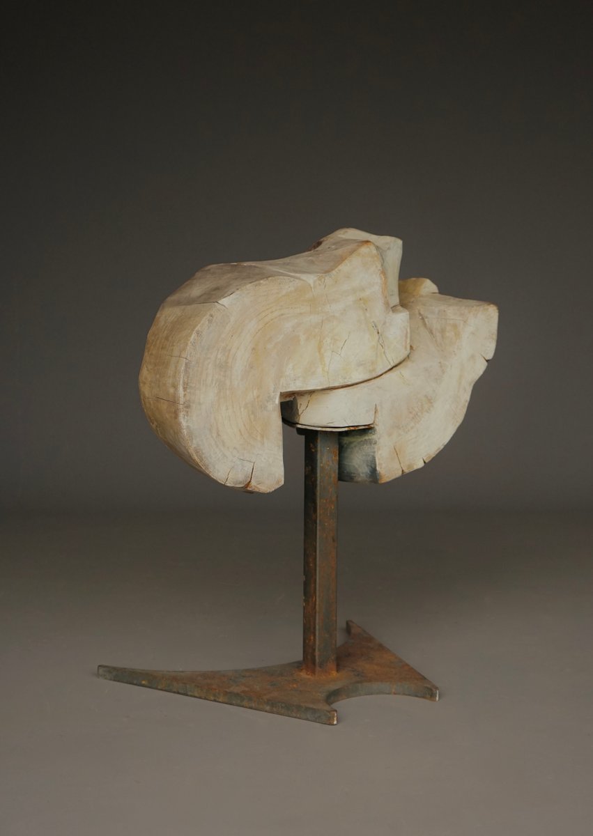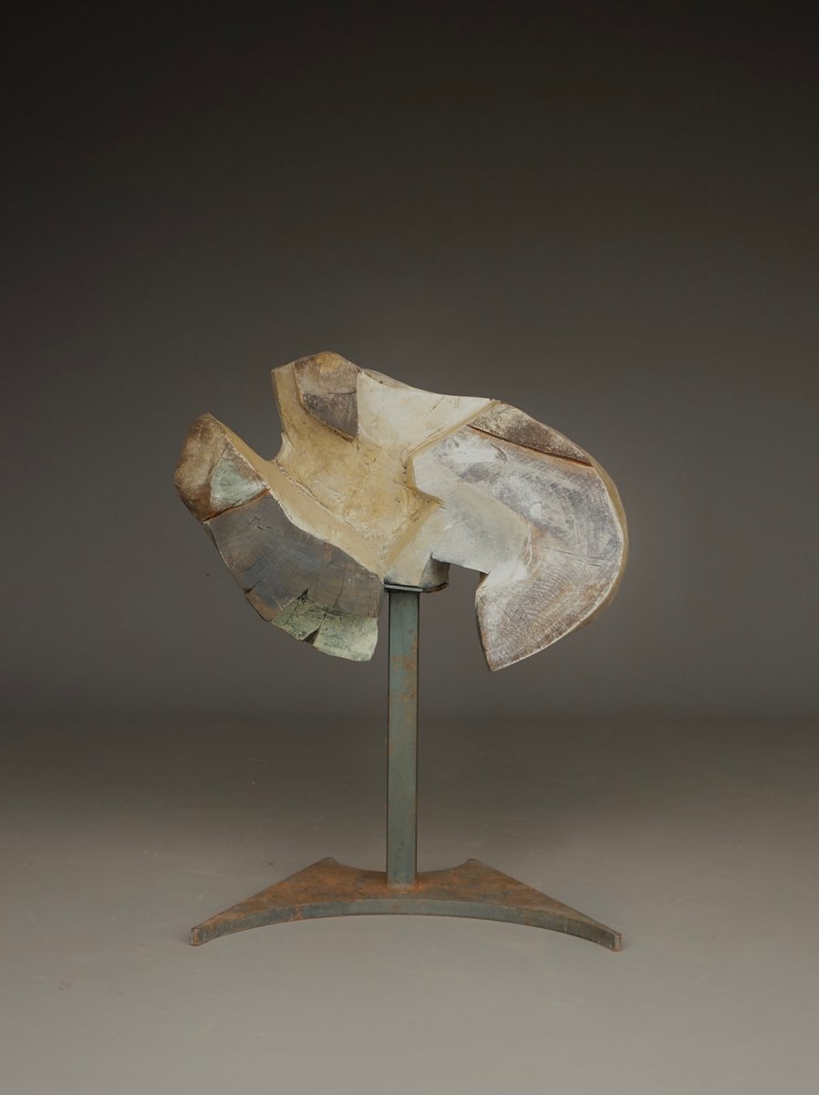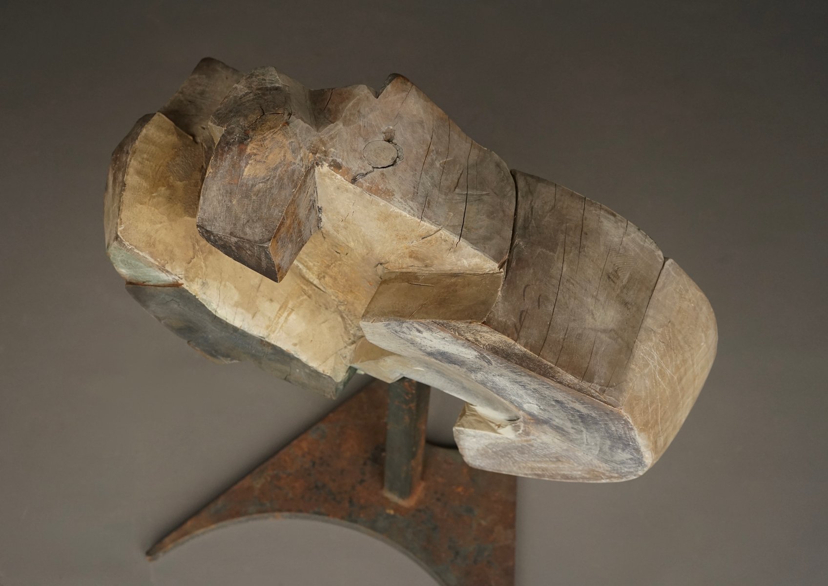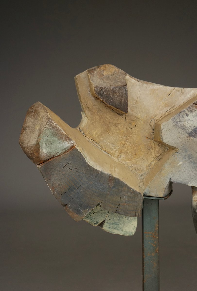 Carved Brutalist Abstract Sculpture, 1970s, Wood and Metal