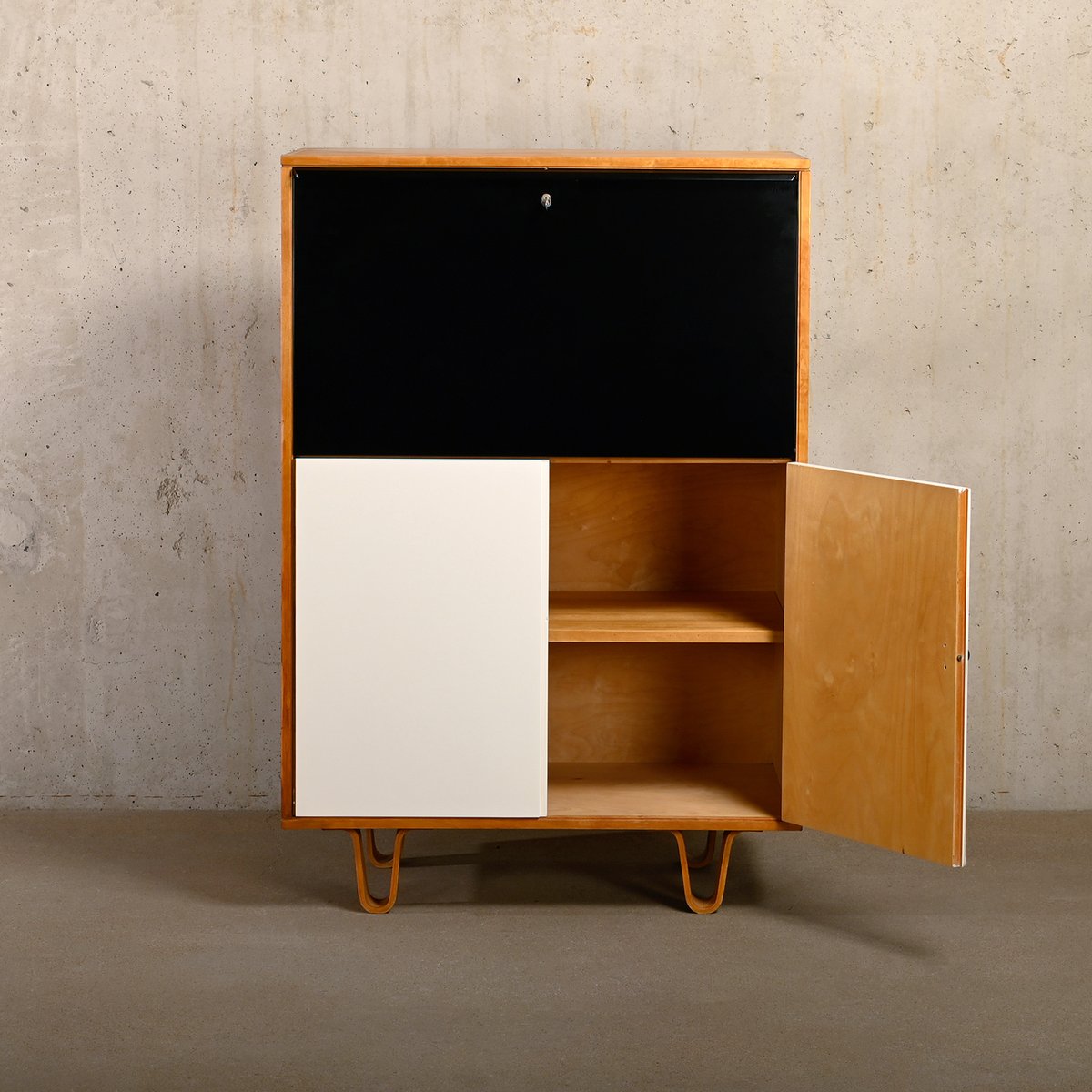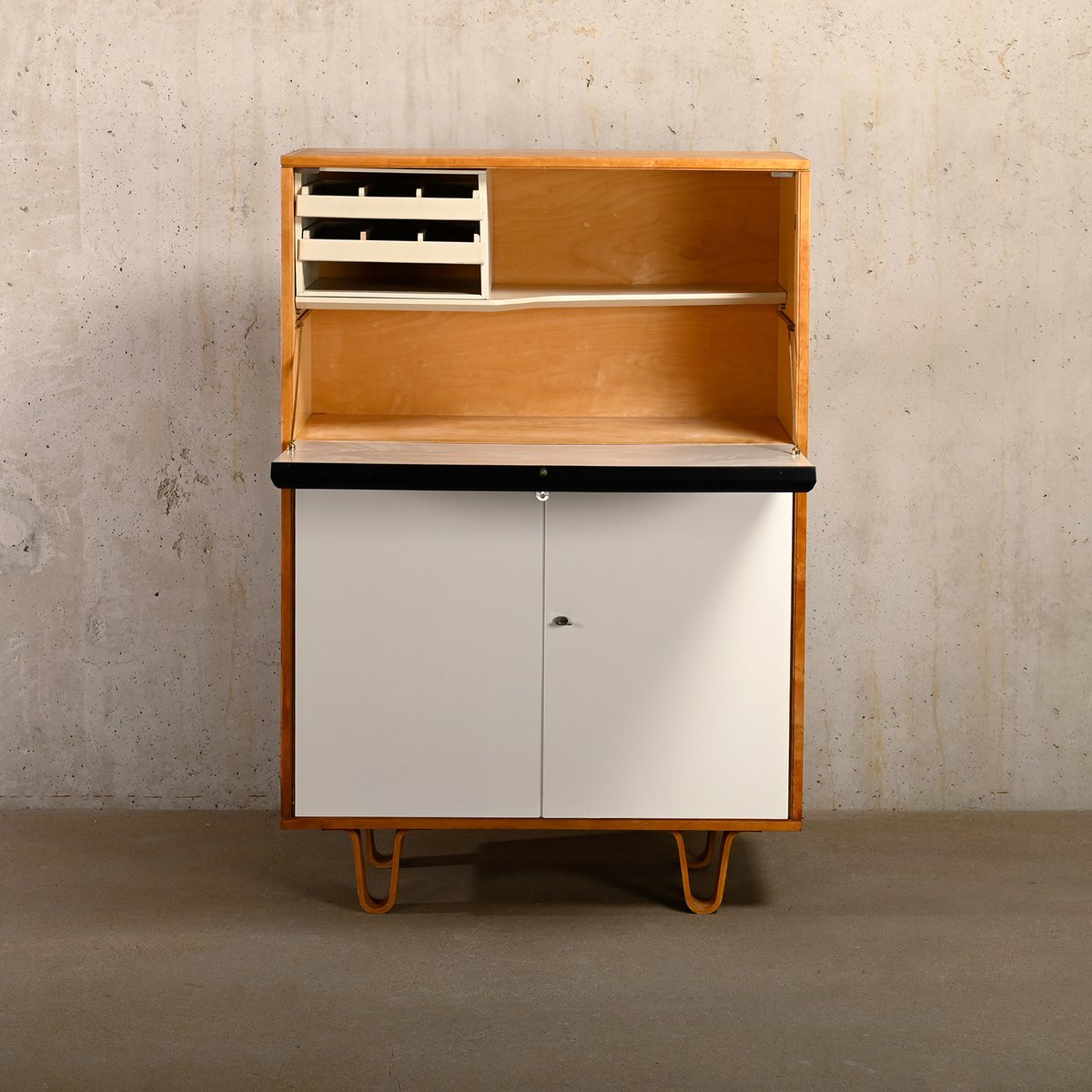 Cb07 Secretary in Birch Black / White Plywood by Cees Braakman for Pastoe, 1950s