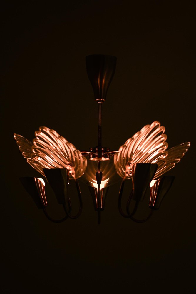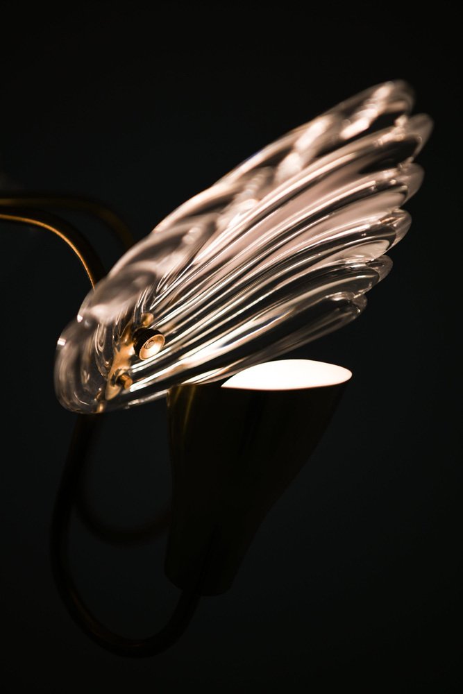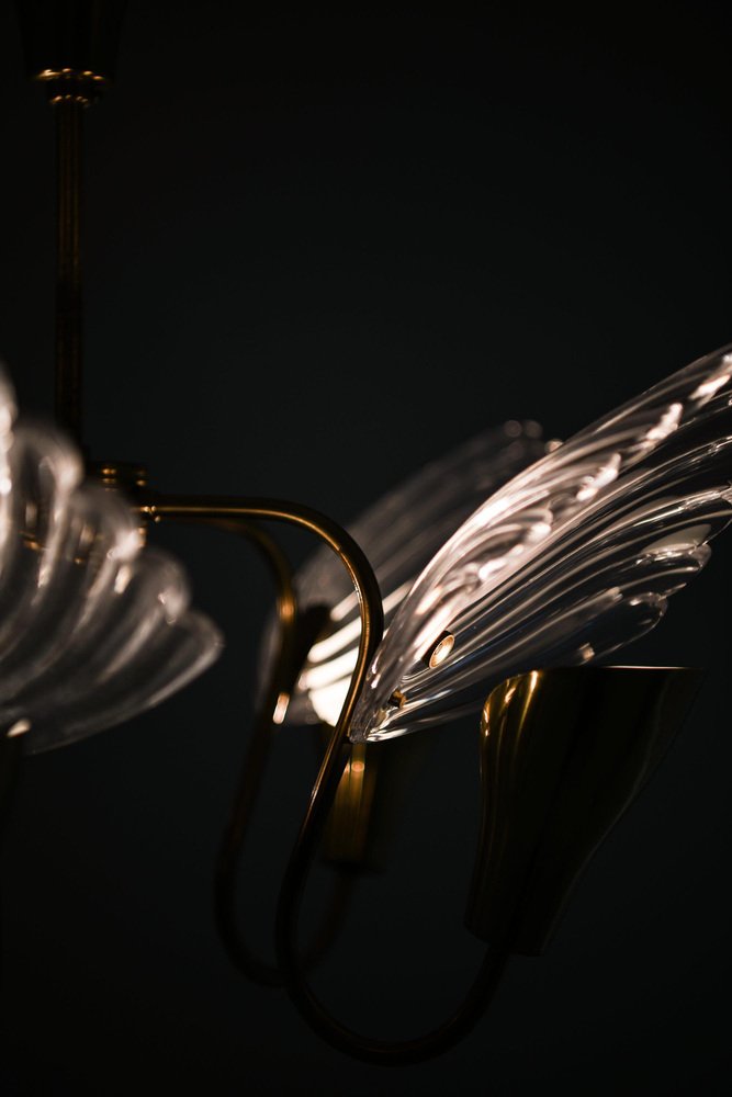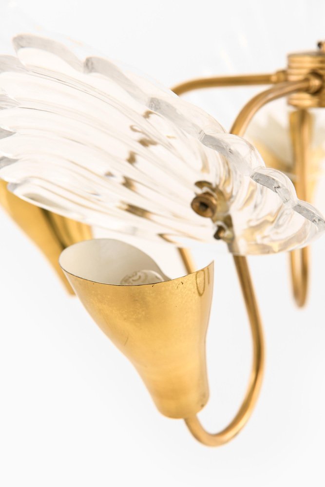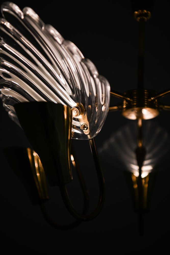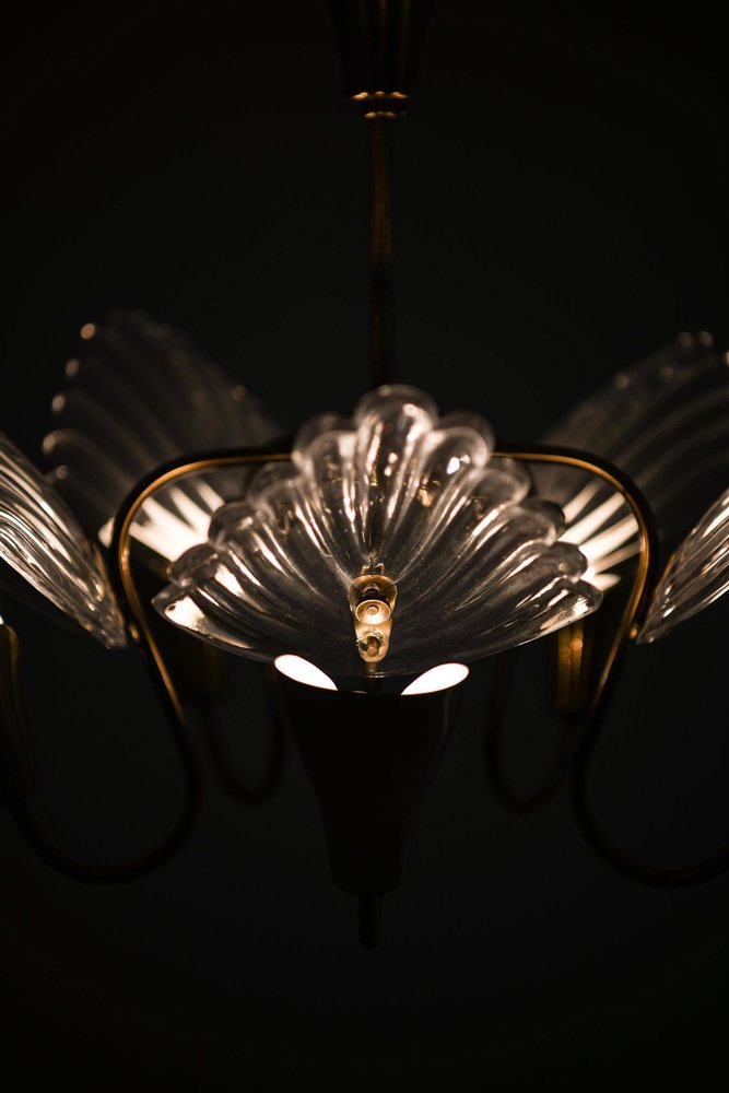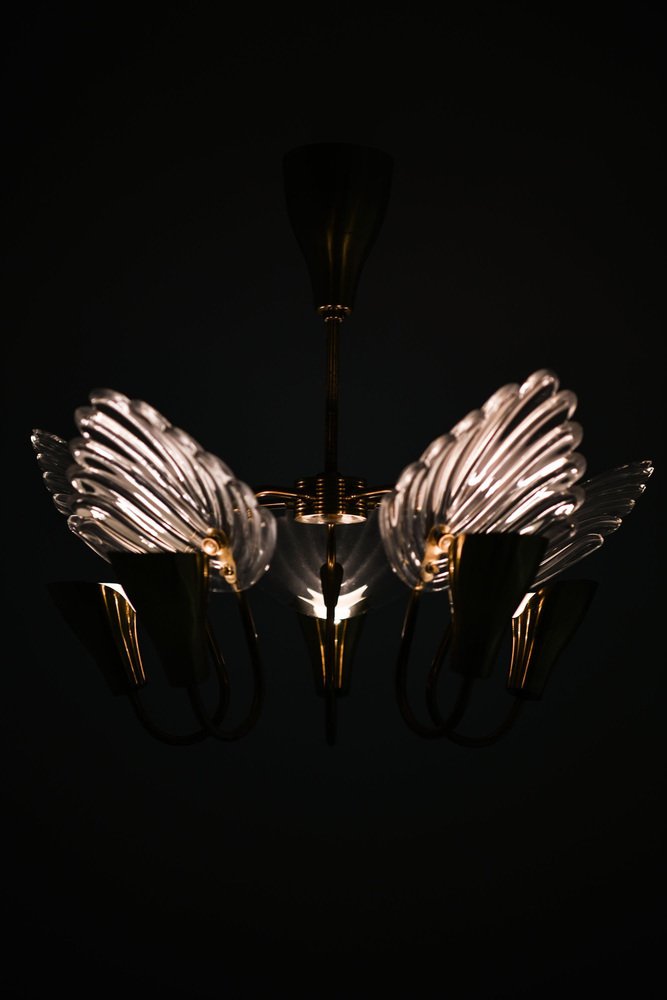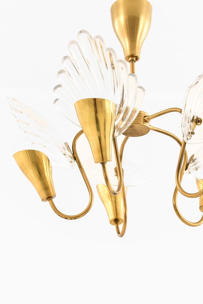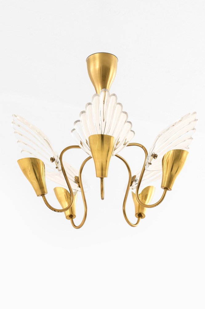 Ceiling Lamp with Five Gracefully Curved Brass Arms attributed to Carl Fagerlund, 1950s