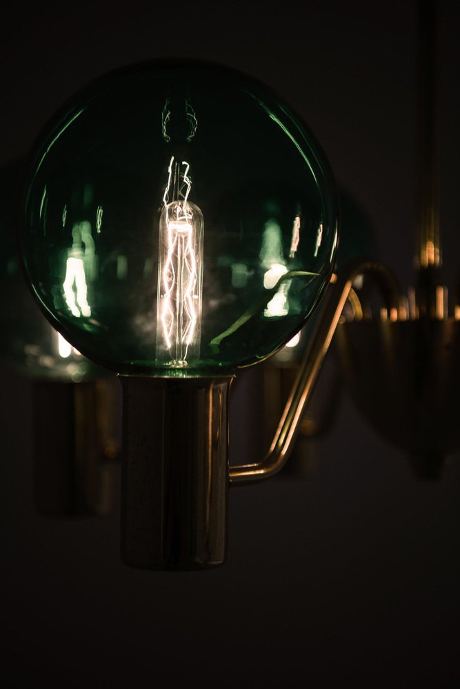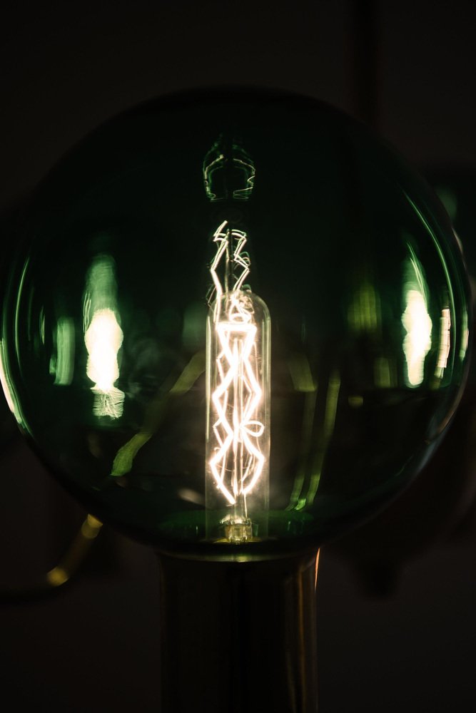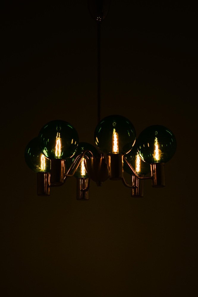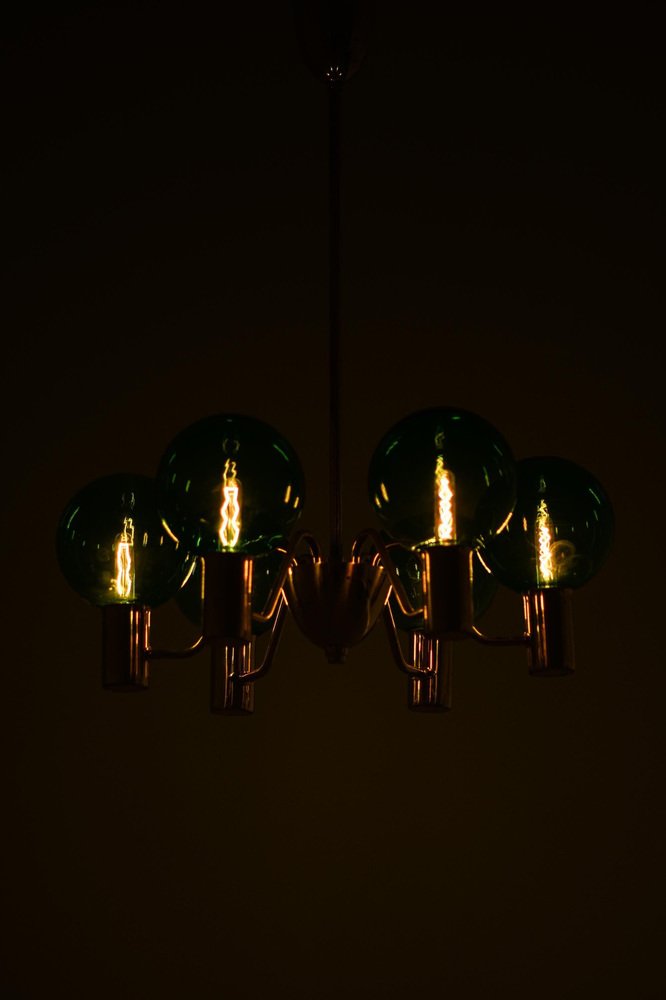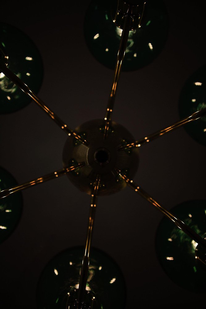 Ceiling Lamp with Hand-Blown Green Glass Globe from Hans-Agne Jakobsson, 1960s