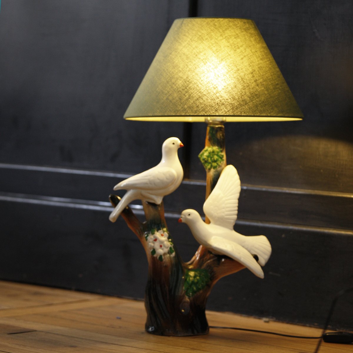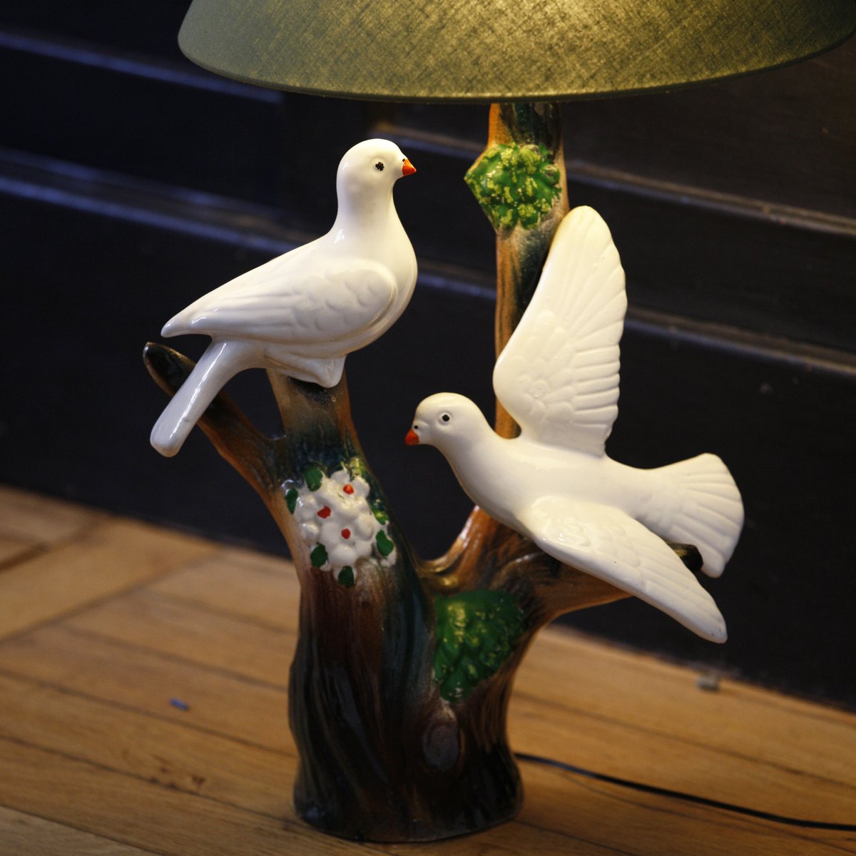 Ceramic Bottle Lamp with 2 Doves on a Panel