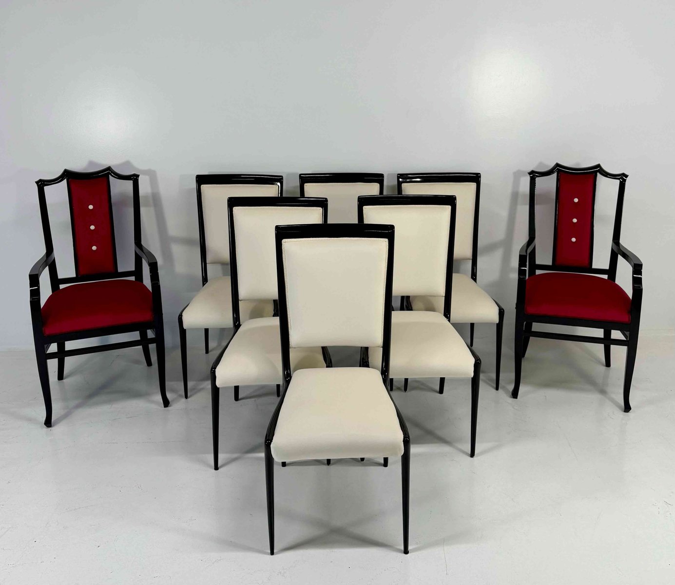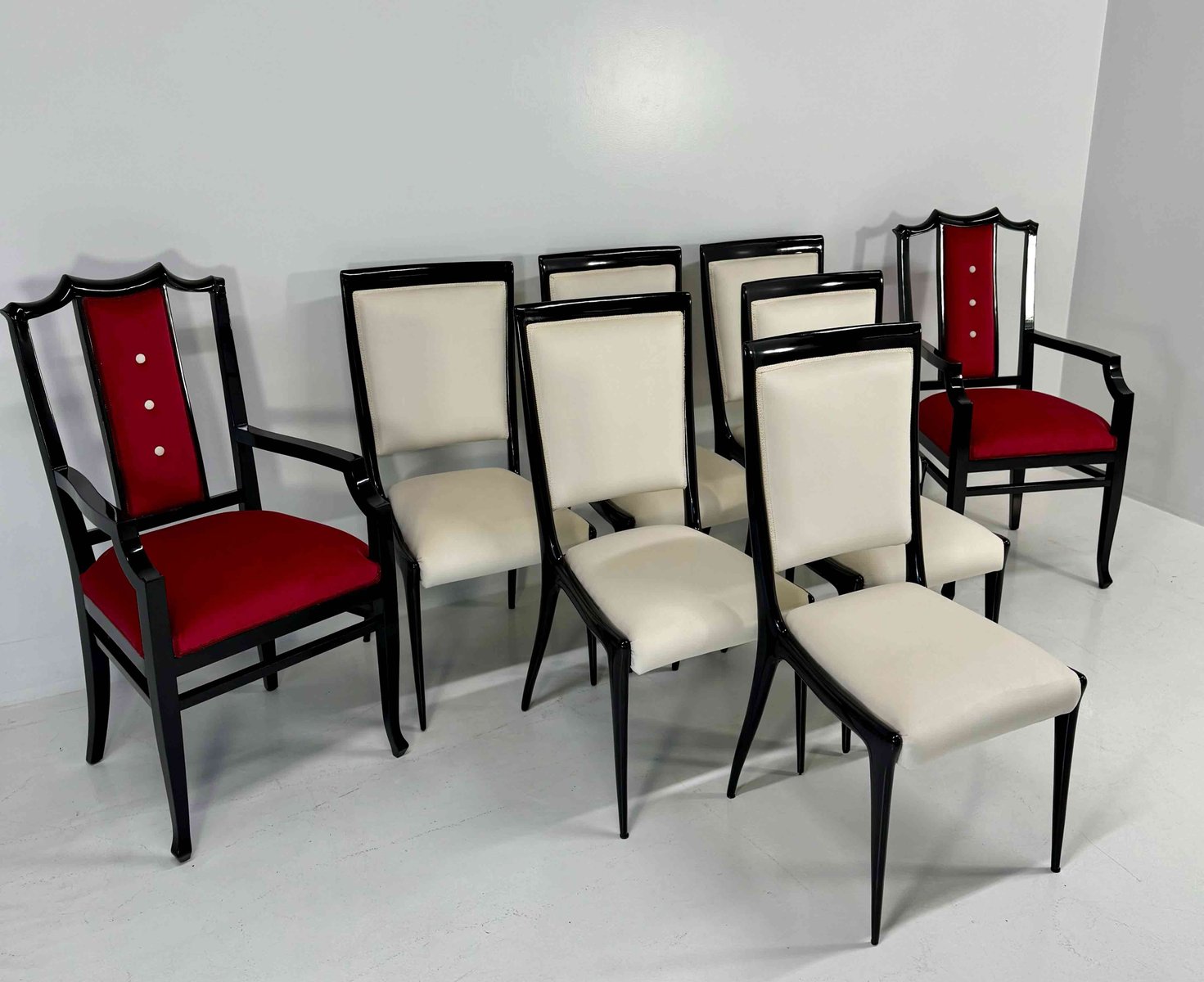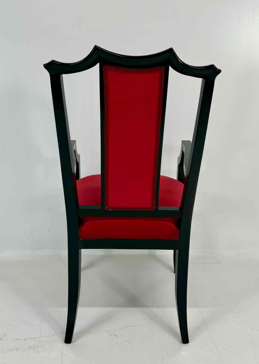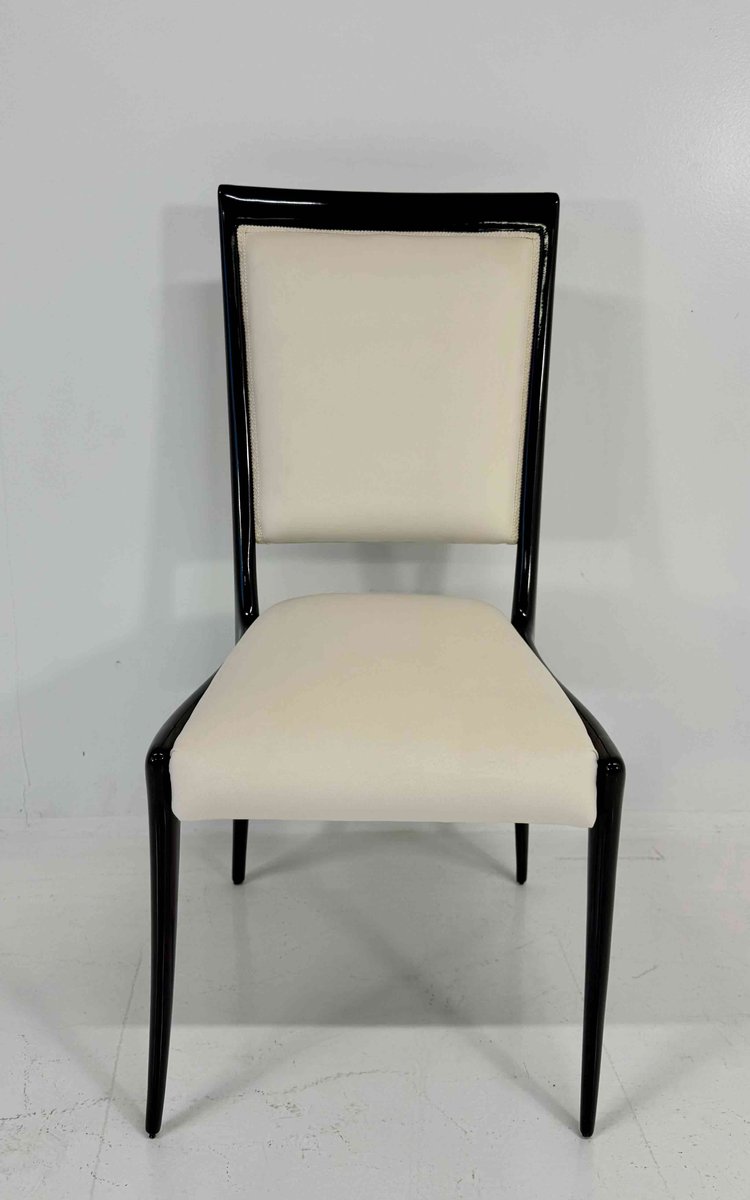 Chairs in Black Lacquered Wood and Velvet by Vittorio Dassi, 1950s, Set of 8