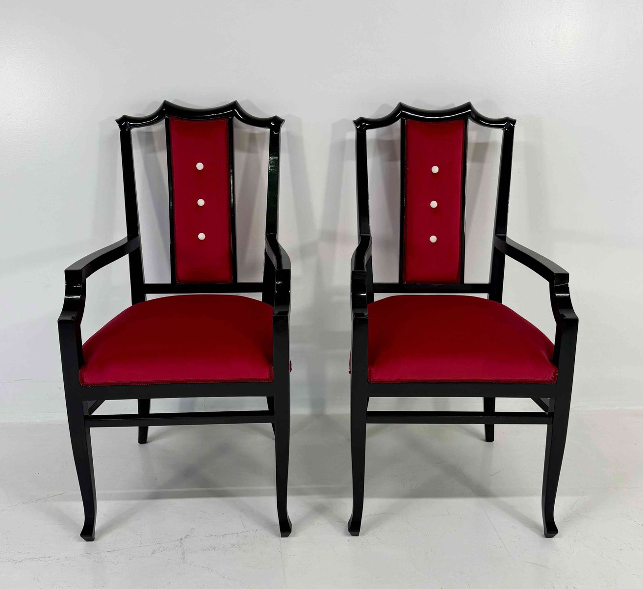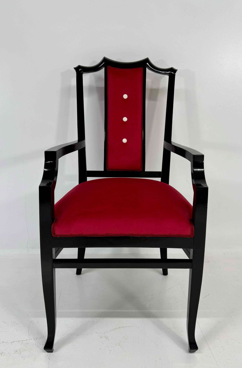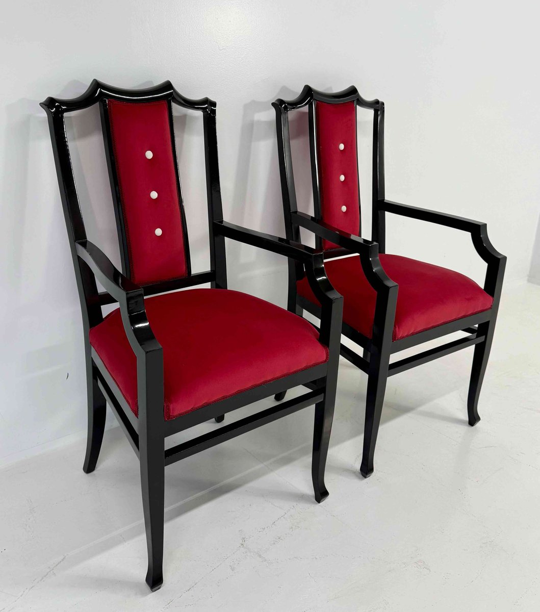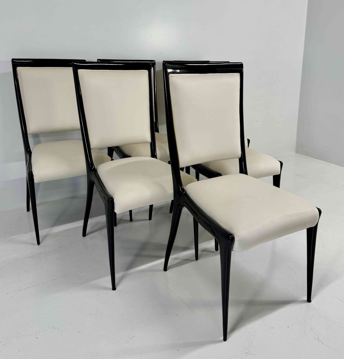 Chairs in Black Lacquered Wood and Velvet by Vittorio Dassi, 1950s, Set of 8