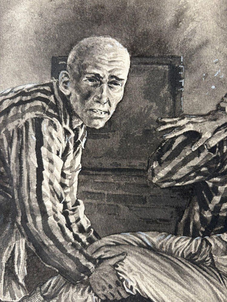 Charles Burki, Holocaust Prison Camp Scene, Gouache
