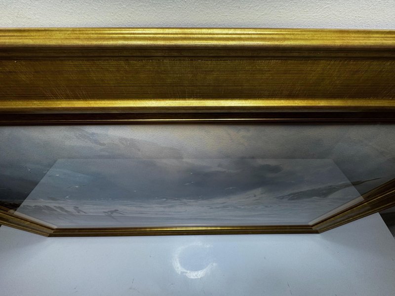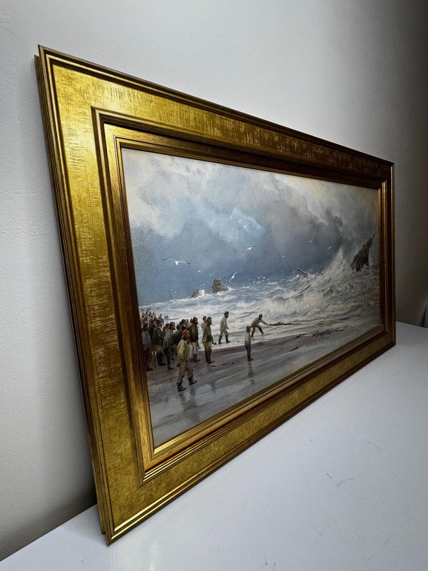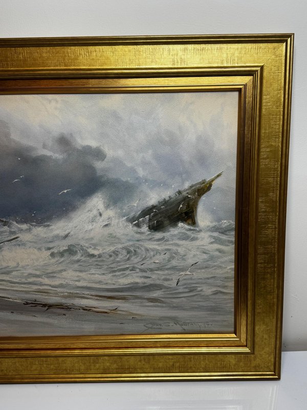 HMS Franklin Mine Sweeper Ship, the Pentlands WWII Convoy Duty, North Sea, 1980s, Oil Painting, Framed