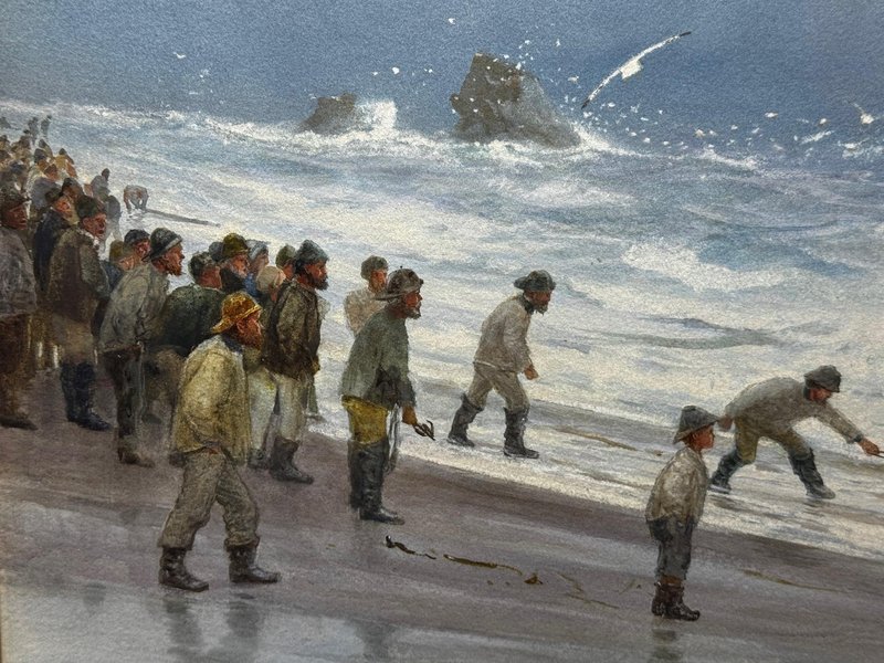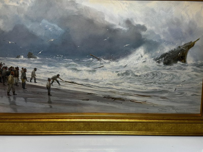 Eric Tuffnell, Painting of Naval Battle Sinking of Battleship Yamato April 1945, 1960s, Watercolor, Framed