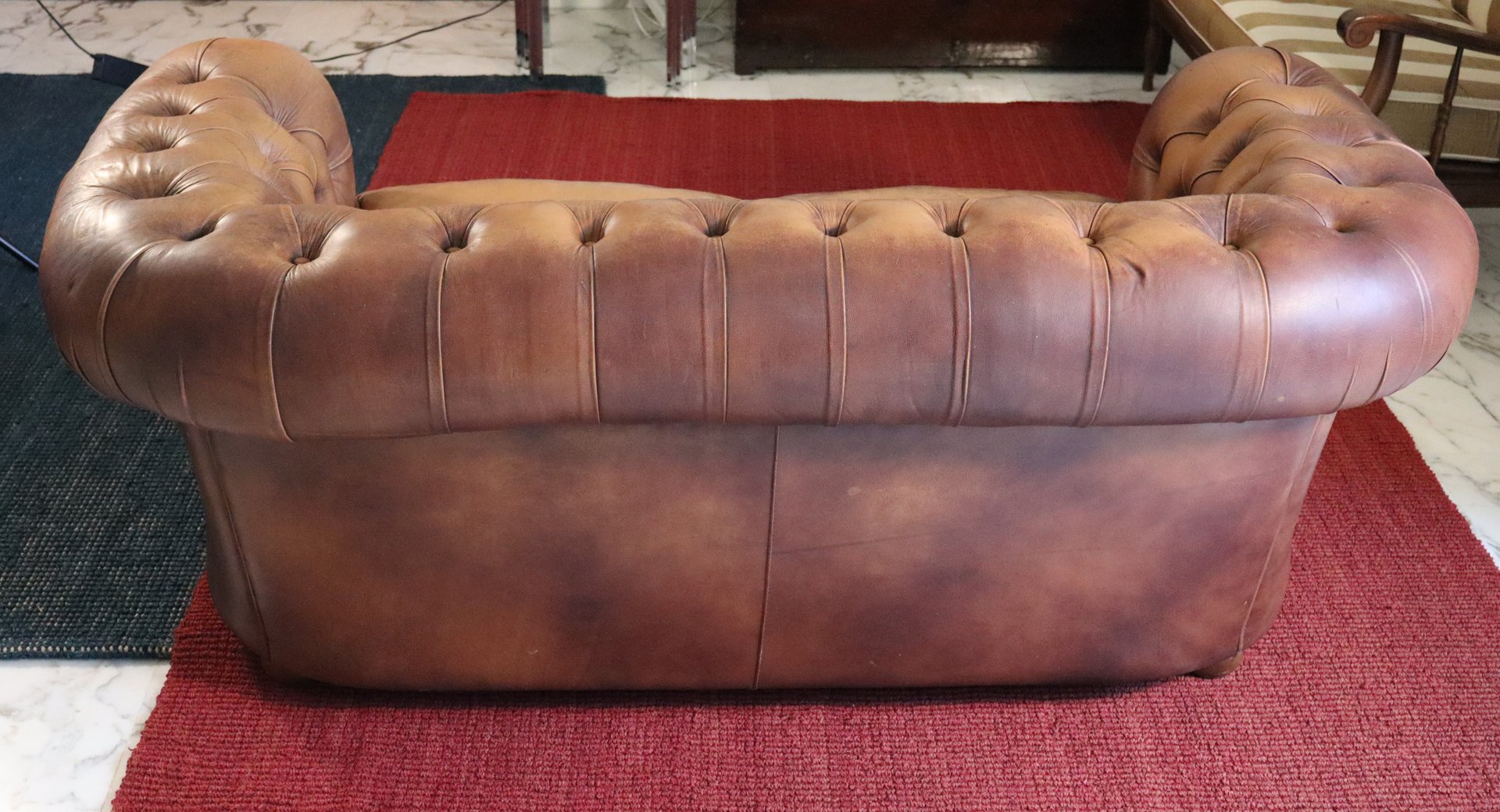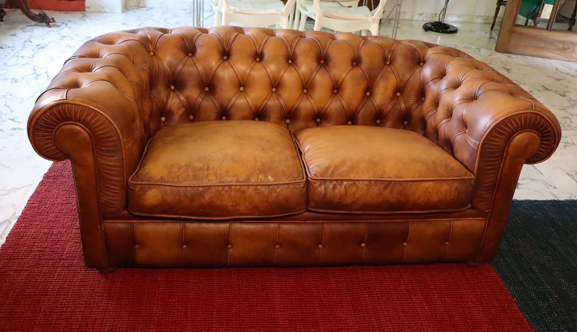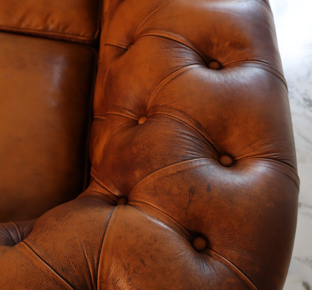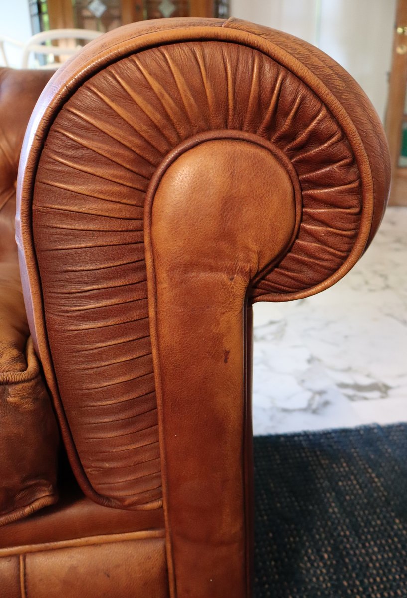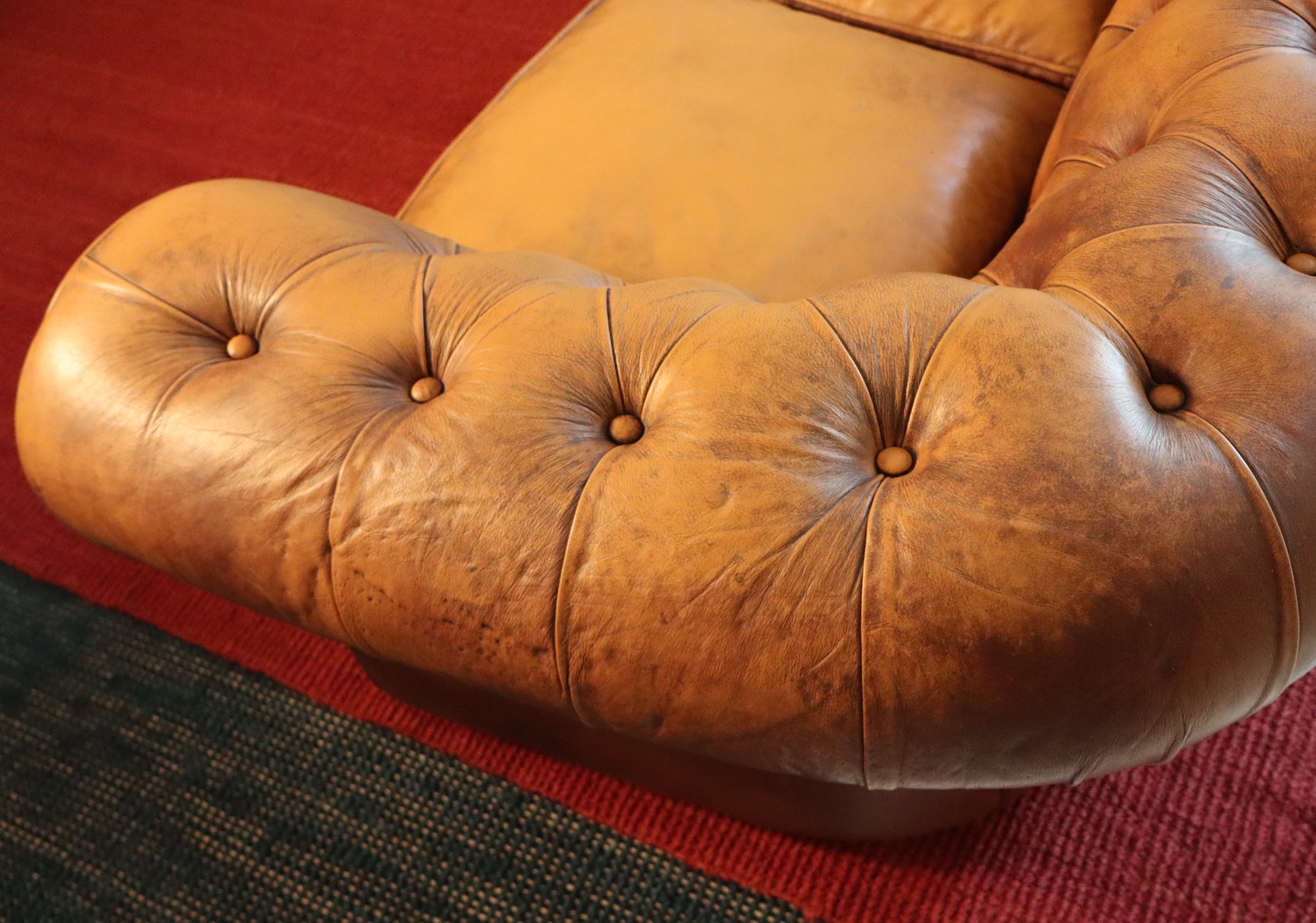 Chesterfield Sofa in Whisky-Coloured Leather and Wood, 1960s