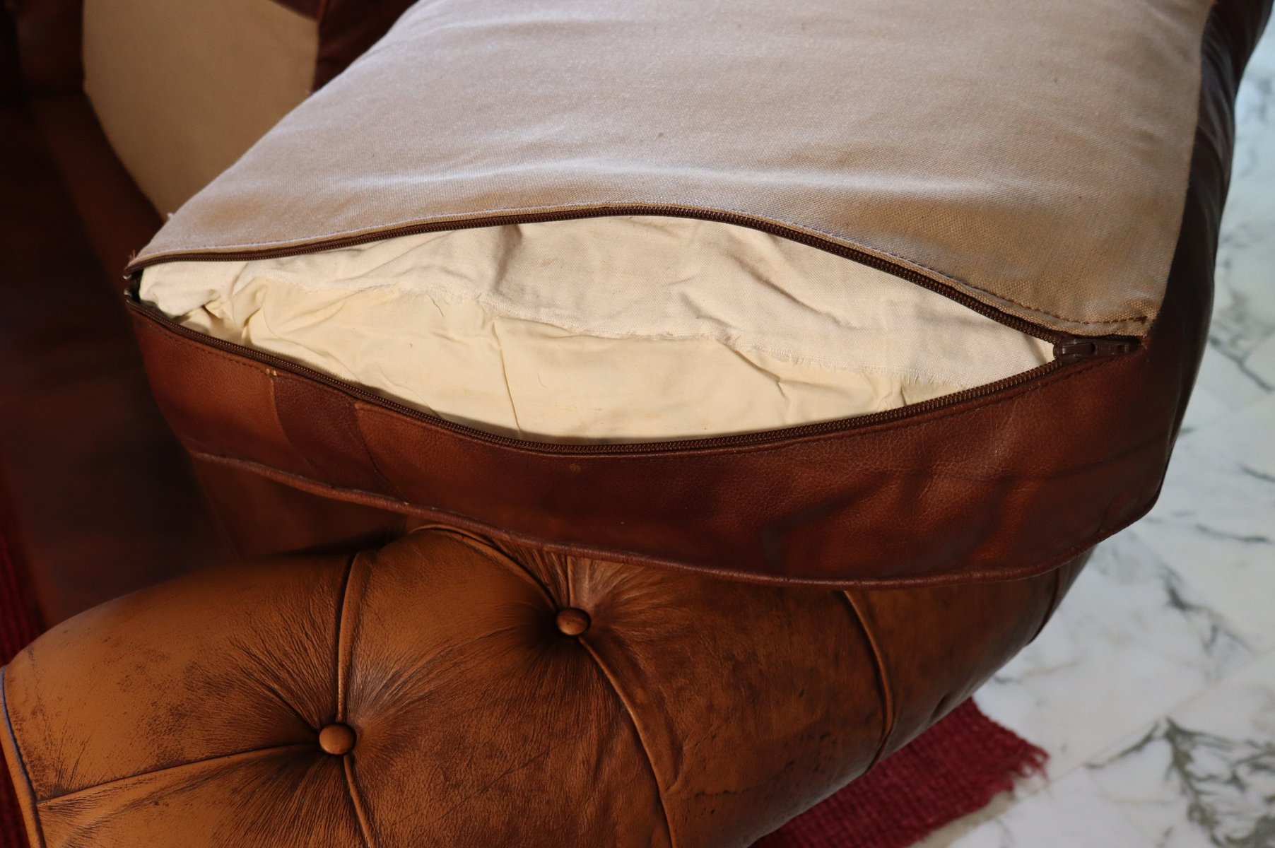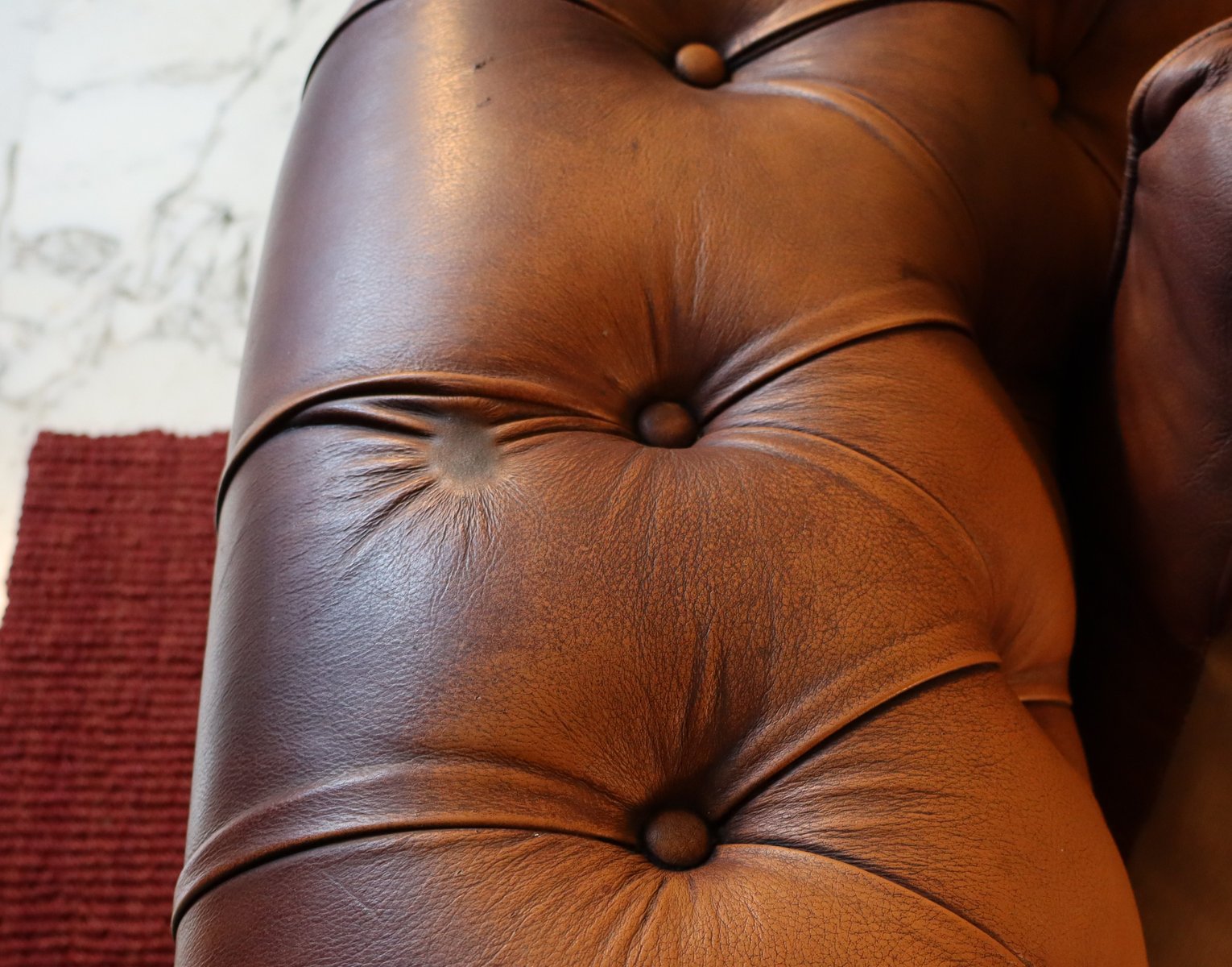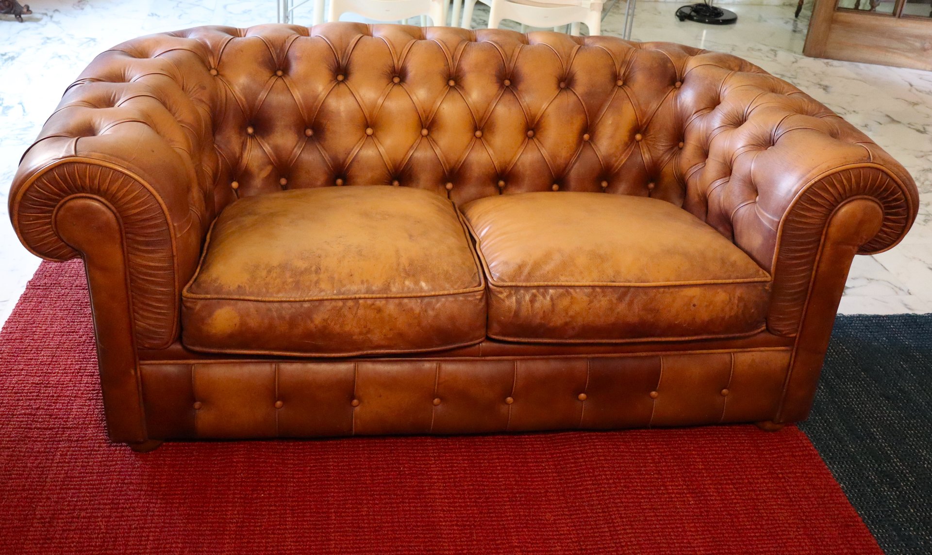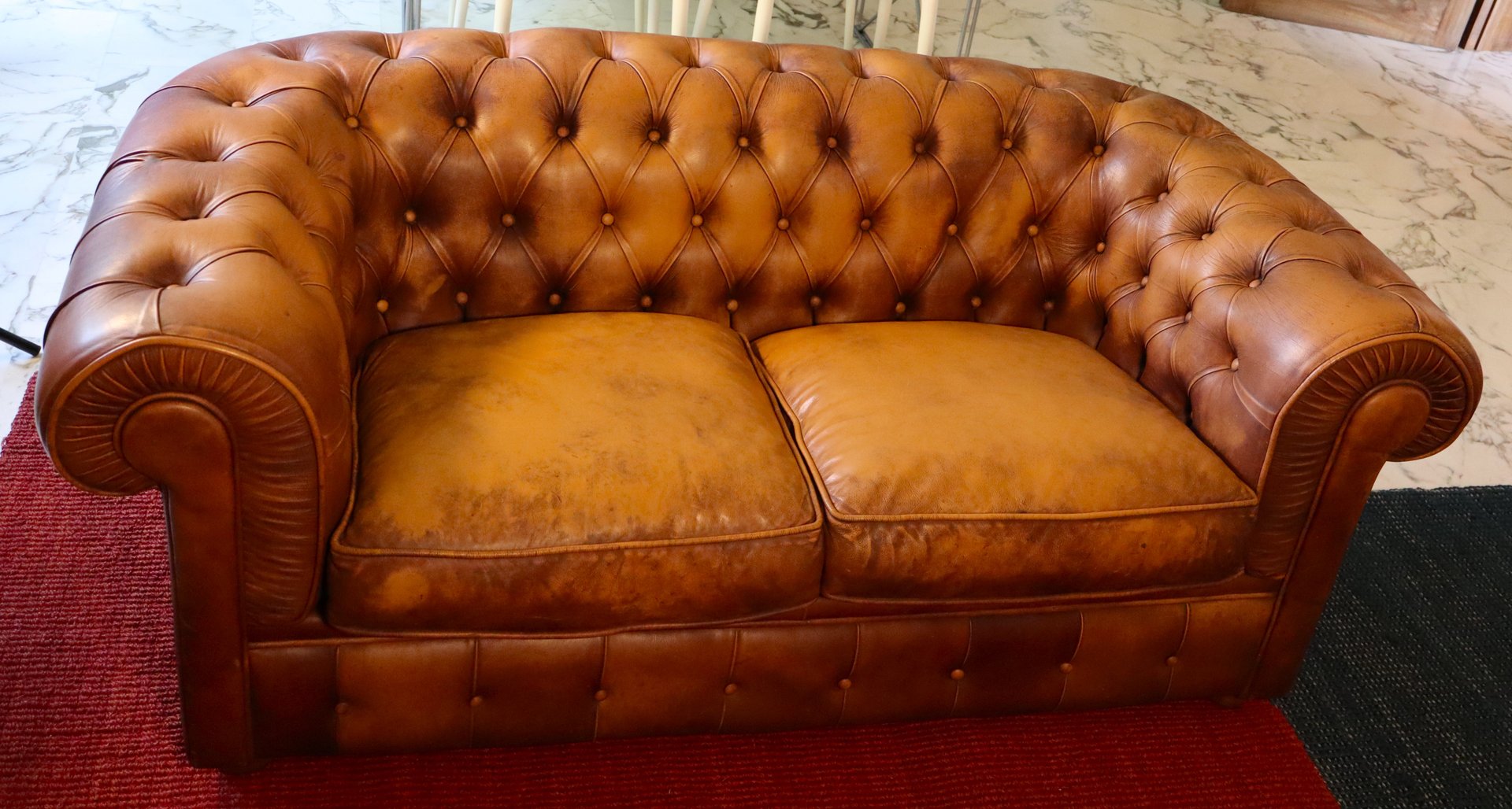 Chesterfield Sofa in Whisky-Coloured Leather and Wood, 1960s