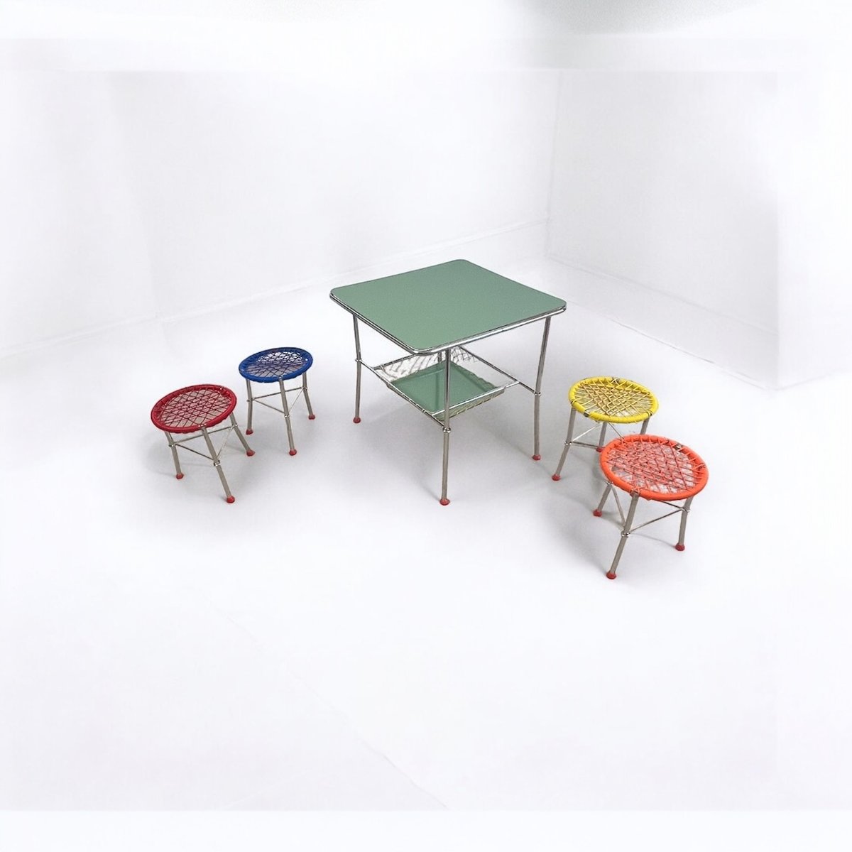Children's Table with Colourful Folding Chairs, 1960s, Set of 5