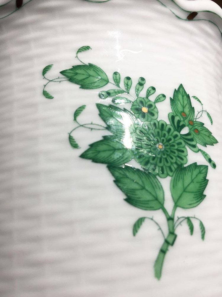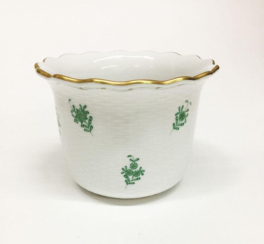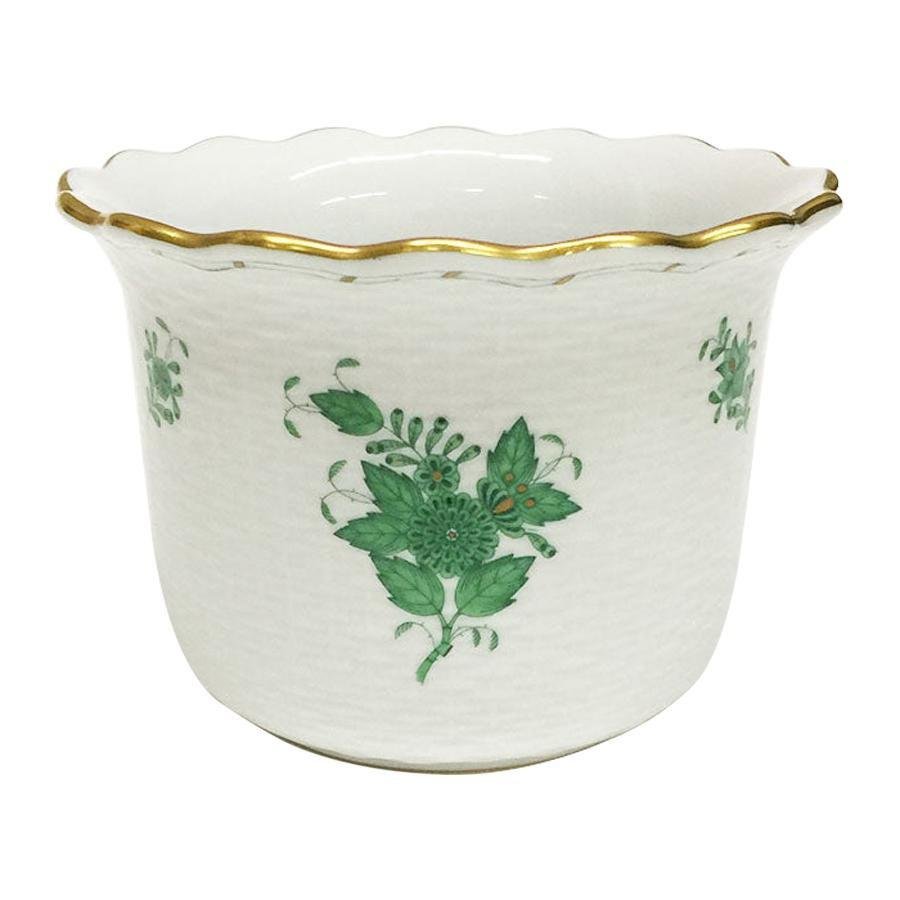 Chinese Bouquet Apponyi Green Porcelain Cachepot from Herend
