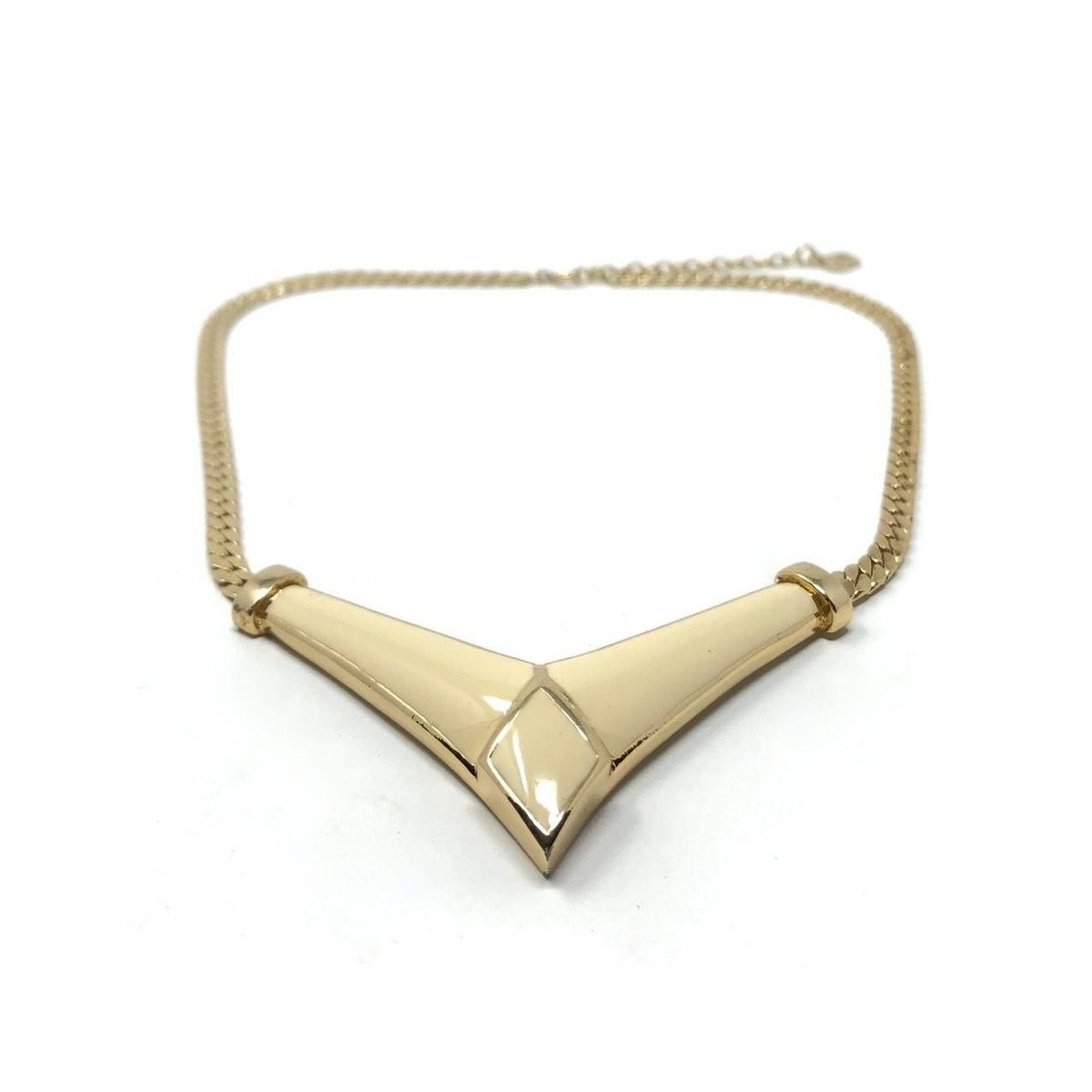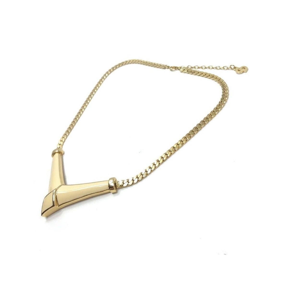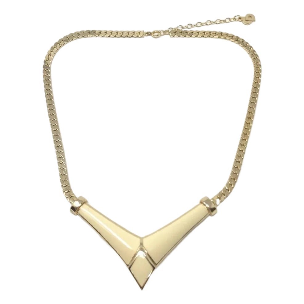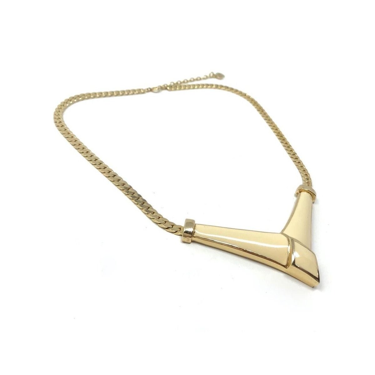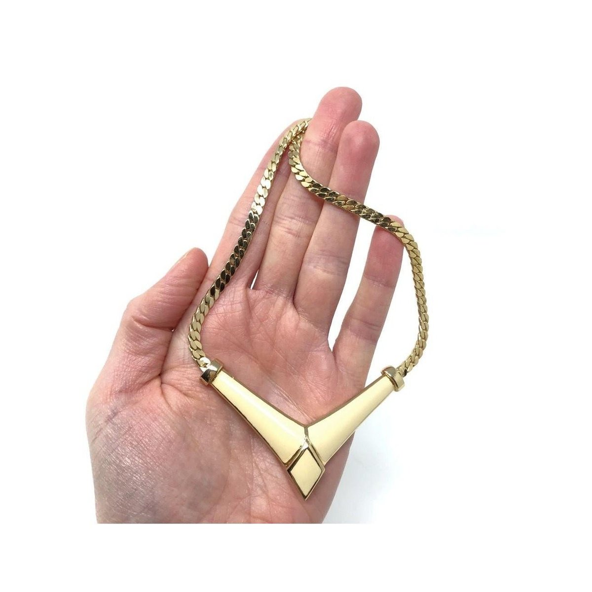 Christian Dior 1970s Gold Plate and Enamel Chevron Design Vintage Necklace