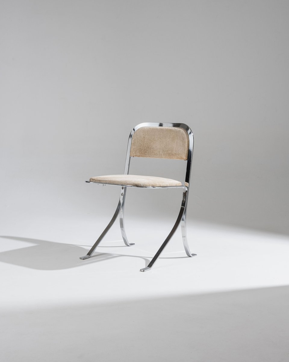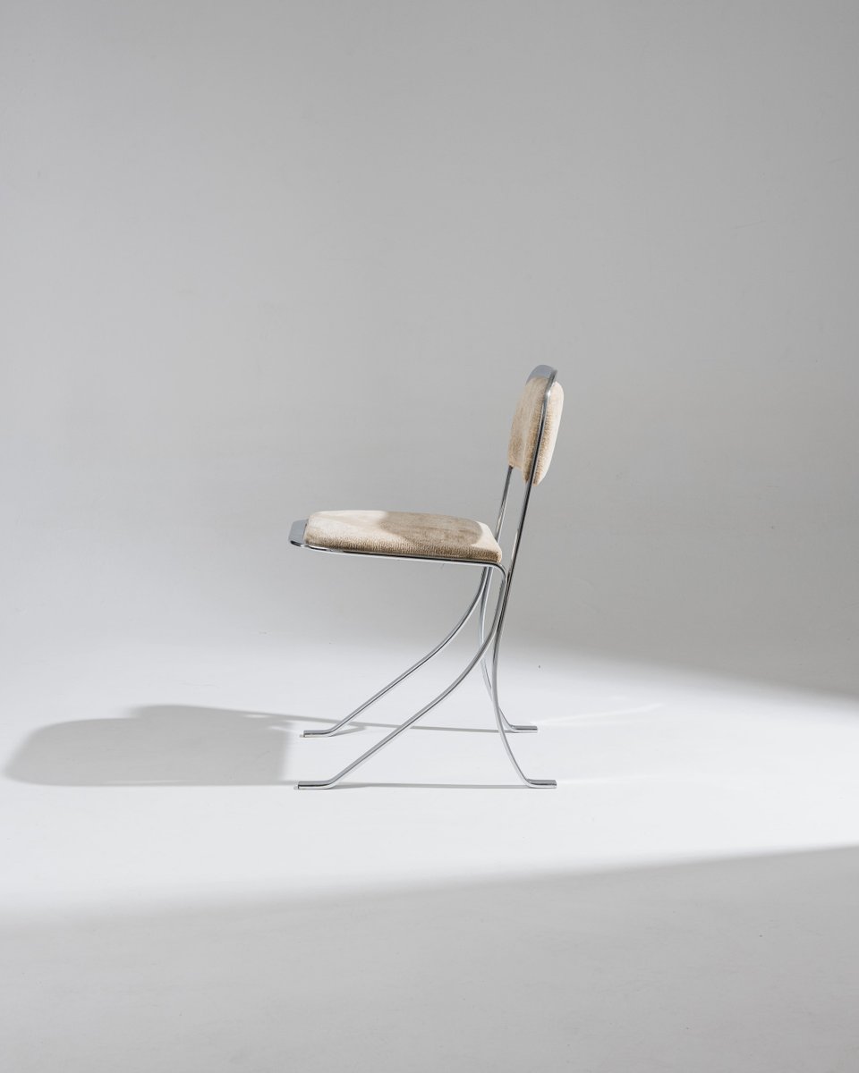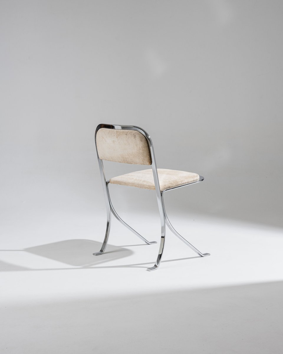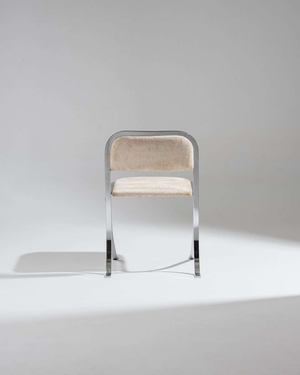 Chrome-Plated Metal and Velvet Chair, 1970s