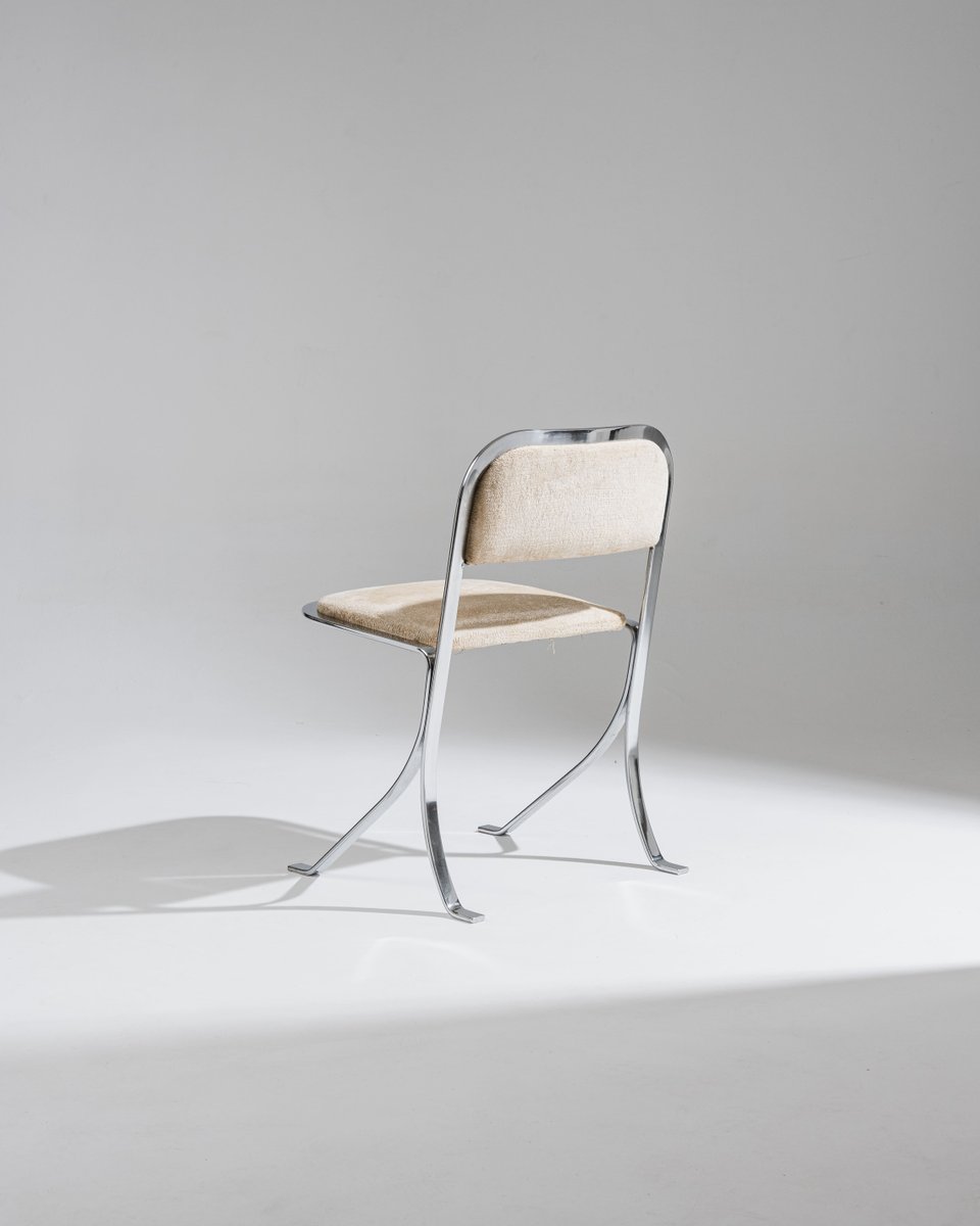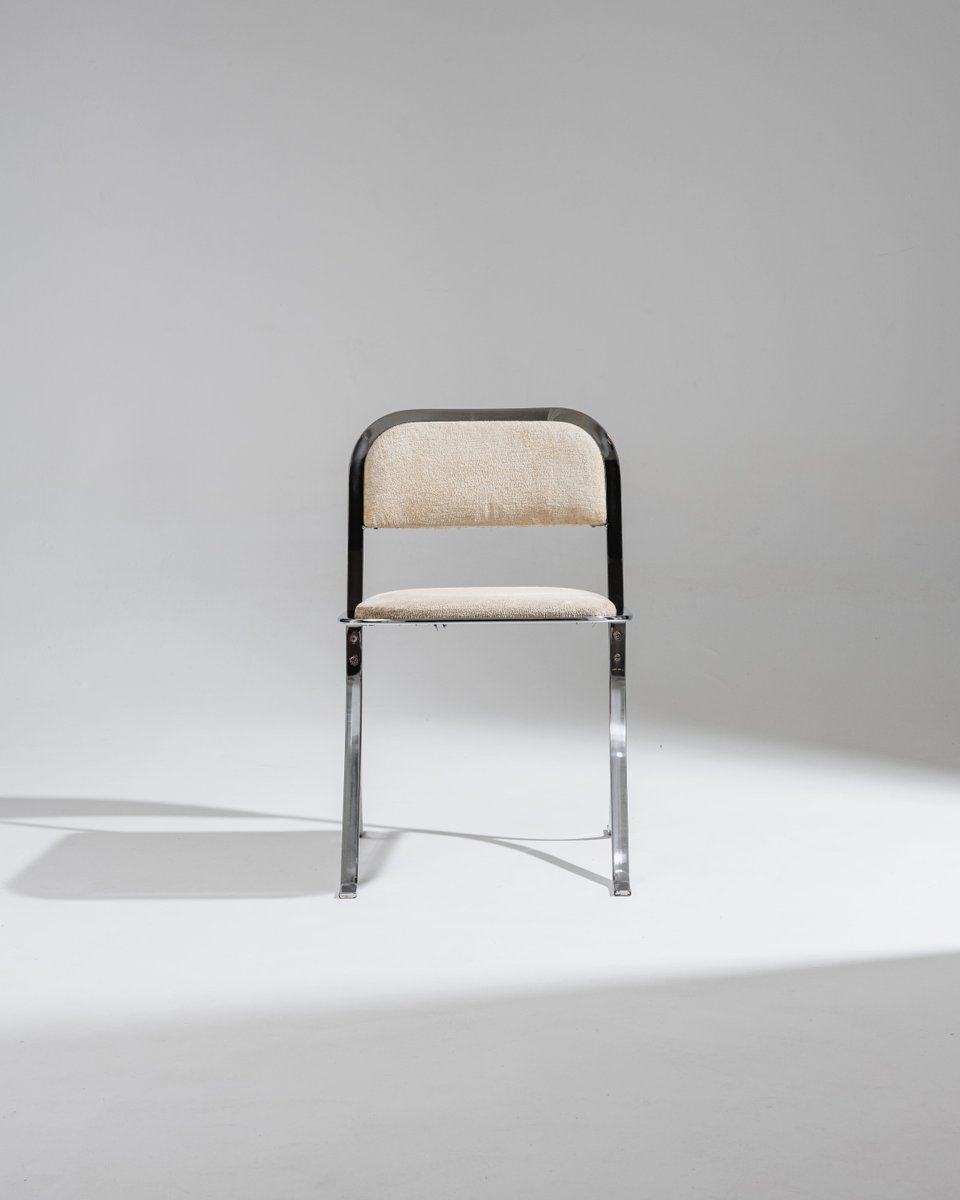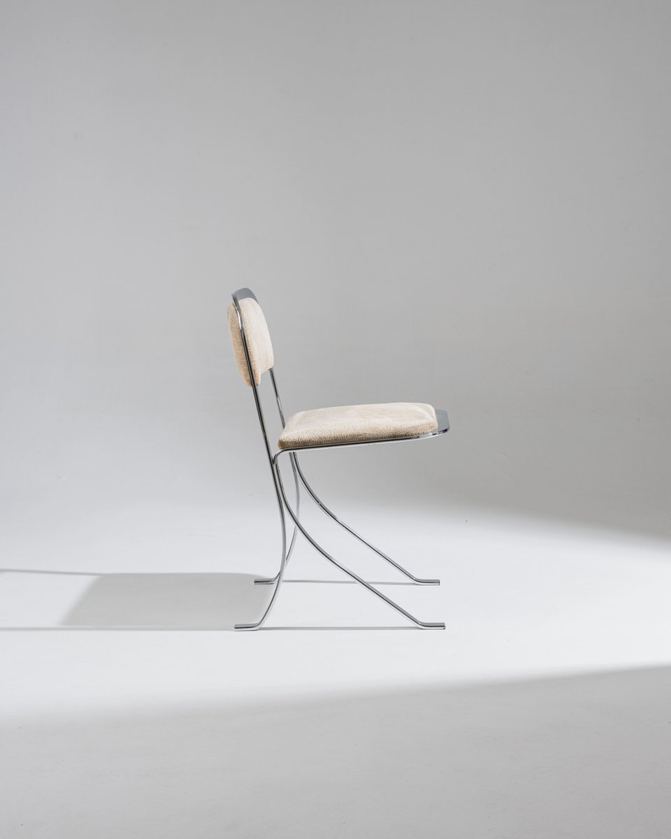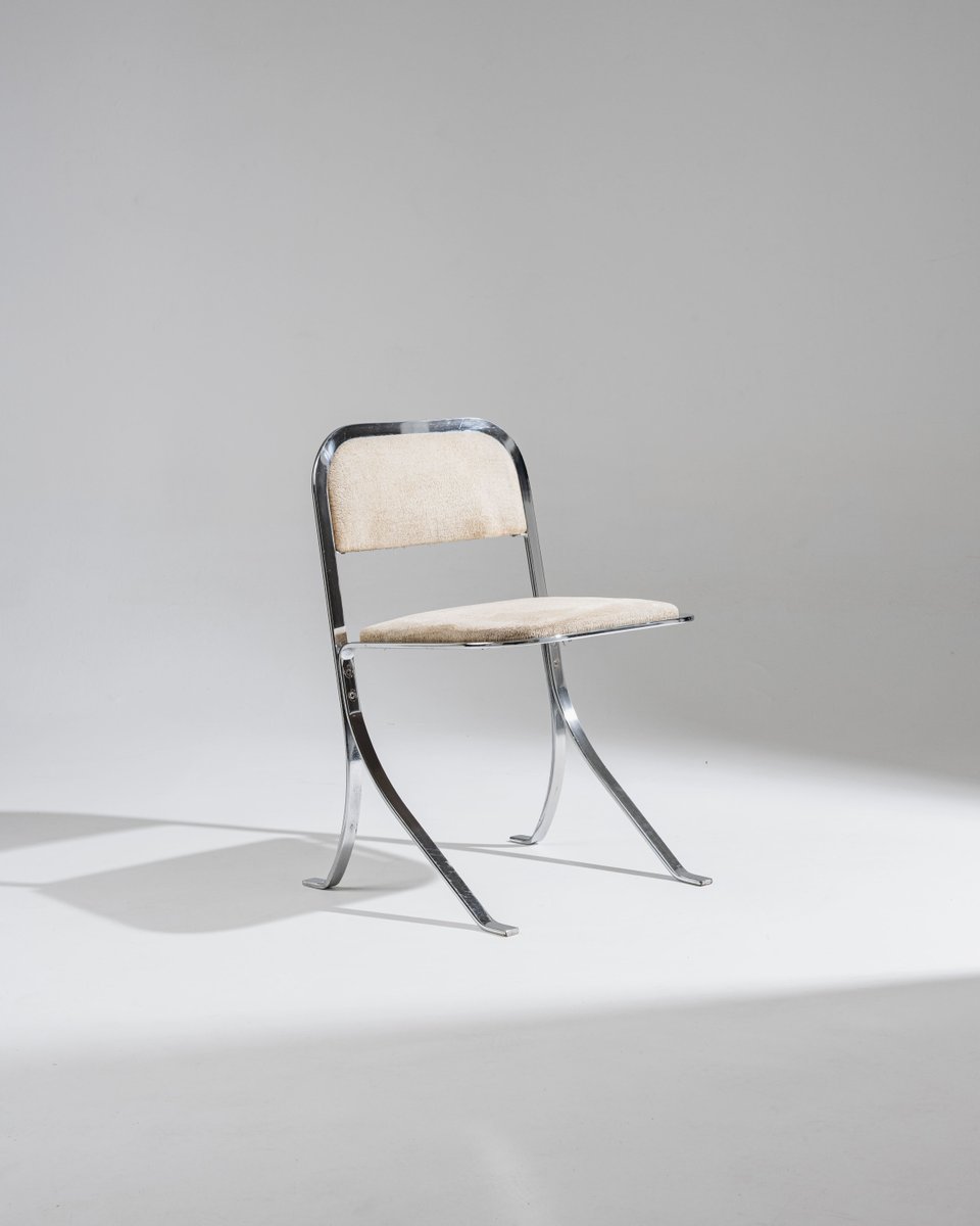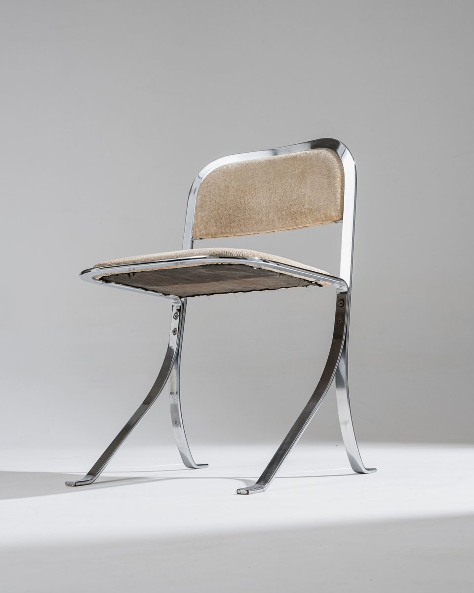 Chrome-Plated Metal and Velvet Chair, 1970s