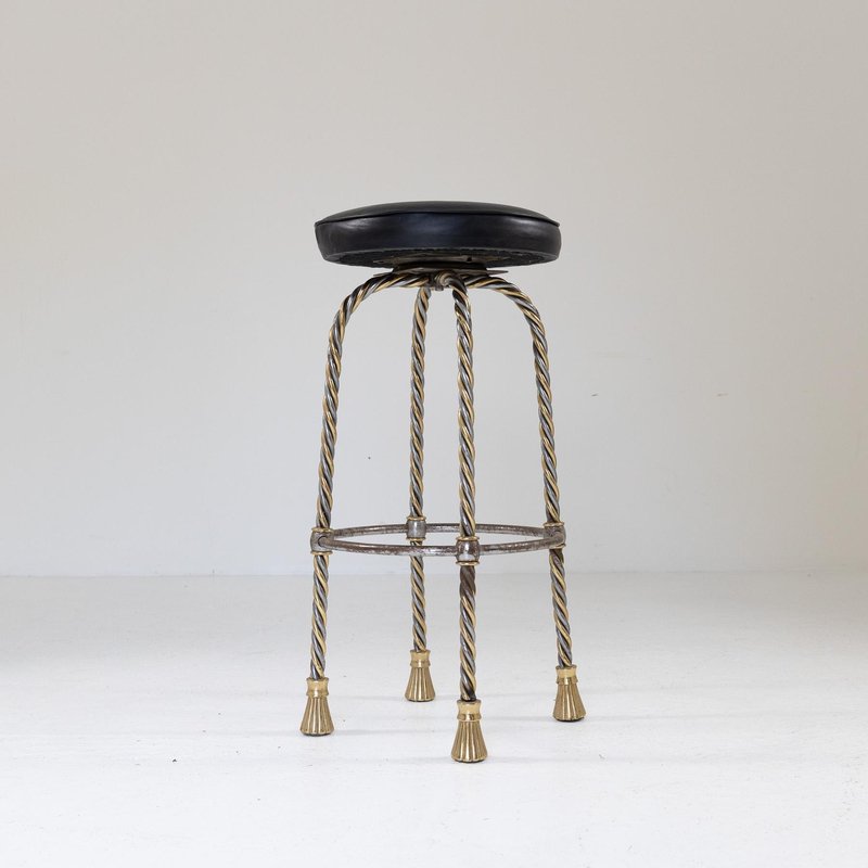 Chromed and Gilded Metal Stool, 1970s