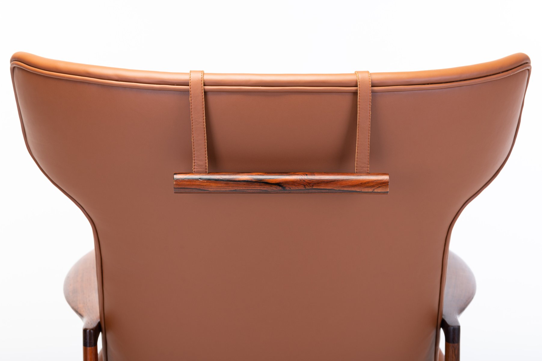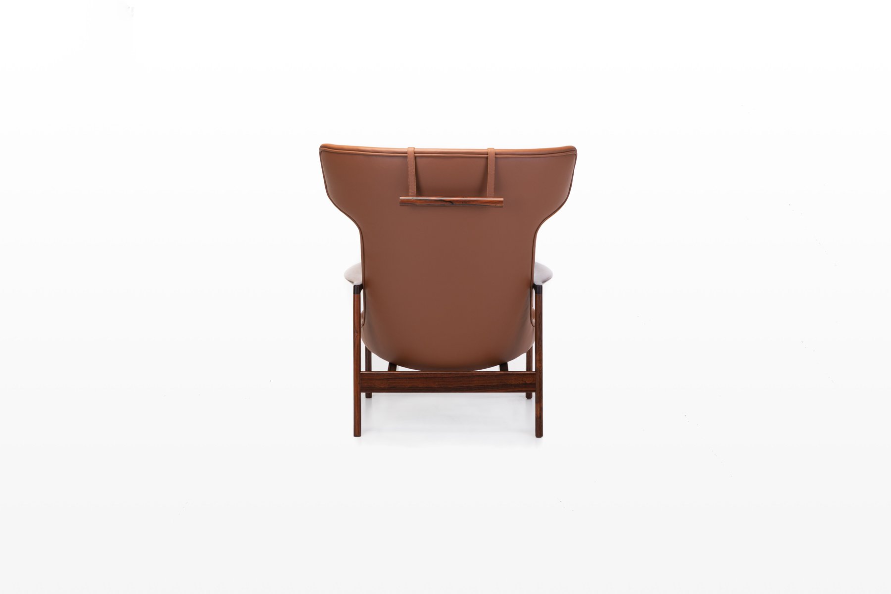 Cognac Leather & Rosewood Wingback Lounge Chair by Ib Kofod Larsen for Fröscher, 1970s