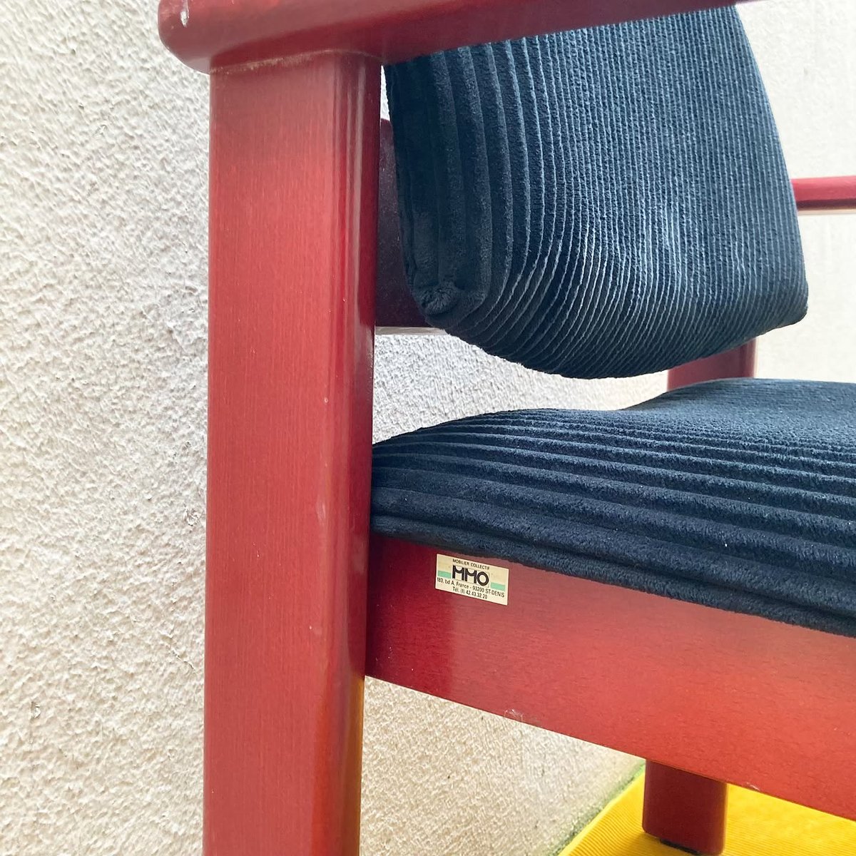 Collective Armchair in Red Patinated Wood and Black Corduroy from MMO Mobilier