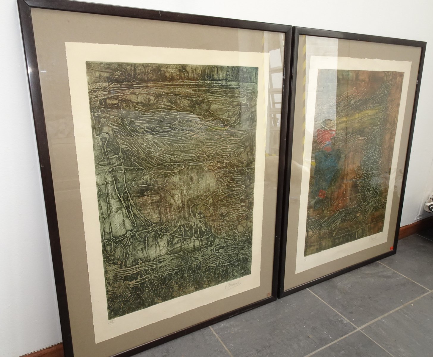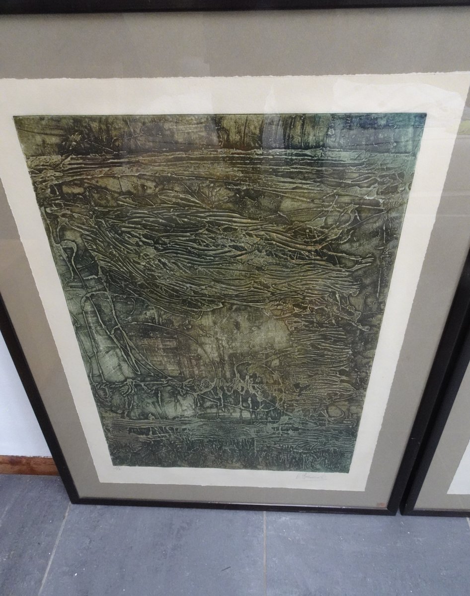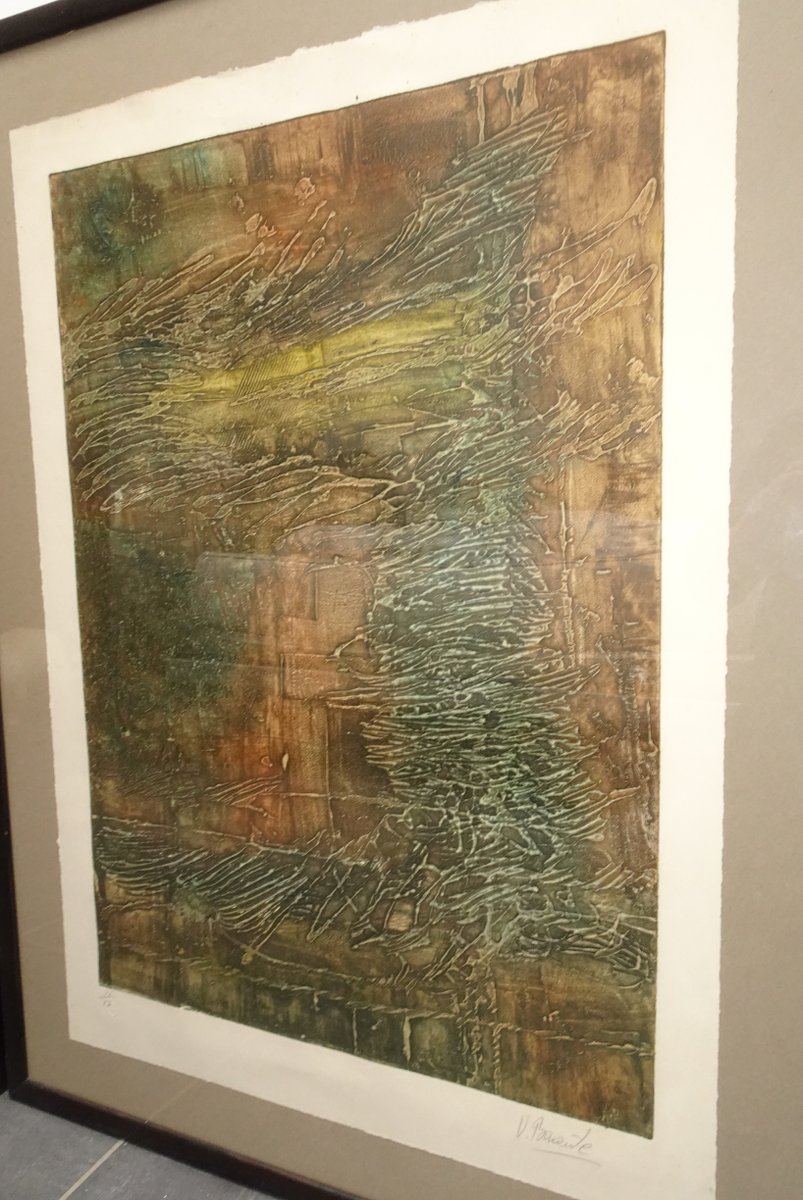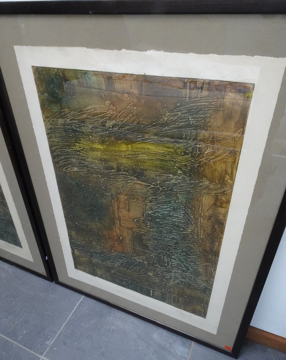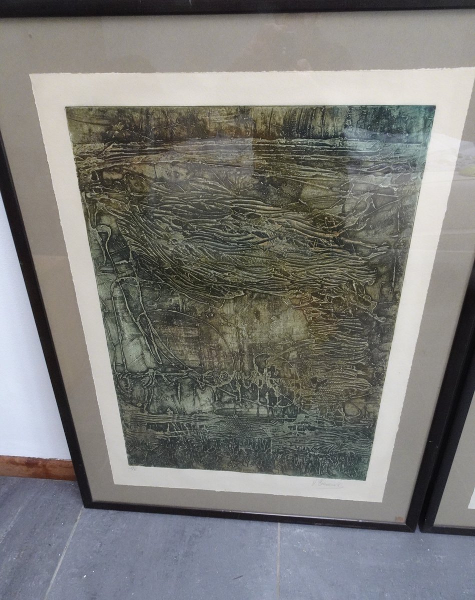 Compositions, 1970s, Large Aquatint Etchings, Framed, Set of 2