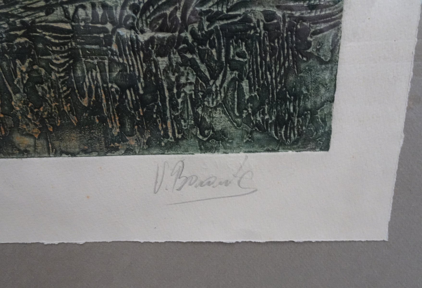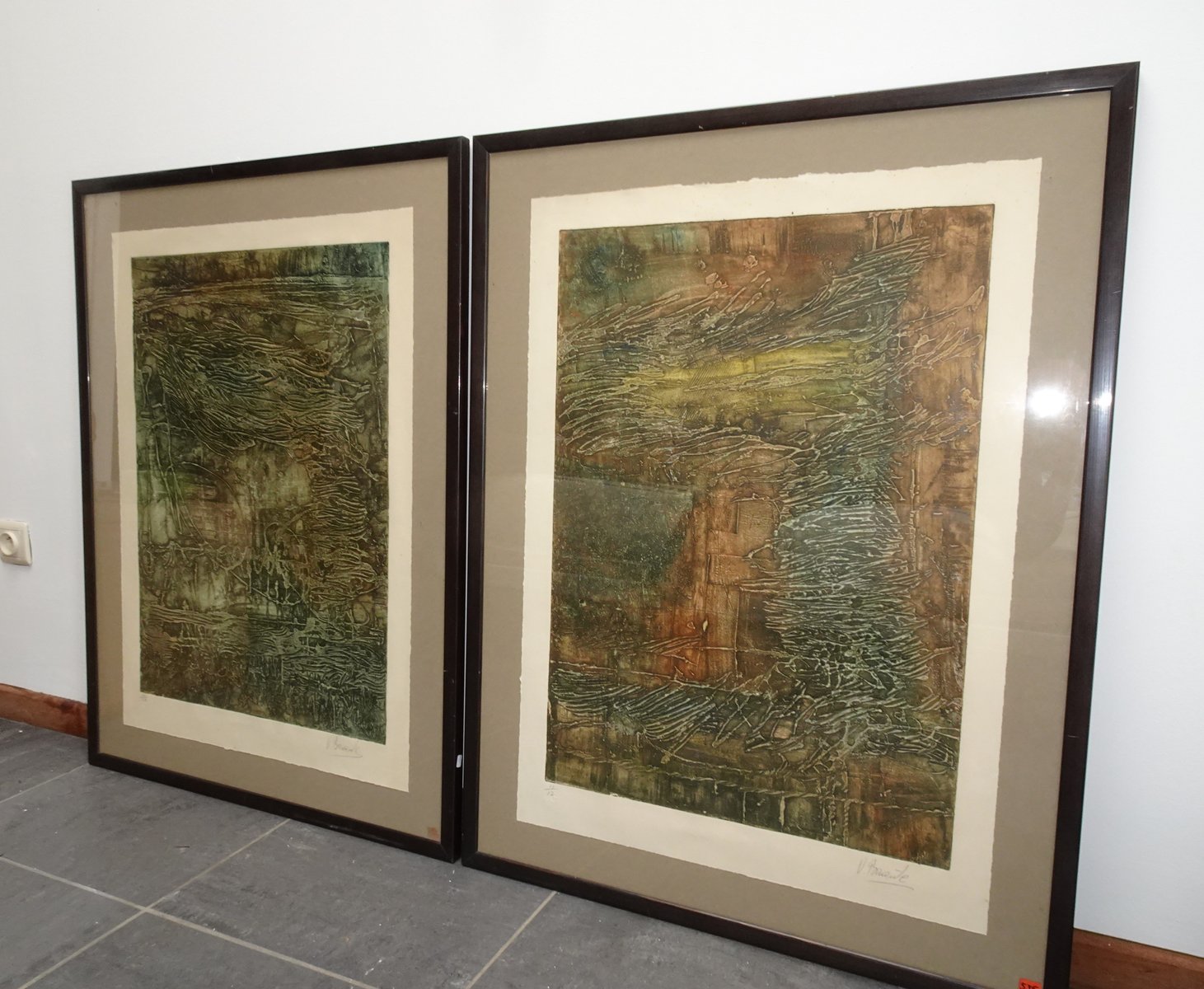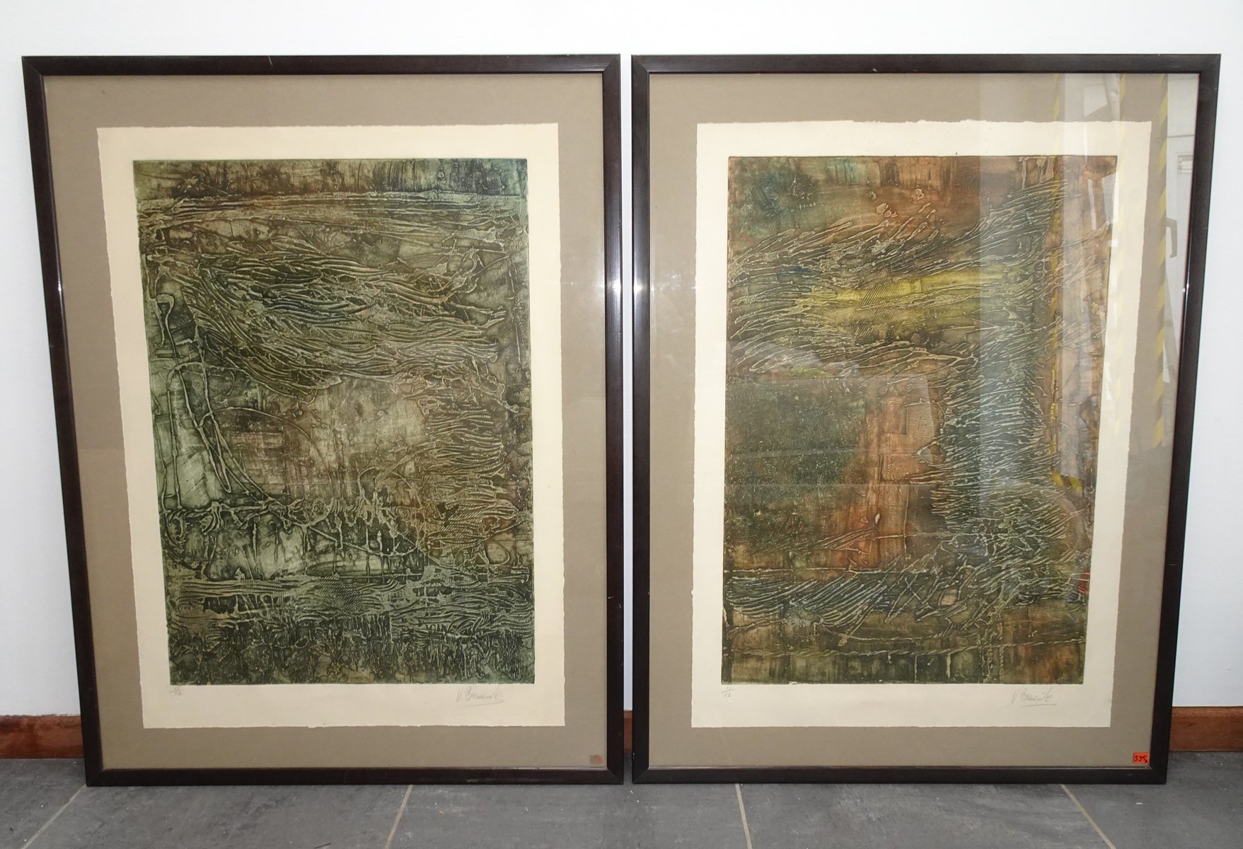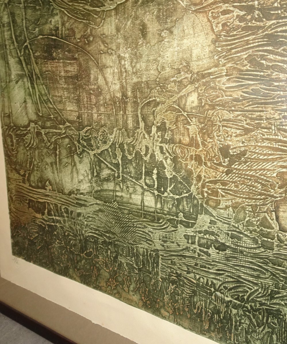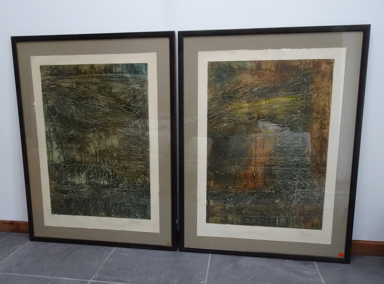 Compositions, 1970s, Large Aquatint Etchings, Framed, Set of 2