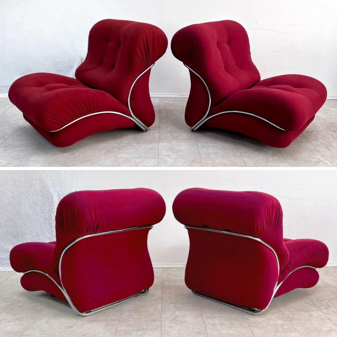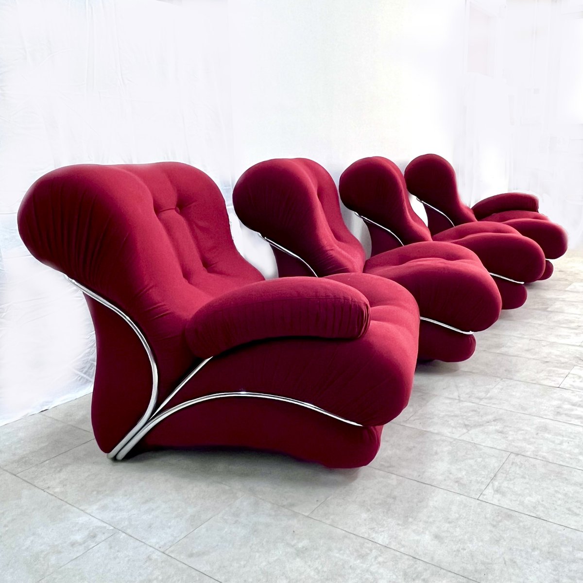Corolla Modular Armchairs in Chromed Steel and Fabric, IPE, 1970s, Set of 4