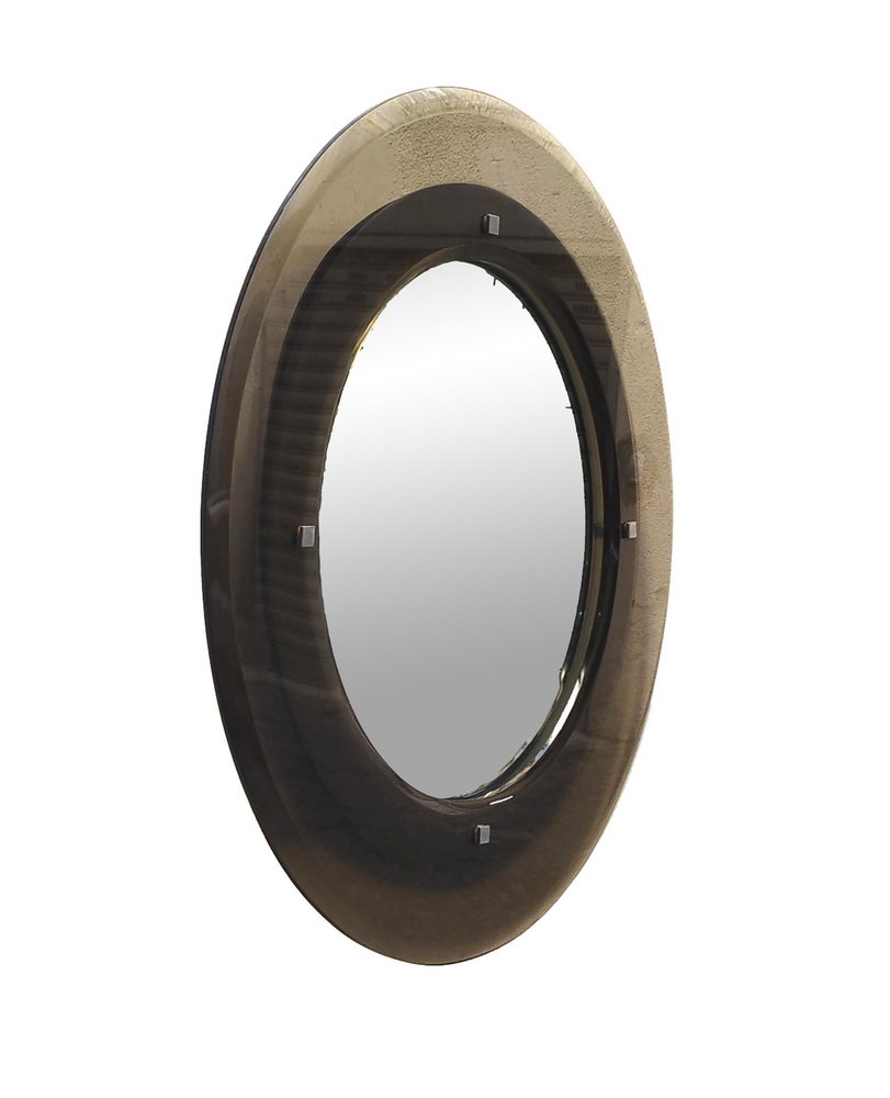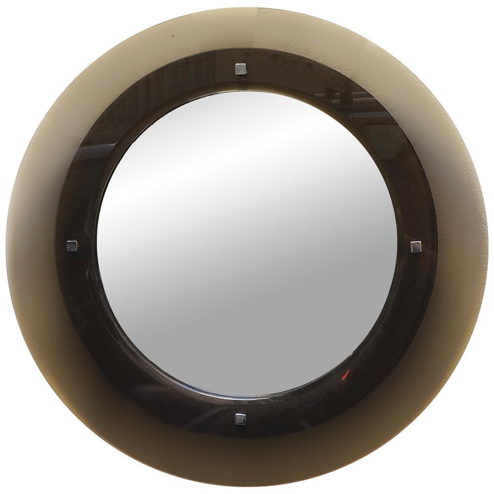 Cristal Art Smoked Glass Framed Round Wall Mirror, Italy, 1960s